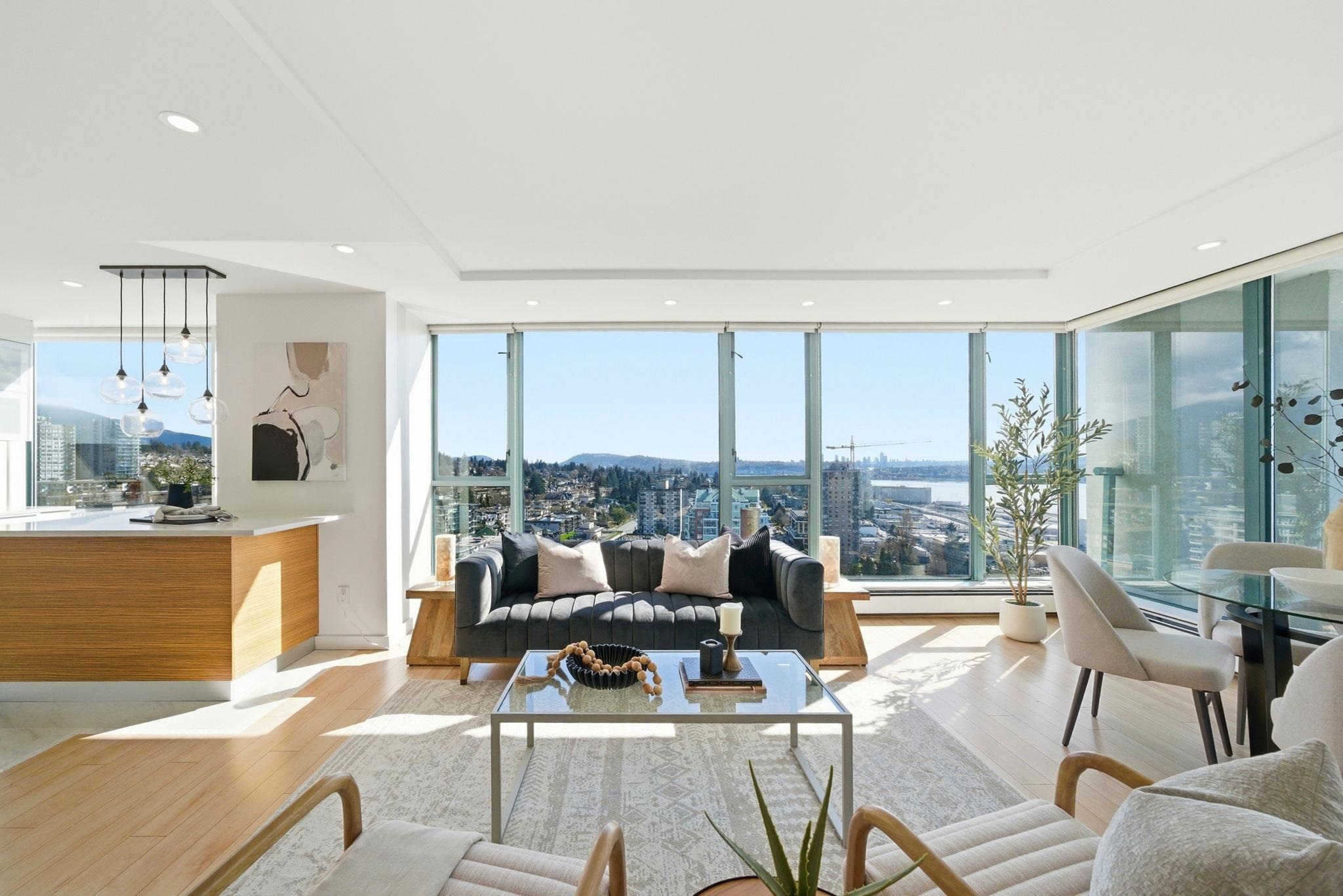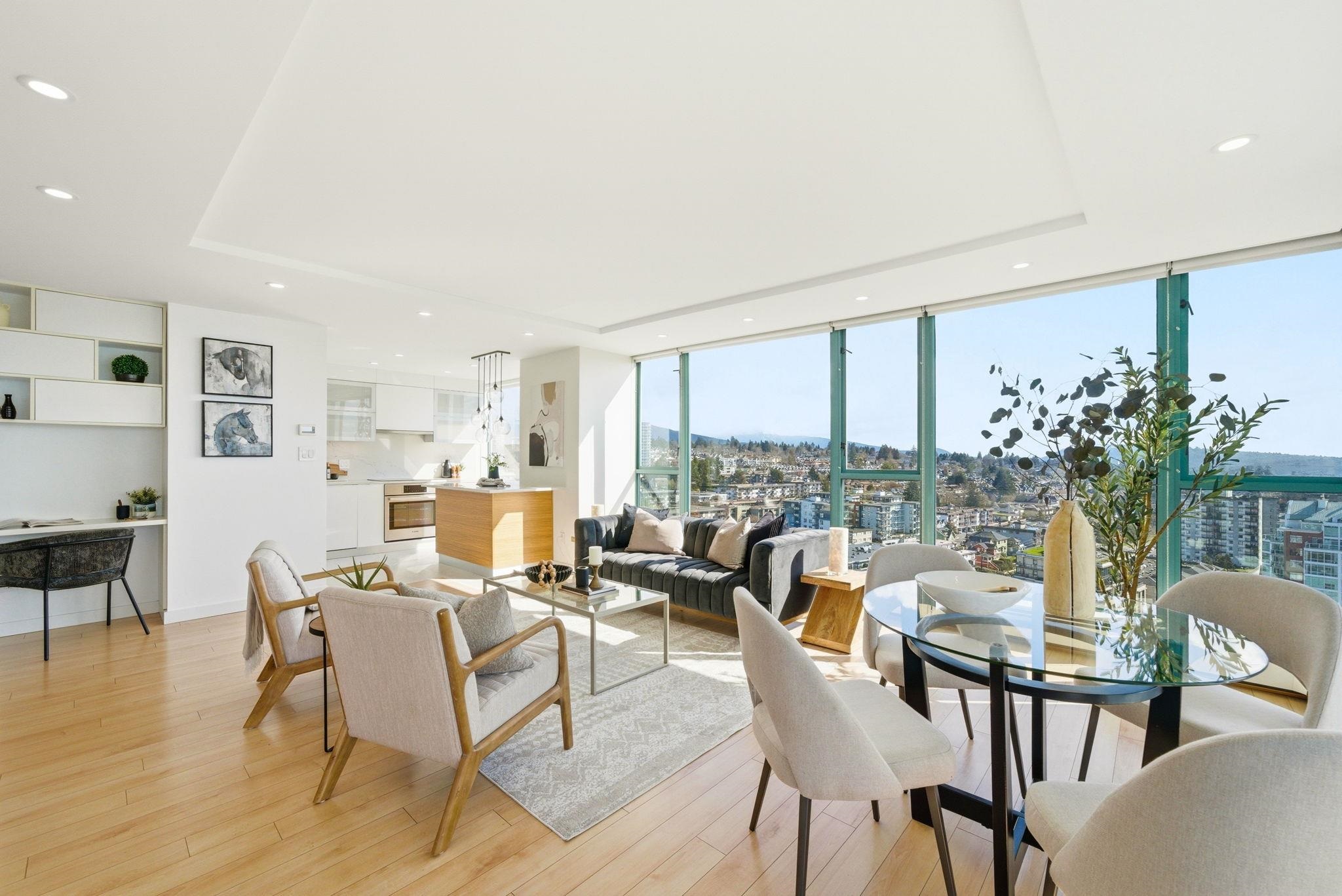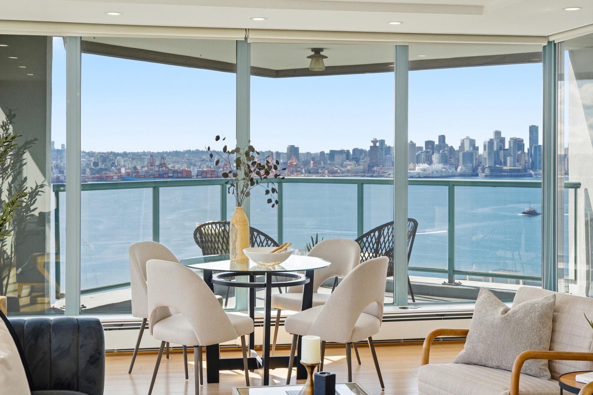 Experience unparalleled luxury with sweeping views of Downtown Vancouver, the Inner Harbour, and beyond. This 2-bedroom, 2-bath sanctuary features sunlit hardwood floors, stone accents, stainless steel appliances, and numerous recent upgrades. Relax on the covered patio, soak in the outdoor pool and hot tub, or work out in the private gym. Complete with 2 side-by-side parking spaces and a storage locker, all just steps from trendy Lower Lonsdale shops, restaurants, Shipyard, Lonsdale Quay, and Seabus access...