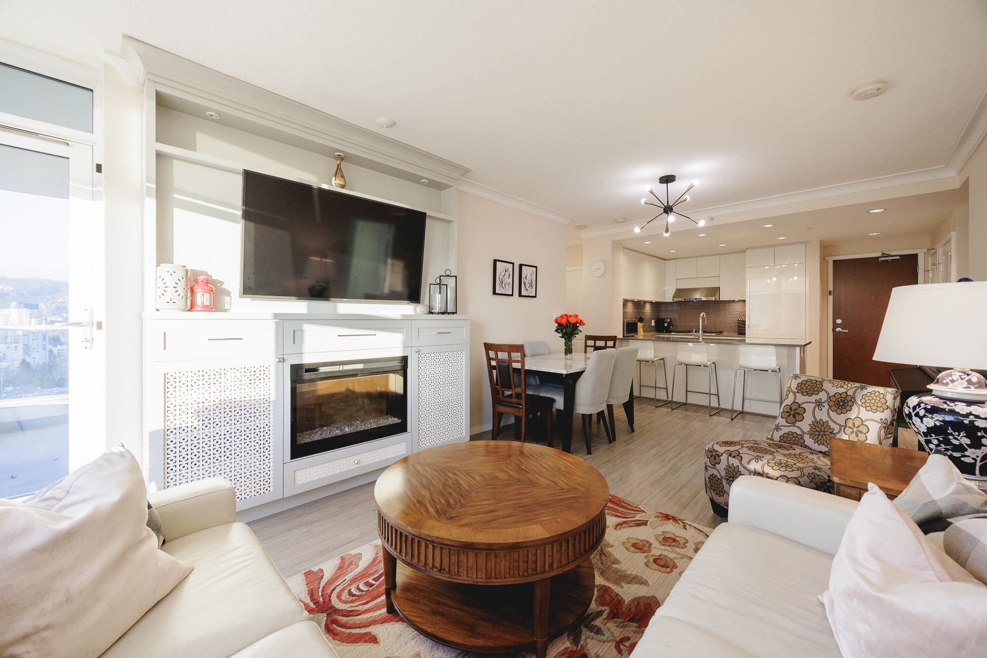 Almost SQF 950 in Polygon built high rise located in central Coquitlam with walking distance access to skytrain and shopping centre, 2 separate bedrooms, fireplace, beautiful views of mountain and city, good size balcony, updated and well maintained unit, amenities include: gym, pool, Hot Tub, party room, game rooms, Volleyball & courts, Guest Suite, craft room, etc. all in a separate standing building with concierge. 1 parking and 1 storage. OPEN HOUSE: Sunday 1:30-3:30