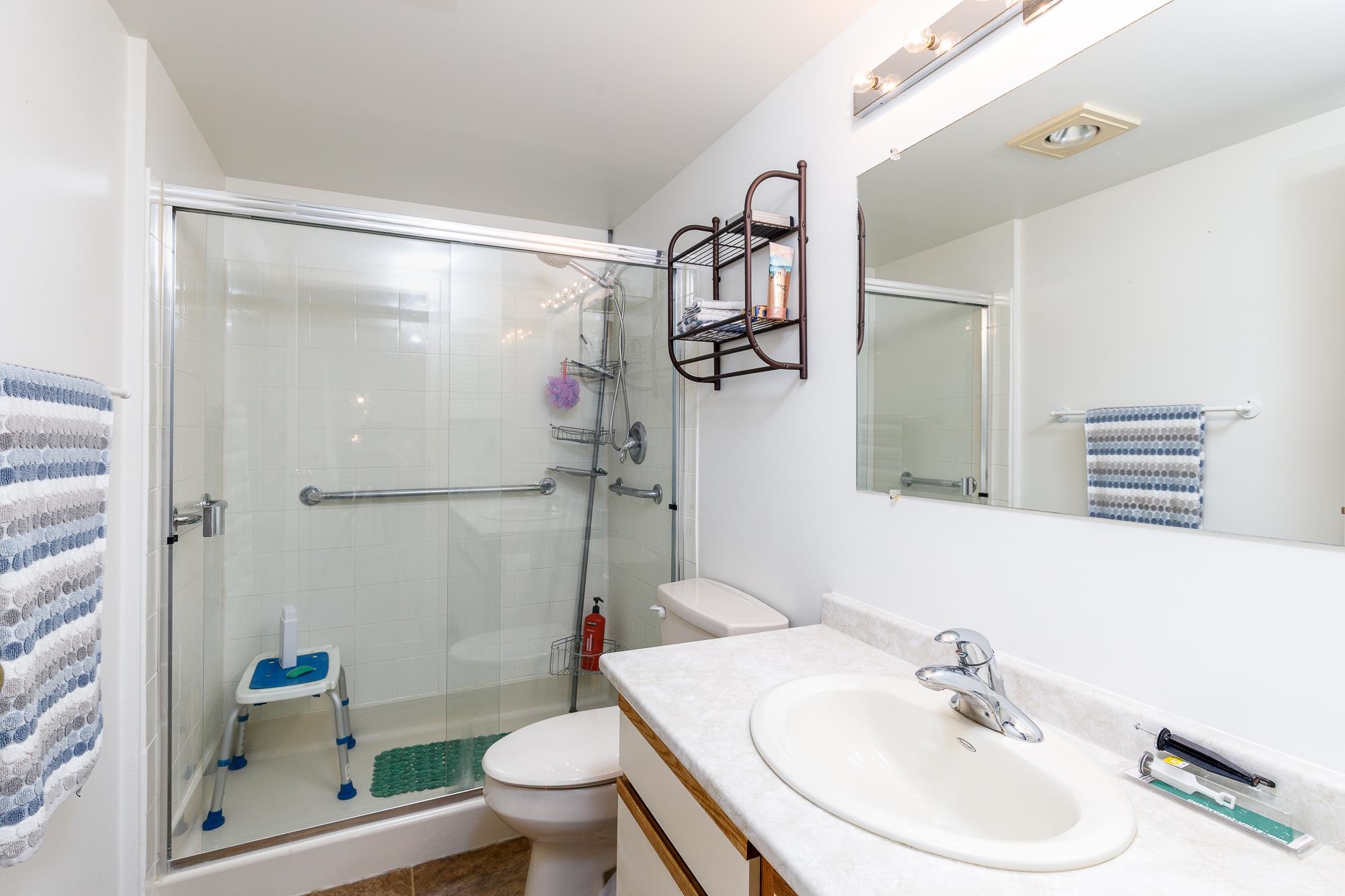 HERITAGE MANOR - very PRIVATE well kept spacious 2 bedroom, 2 full bathroom condo in Langley City. Open concept floor plan that flows well with day to day living. Large living room with gas fireplace lovely PRIVATE patio looking onto the greenery is perfect for your morning coffee retreat. Newer beautiful laminate flooring. Generously sized bedrooms are on opposite sides of the home for privacy and comfort. Ample storage areas off of deck and in laundry room. New hot water tank (2022). Storage locker on sam...