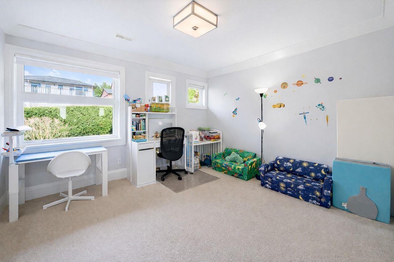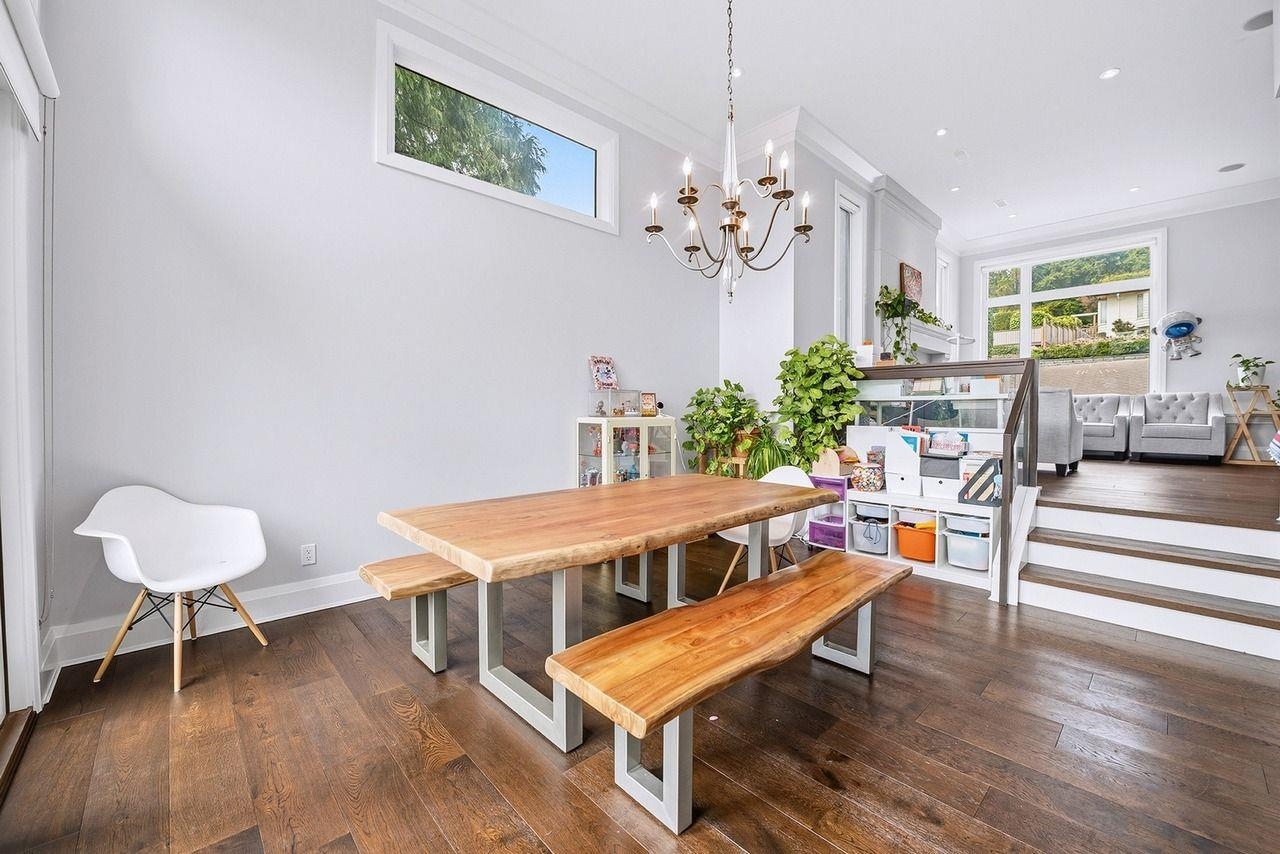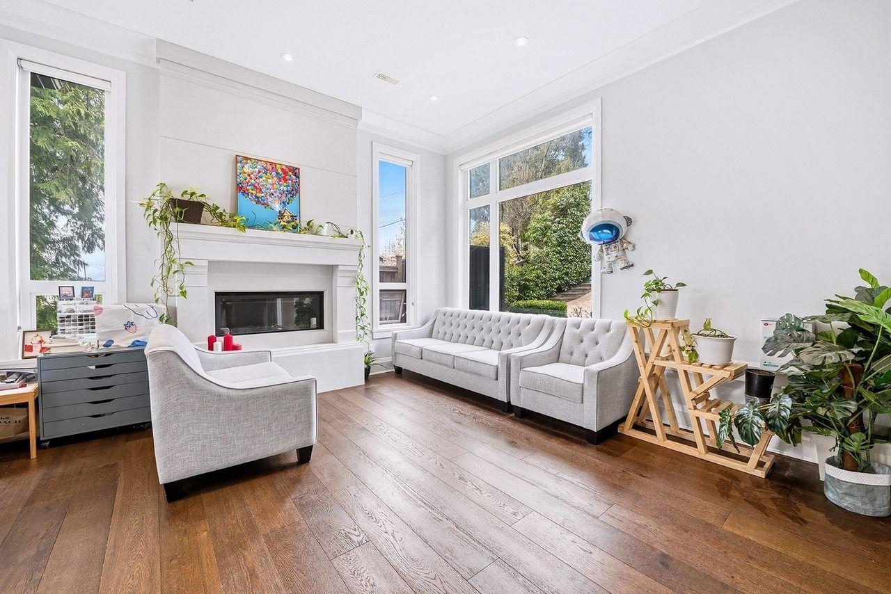 This stunning new home is located on a south-facing 72 X 132 ft lot and boasts Stanley Park, Lions Gate, Point Grey, and Island views. Modern and bright with rich h/w floors, a designer kitchen, and eclipse doors leading to a large covered patio off the family room. There are 4 bdrms up with a view deck off the Master bedroom. There is a games, rec, media, and self-contained 2 bdrm suite down. In-floor h/w radiant plus a/c. A very impressive home.