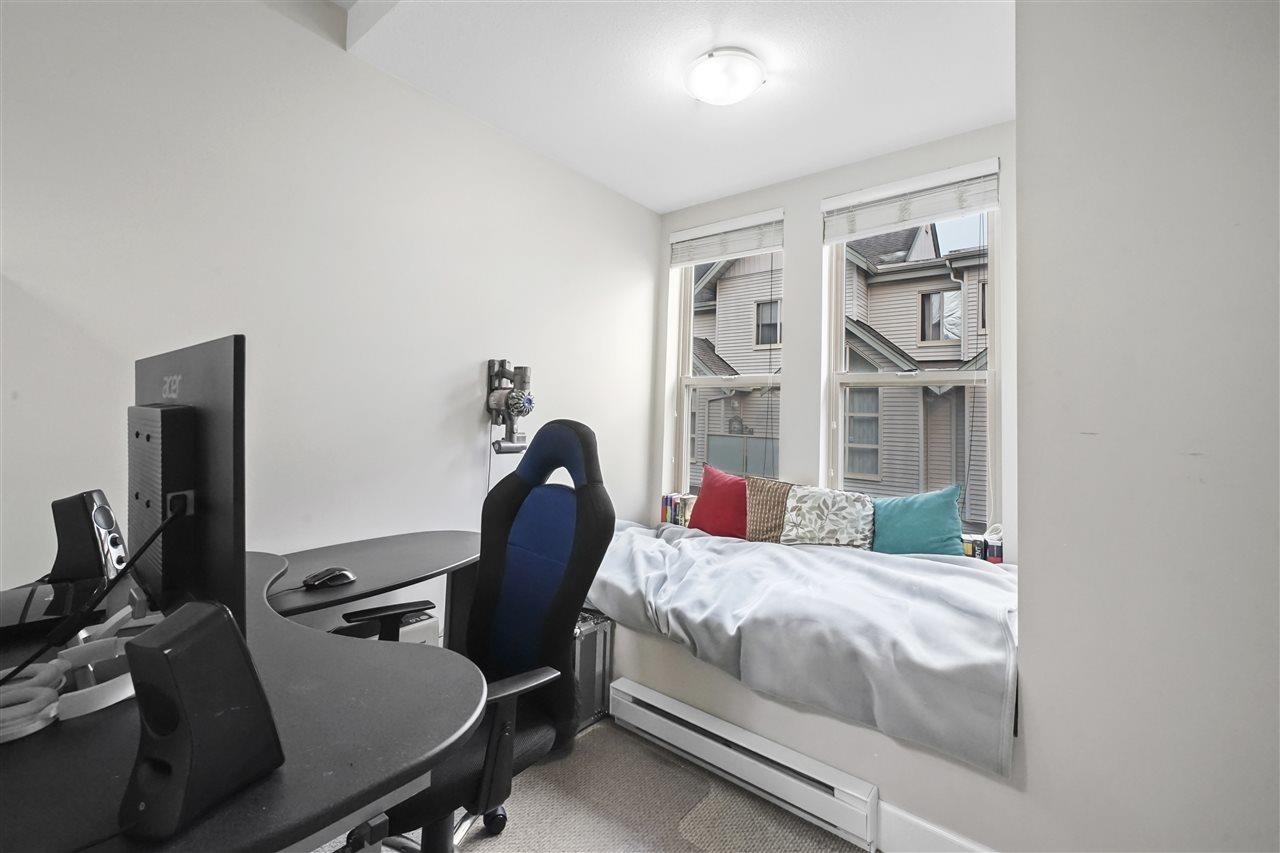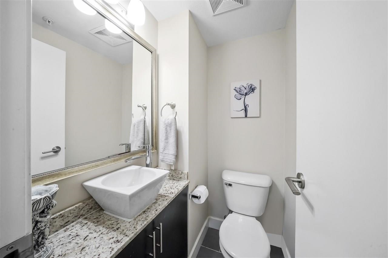Spacious 3 bed + den, 2.5 bath townhome, Partially Reno’d at Aviva with over 1,500 sq ft of stylish living! Top-floor primary suite features vaulted ceilings, walk-in closet, 5-piece ensuite & private rooftop deck w/ beautiful mountain views. Bright main level with 9 ft ceilings, open-concept layout, and a gourmet kitchen with granite counters, stainless steel appliances, large island & convenient powder room. Full-size den is perfect for a home office or nursery. includes 2 rare side-by-side parking stalls...