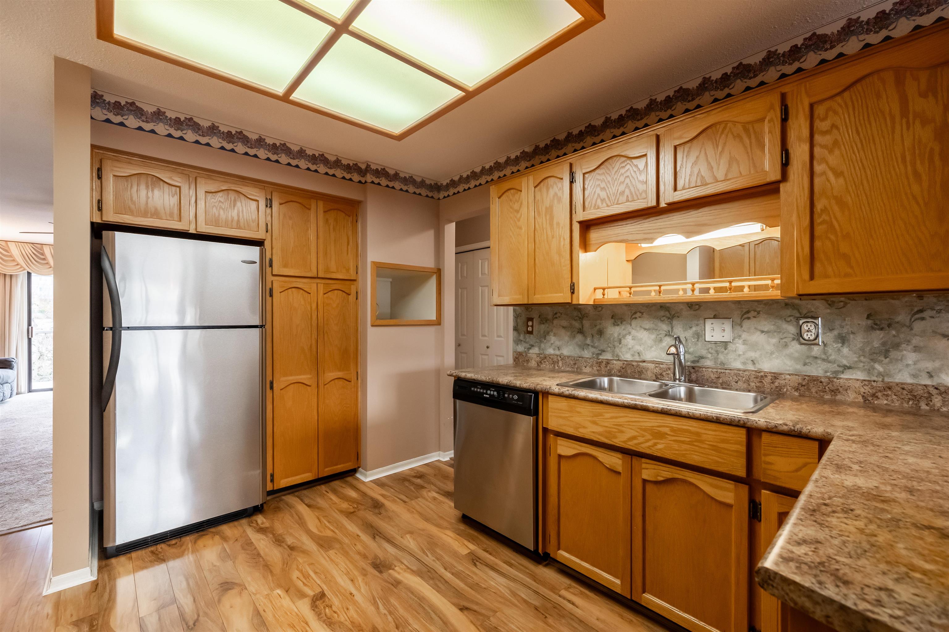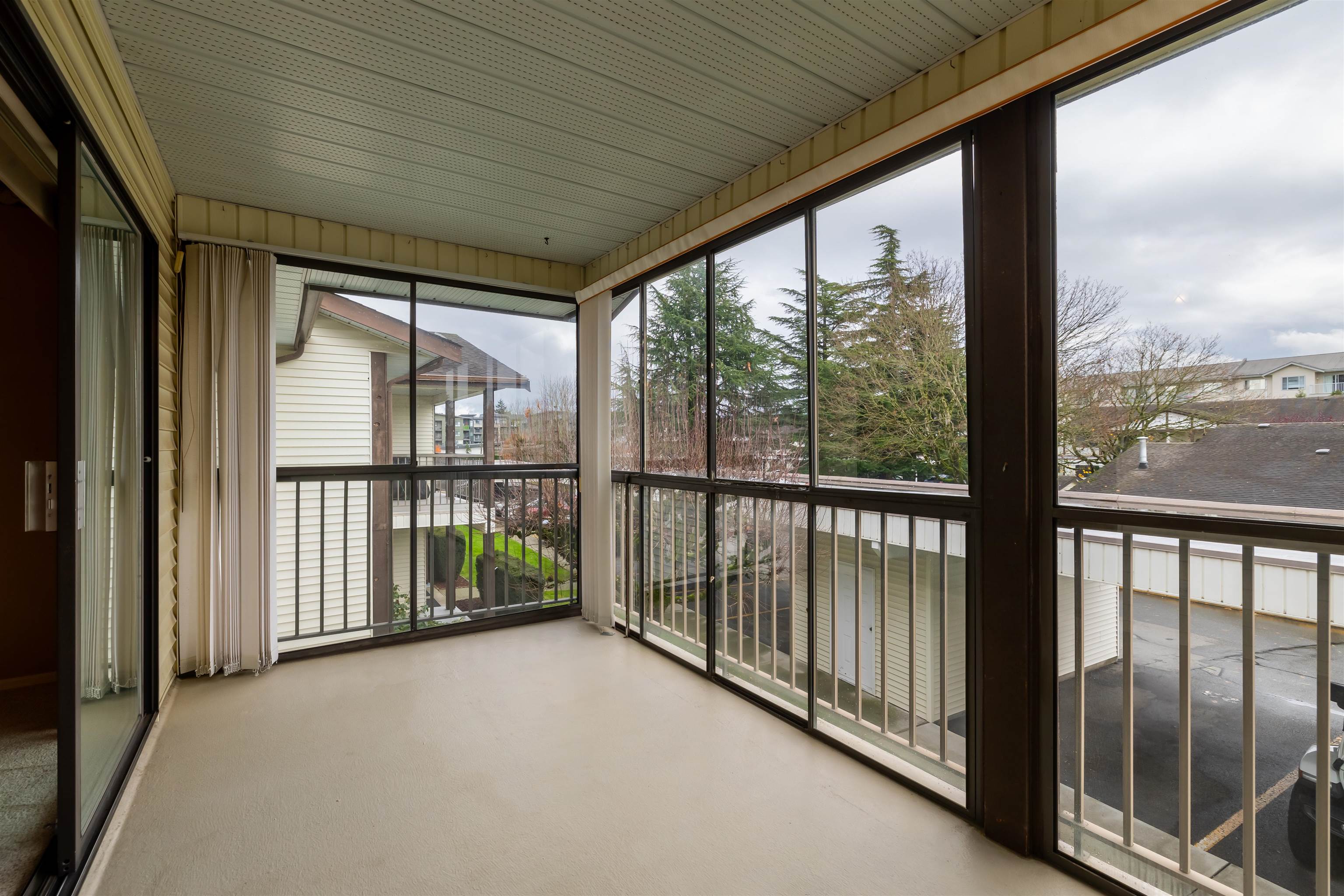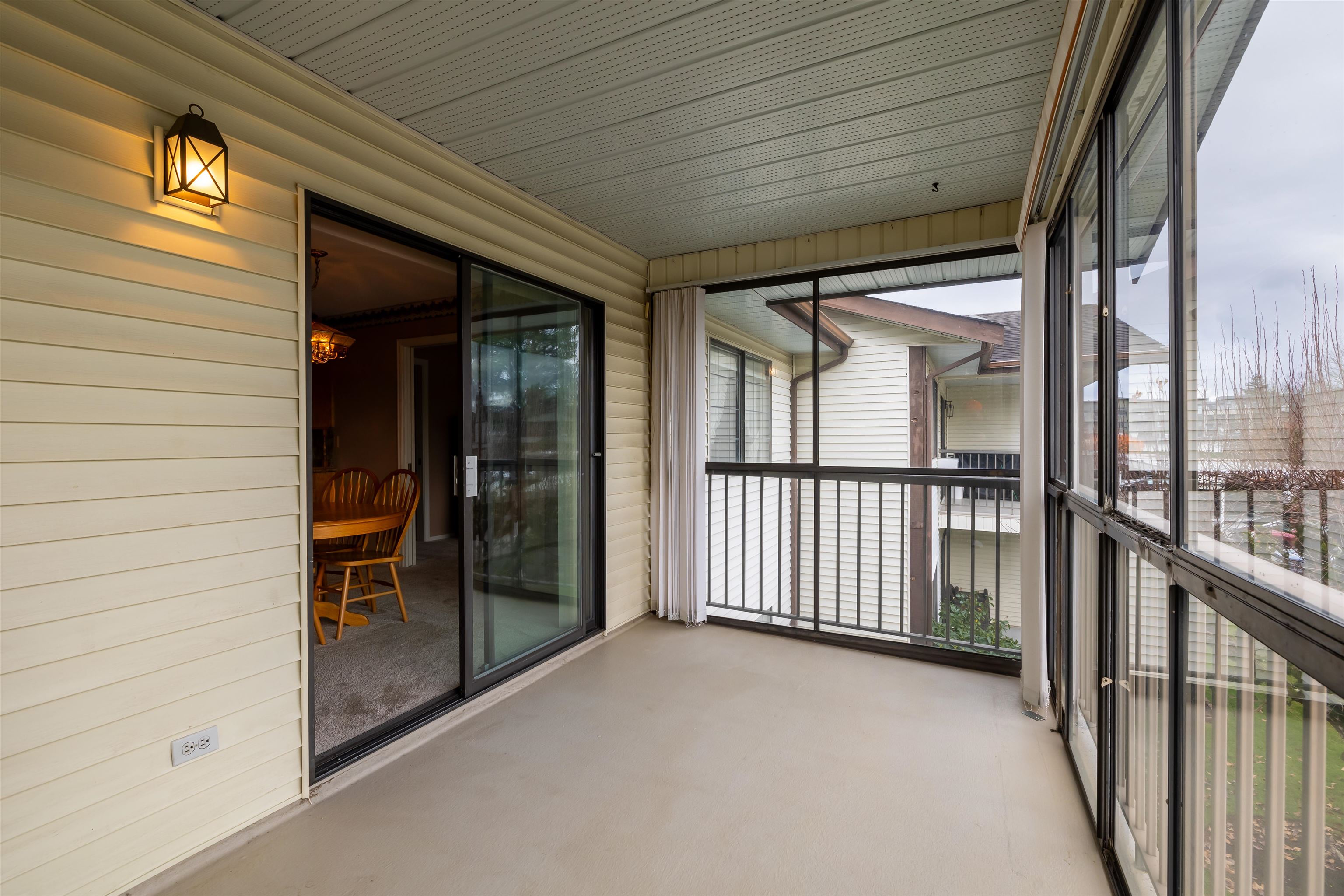 FIRCREST ESTATES in the heart of Abbotsford! This RANCHER STYLE 2 bedroom 2 bathroom upper unit townhouse is in a fantastic 55+ adult oriented community. This well maintained unit boasts 1152 sq ft of spacious living space in incredible original condition. Large living space to entertain and back deck and stairs leading down to the common area greenspace. Covered parking spot out front of unit. Well run complex with RV parking available. Footsteps to Cafes, Trading Post Brewery & shops! Great value!