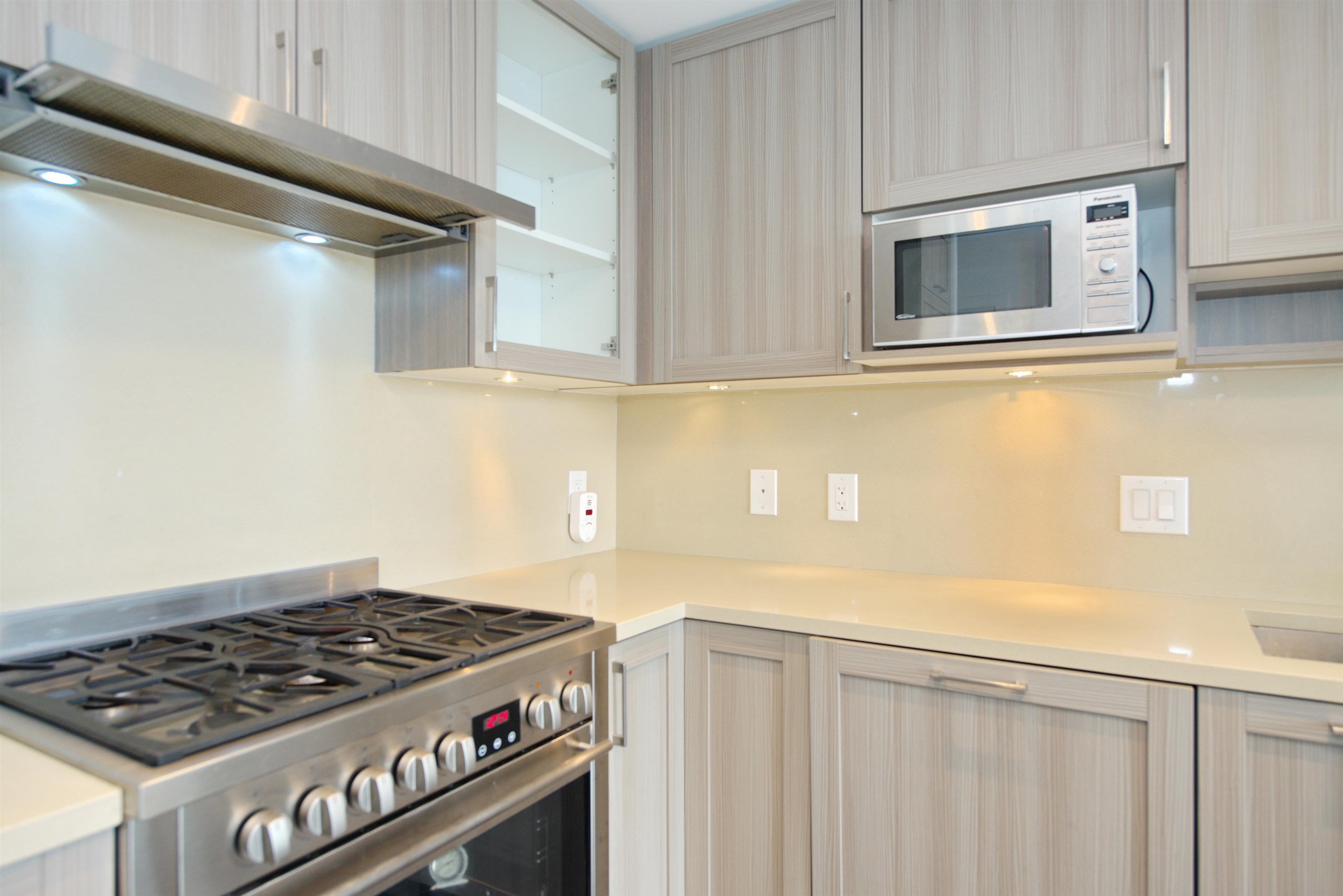 BREATHTAKING unobstructed views of downtown, water, Northshore Mountains & Vancouver Island. 1 bedroom + DEN, floor to ceiling windows with lots of natural lights on the QUIET SIDE of Wall Centre. Great floor plan without wasting any space. OPEN CONCEPT Living/Dining rooms. Bathroom with deep soaker tub. Laminated floors throughout, soft close wood cabinetry, 5 burner gas range, S/S appliances, insuite laundry, QUARTZ kitchen countertop & backsplash, marble bathroom counte, roller blinds & drapes. Meticulou...