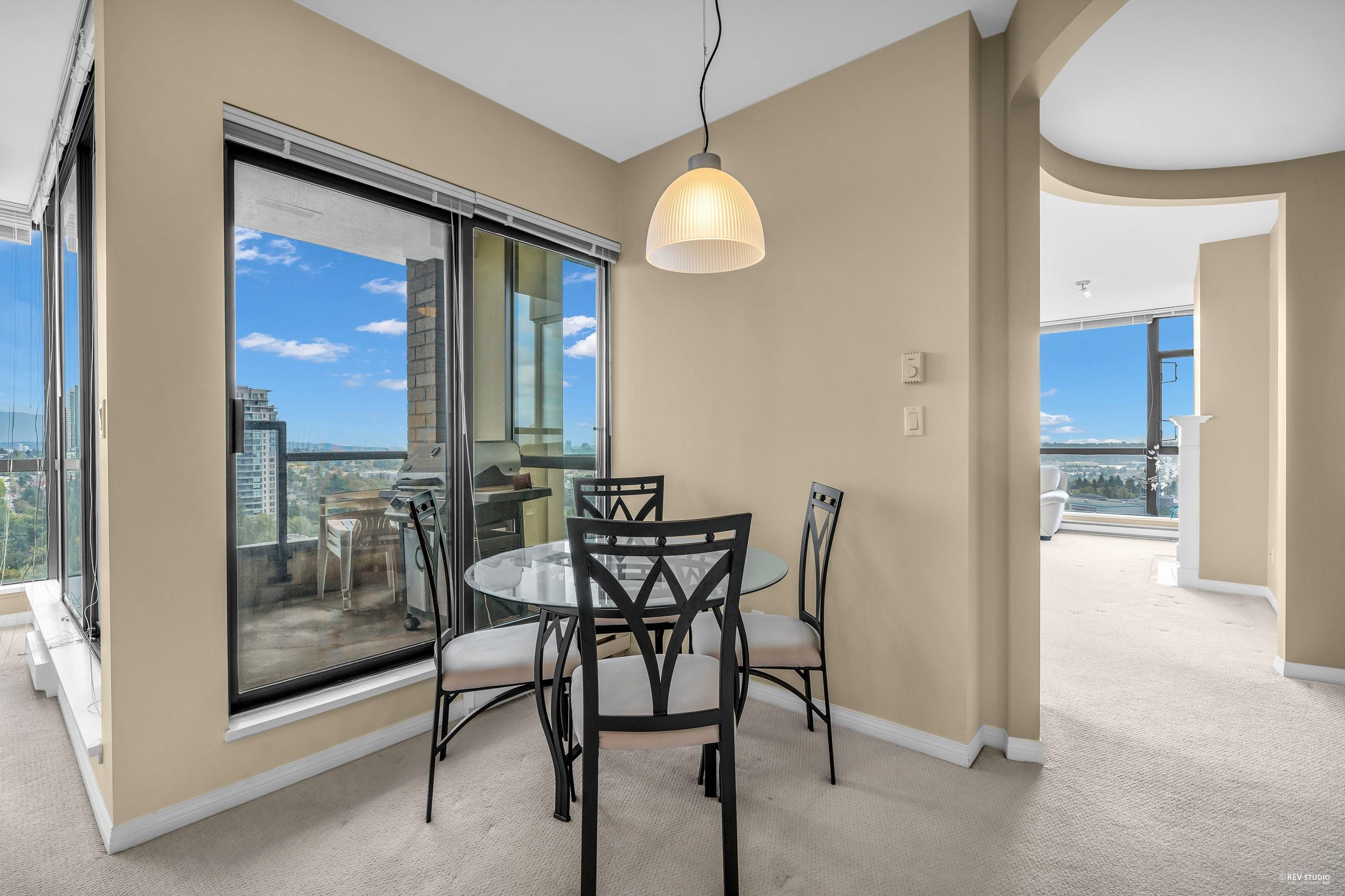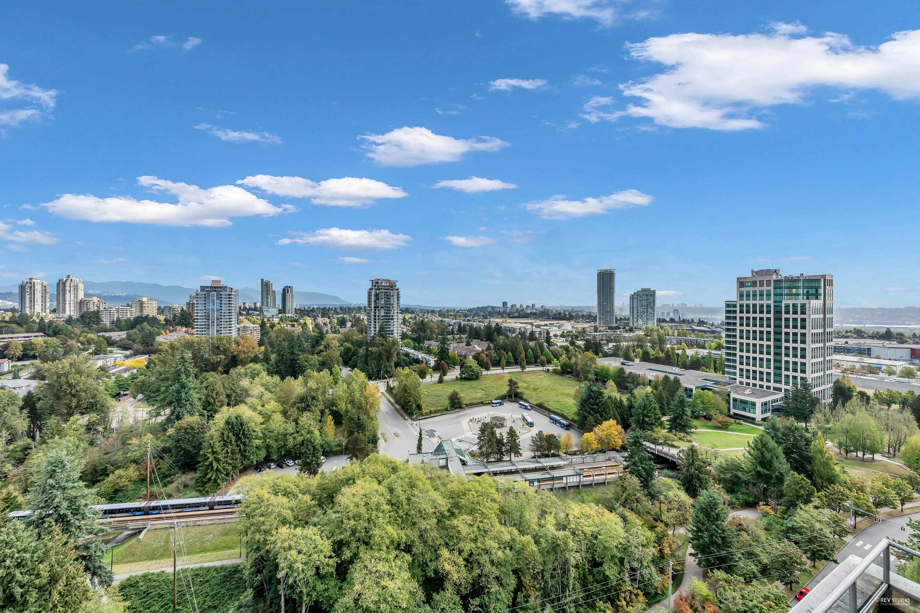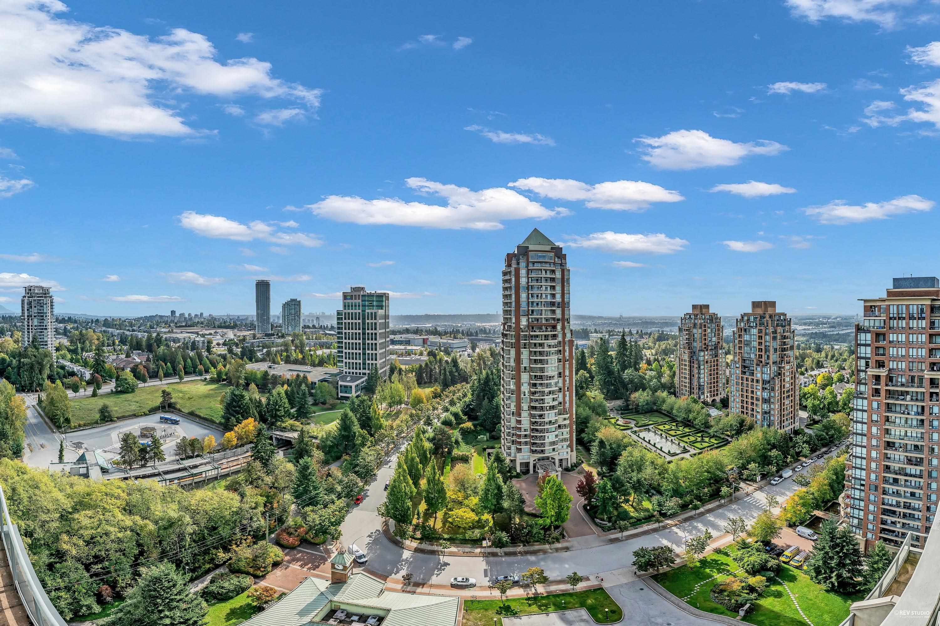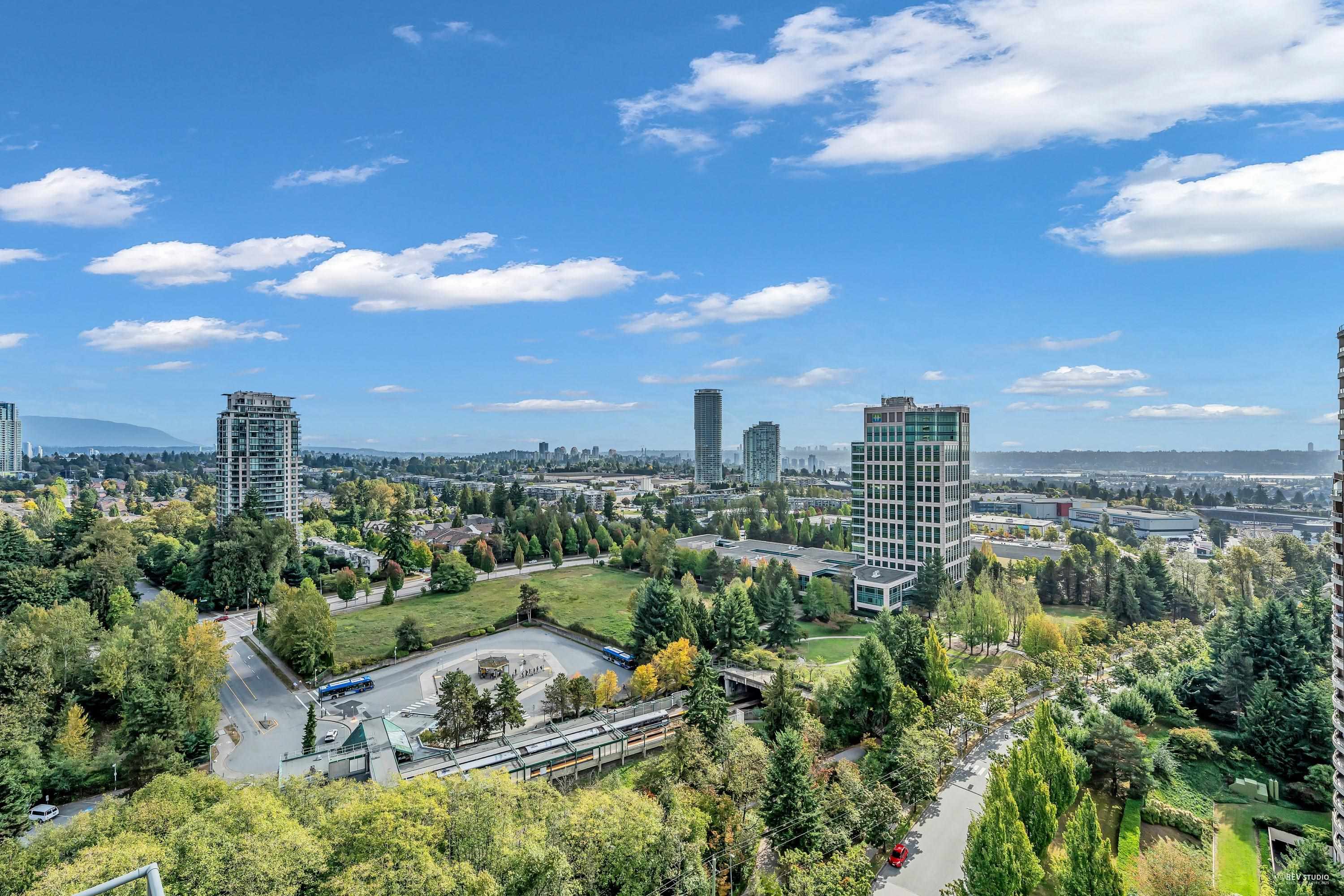 Rarely available SOUTHEAST corner suite at Claridges City in the Park! This oversized 2-bed + open den unit features an efficient layout, over-height ceilings, floor to ceiling windows bathing every room in light. Two large balconies off the kitchen/living and 2nd bedroom. King-size primary with double closets and private ensuite. Breathtaking, unobstructed N/E/S views—mountains, city and ocean! Steps to Edmonds SkyTrain, parks and top schools. Resort-style amenities: indoor pool, hot tub, sauna, gym, loung...