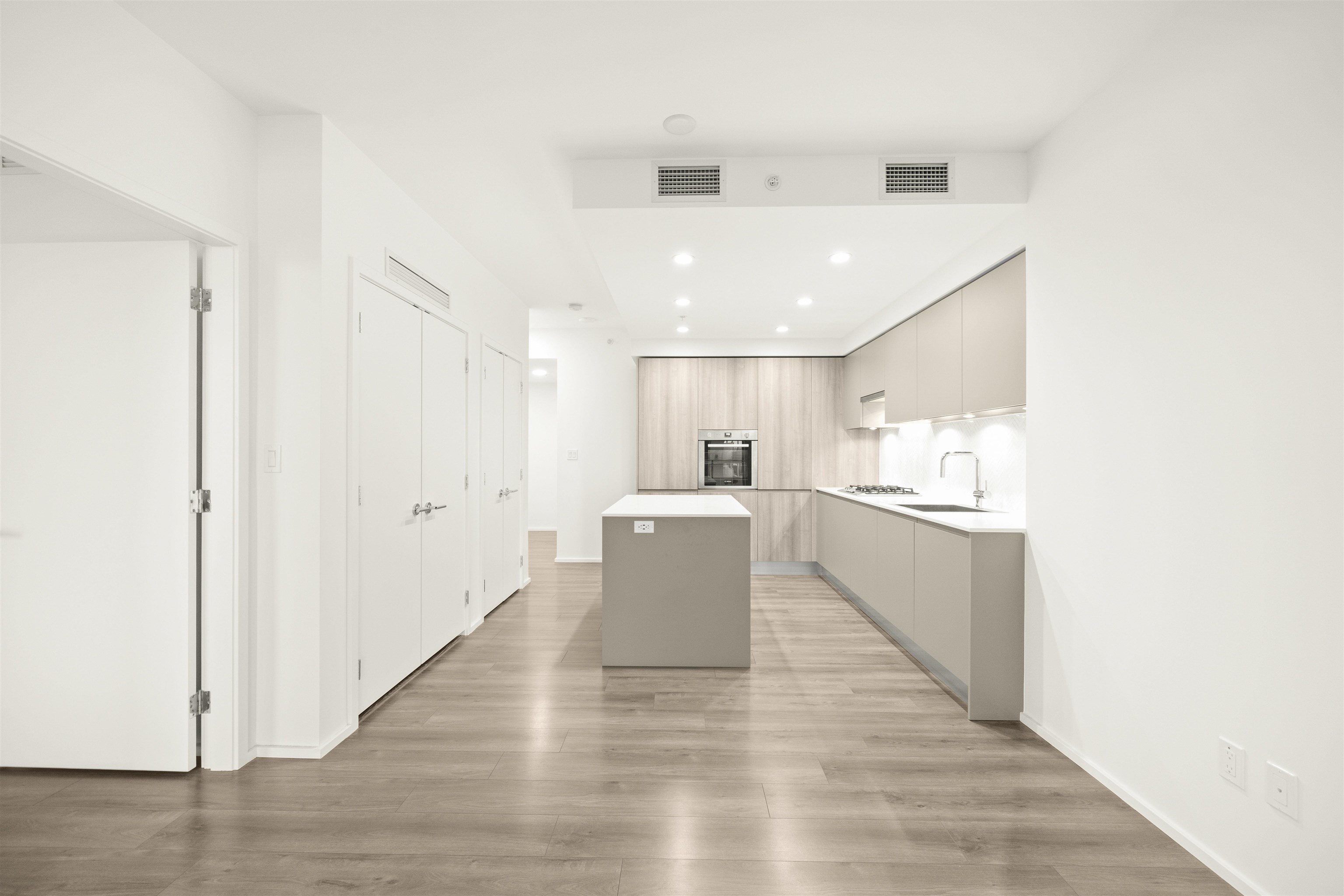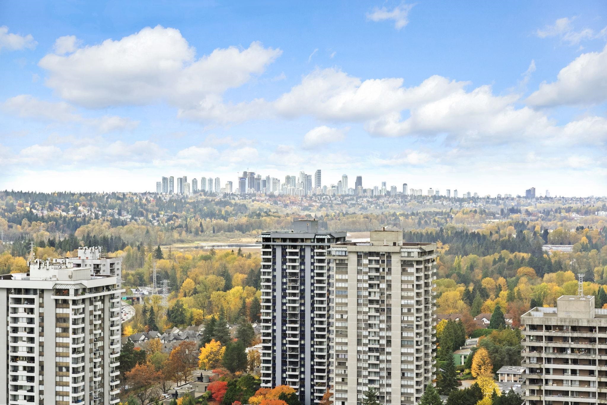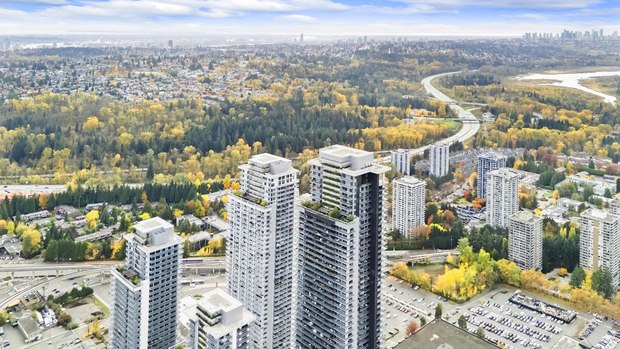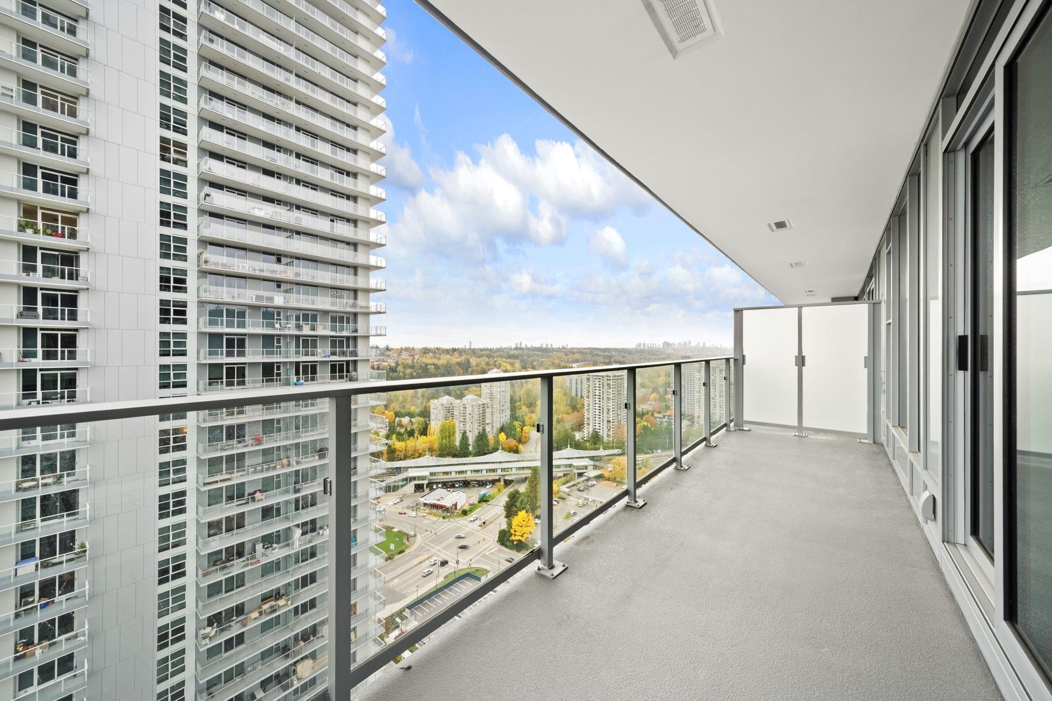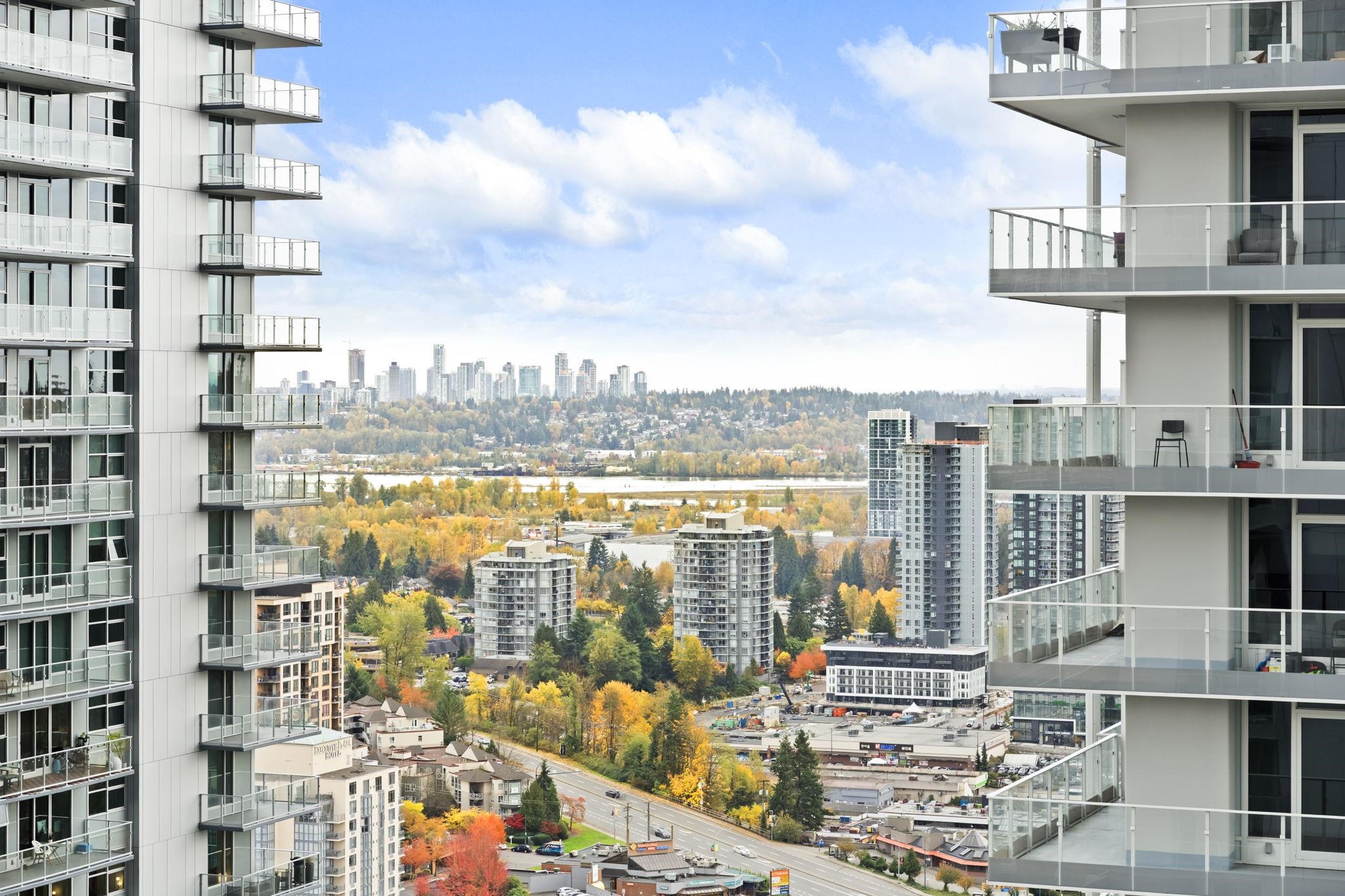 The City of Lougheed Tower One! This 2 BED + 2 BATH South facing home on the 23rd floor combines world-class design with comfort and convenience. Enjoy stunning city skyline views from your oversized balcony. Inside, the open-concept layout features laminate flooring throughout, over-height ceilings, and floor-to-ceiling windows that fill the home with natural light. The contemporary kitchen showcases a neutral palette with quartz countertops, Bosch integrated appliances, gas cooktop, and a waterfall-edge i...