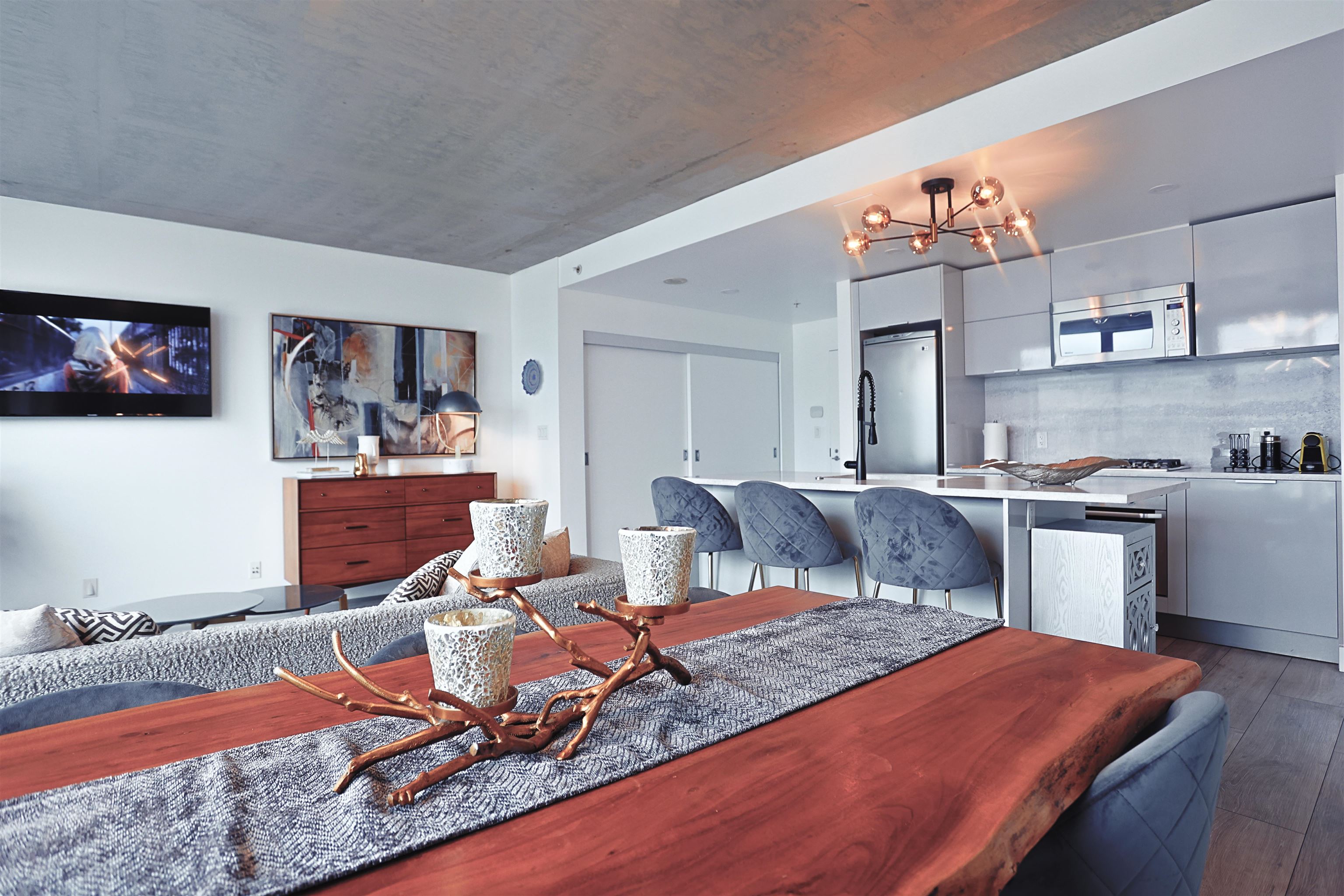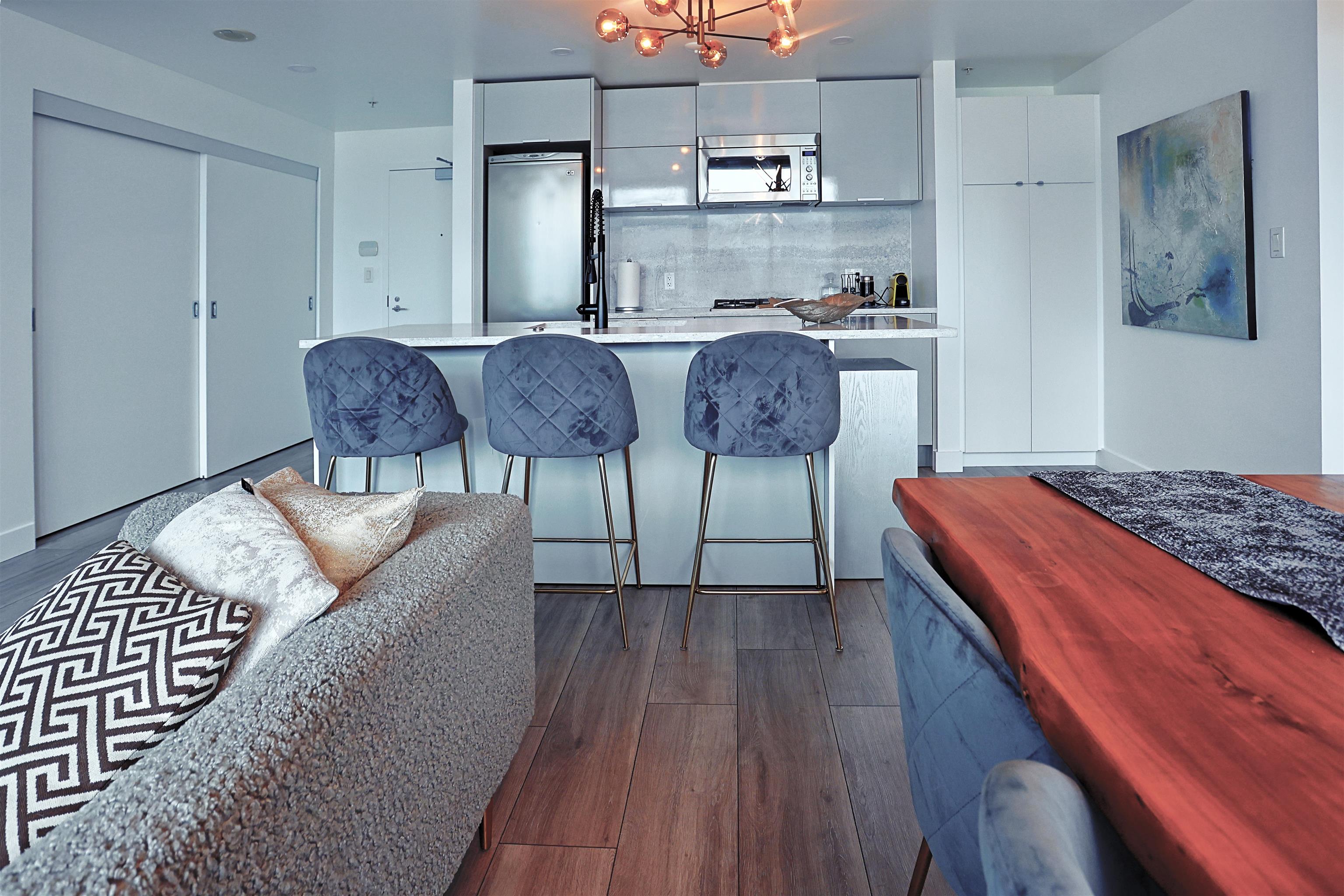 Discover unparalleled luxury in this exquisitely renovated Woodwards building apartment, offering breathtaking panoramic views. This 2-bed, 2-bath home, remodeled last year with over $100,000, showcases elegance with high-end finishes, stainless steel appliances, and a spa-like master bath. Enjoy rooftop amenities, including a lounge, fitness center, hot tub, and more. Located in vibrant Gastown, close to transit and dining, and now Airbnb-permitted, this property combines sophisticated living with signific...