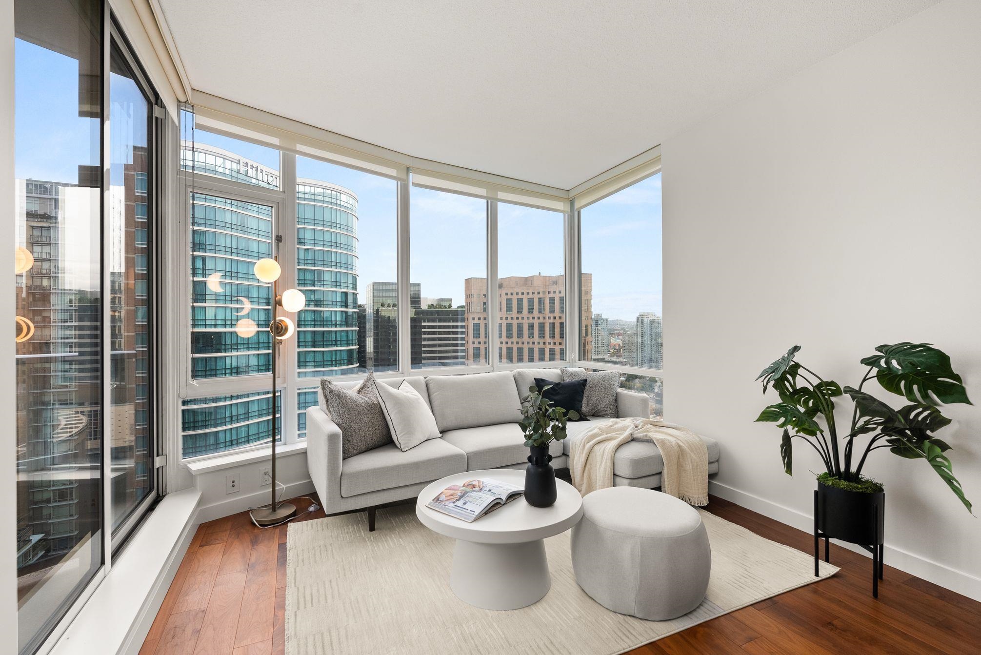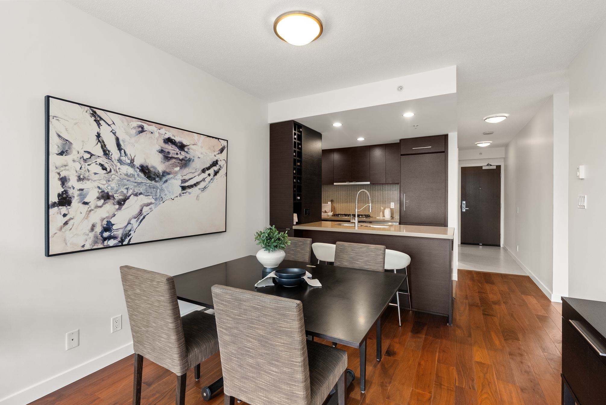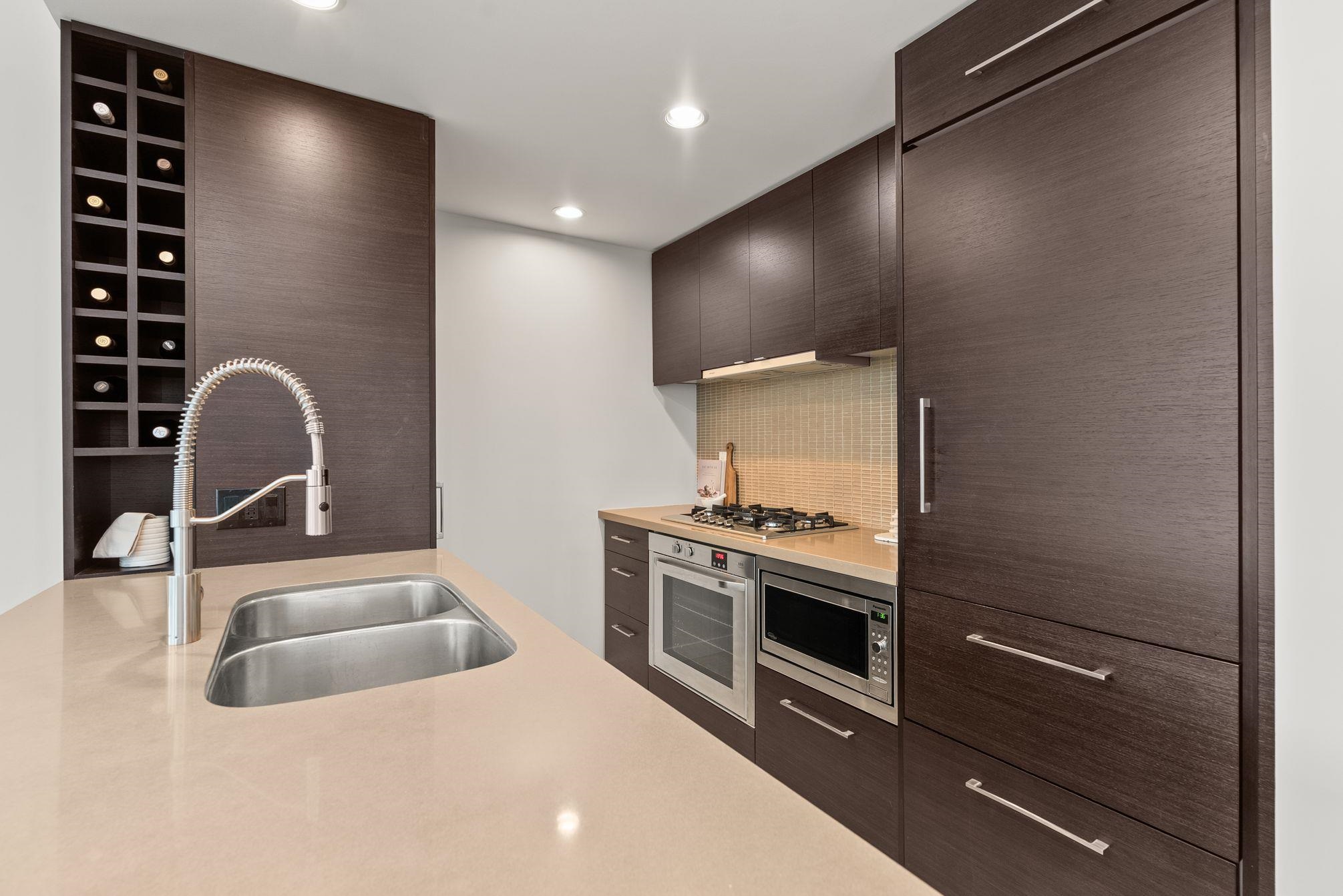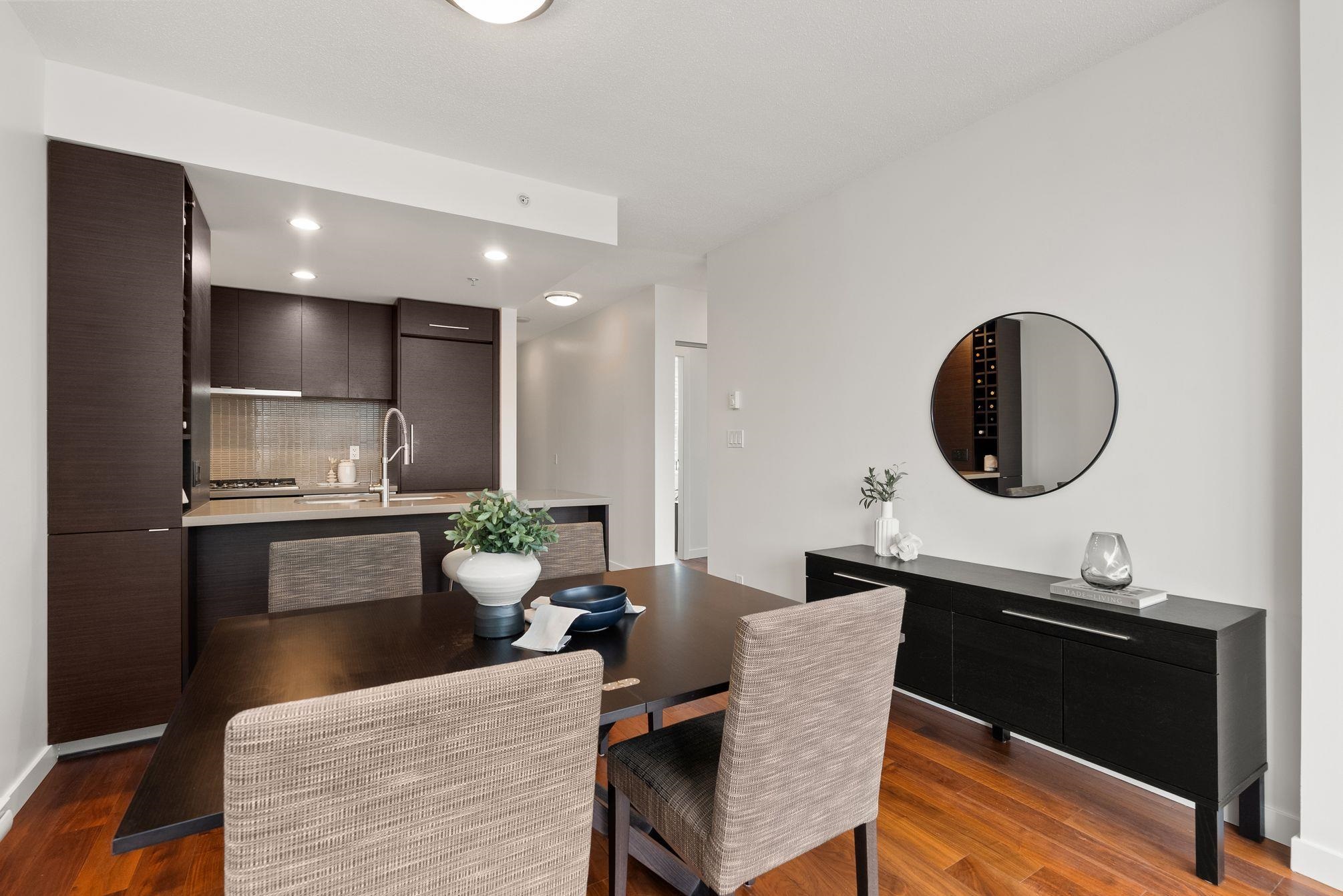 Immaculate 2 Bed+Den, 2 bath residence in one of Downtown Vancouver’s Entertainment District in a top-tier building: Atelier. With NE & NW exposure, enjoy sweeping city scape views amidst the backdrop of the North Shore mountains, iconic Library, BC Place & Metrotown. Hardwood floors flow seamlessly throughout the spacious living and dining areas & kitchen with quartz countertops, rich wenge cabinetry, and integrated paneled appliances—perfect for both everyday living and entertaining. Spacious bedrooms wi...