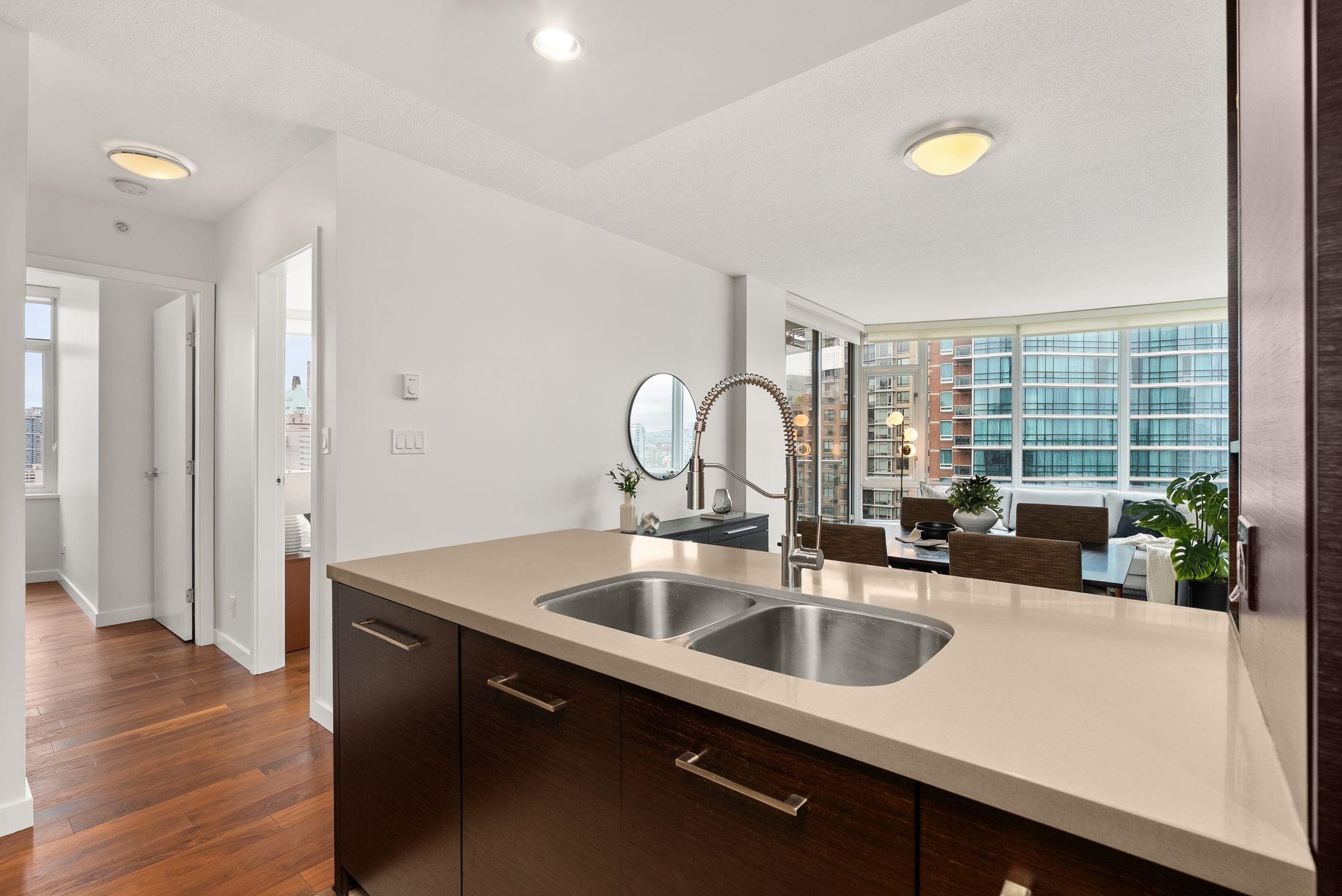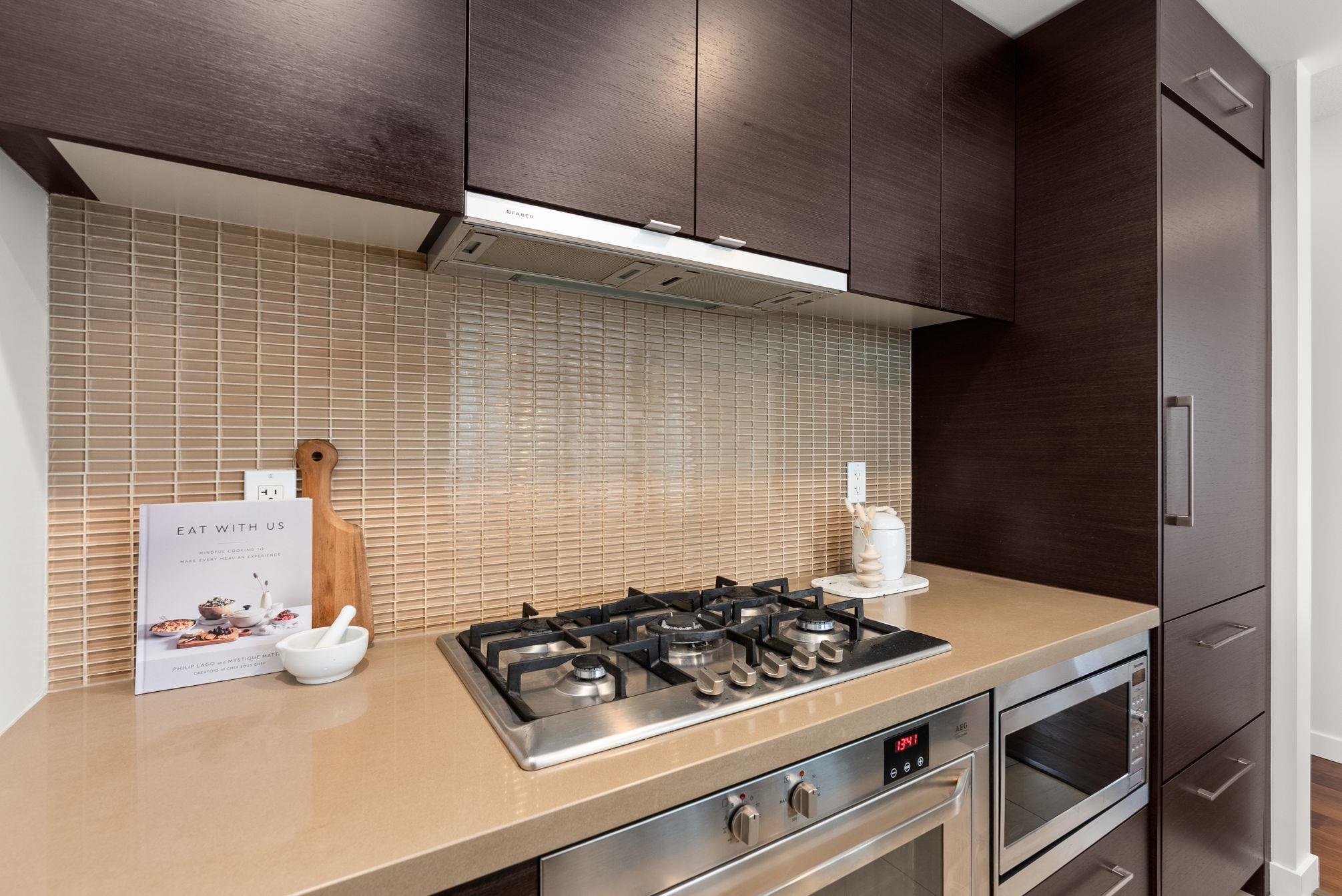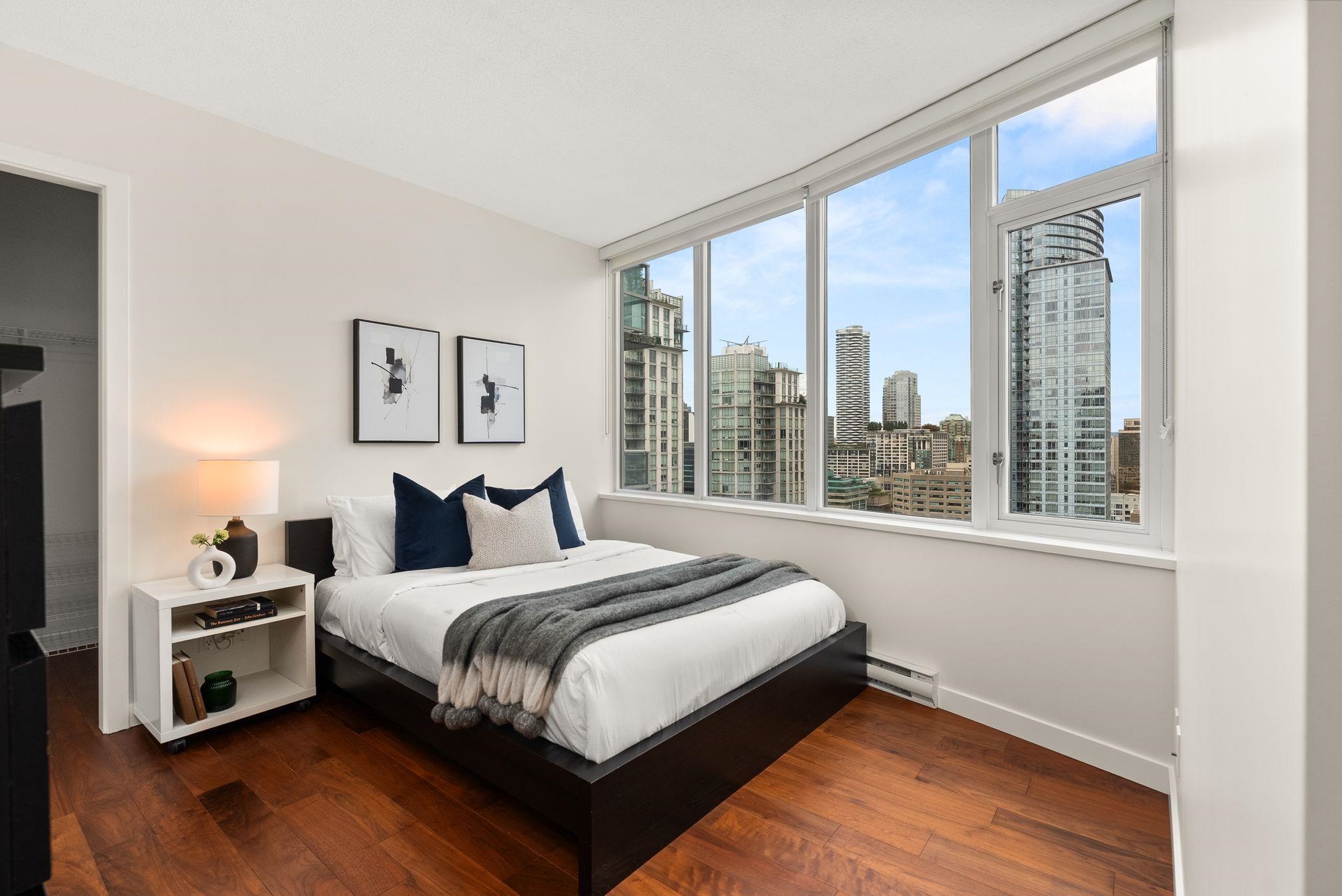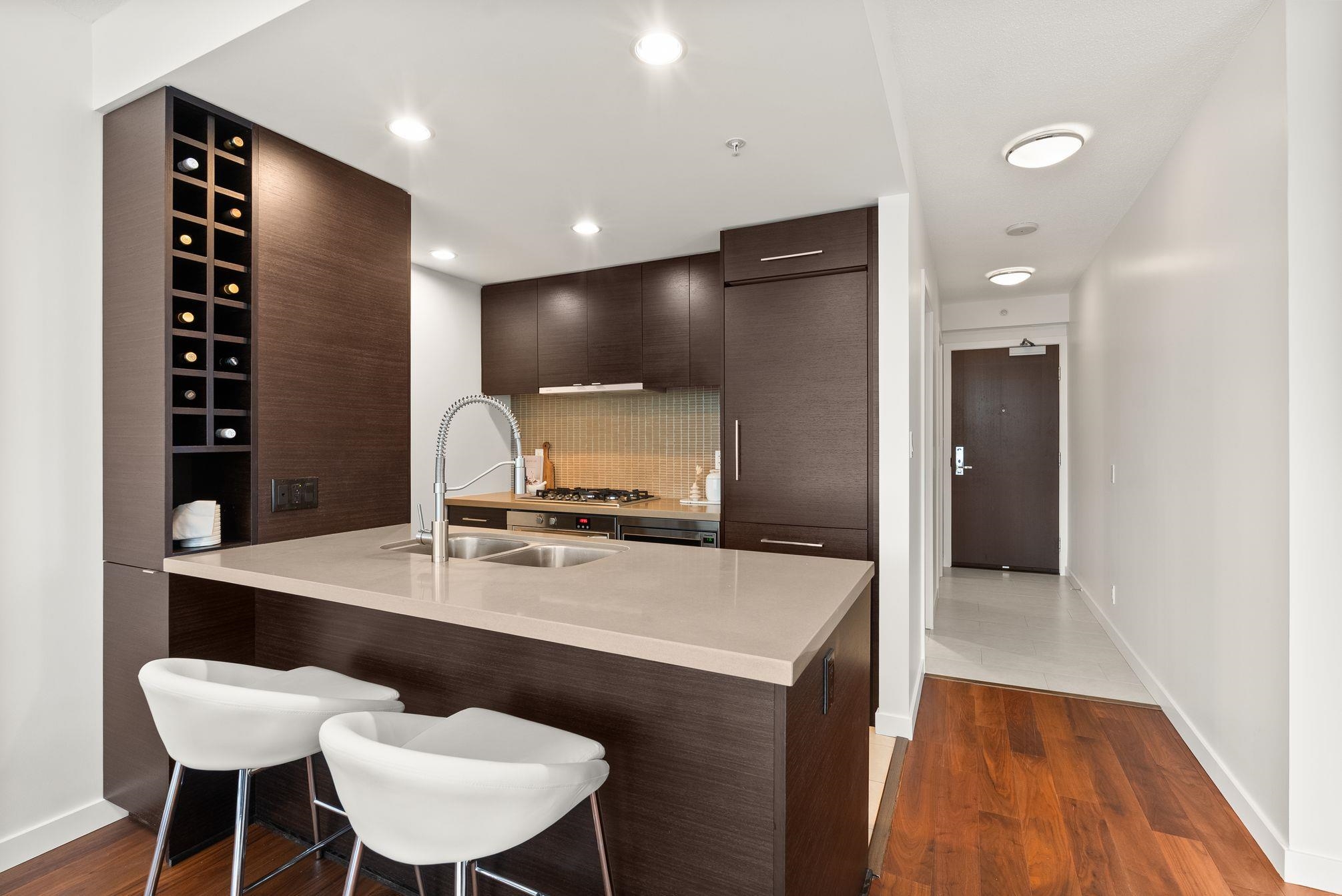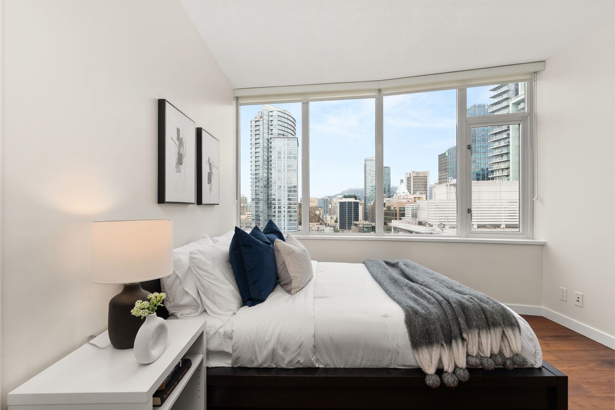 Immaculate 2 Bed+Den, 2 bath residence in one of Downtown Vancouver’s Entertainment District in a top-tier building: Atelier. With NE & NW exposure, enjoy sweeping city scape views amidst the backdrop of the North Shore mountains, iconic Library, BC Place & Metrotown. Hardwood floors flow seamlessly throughout the spacious living and dining areas & kitchen with quartz countertops, rich wenge cabinetry, and integrated paneled appliances—perfect for both everyday living and entertaining. Spacious bedrooms wi...