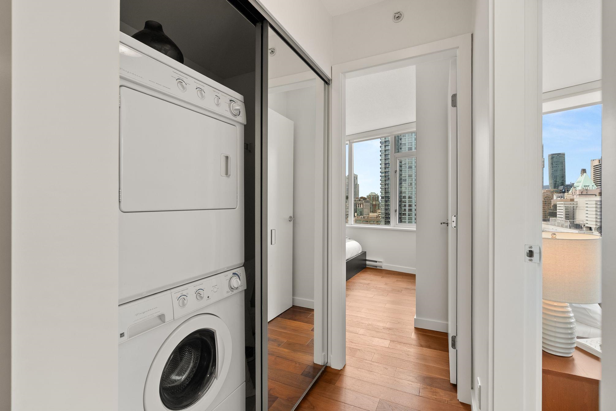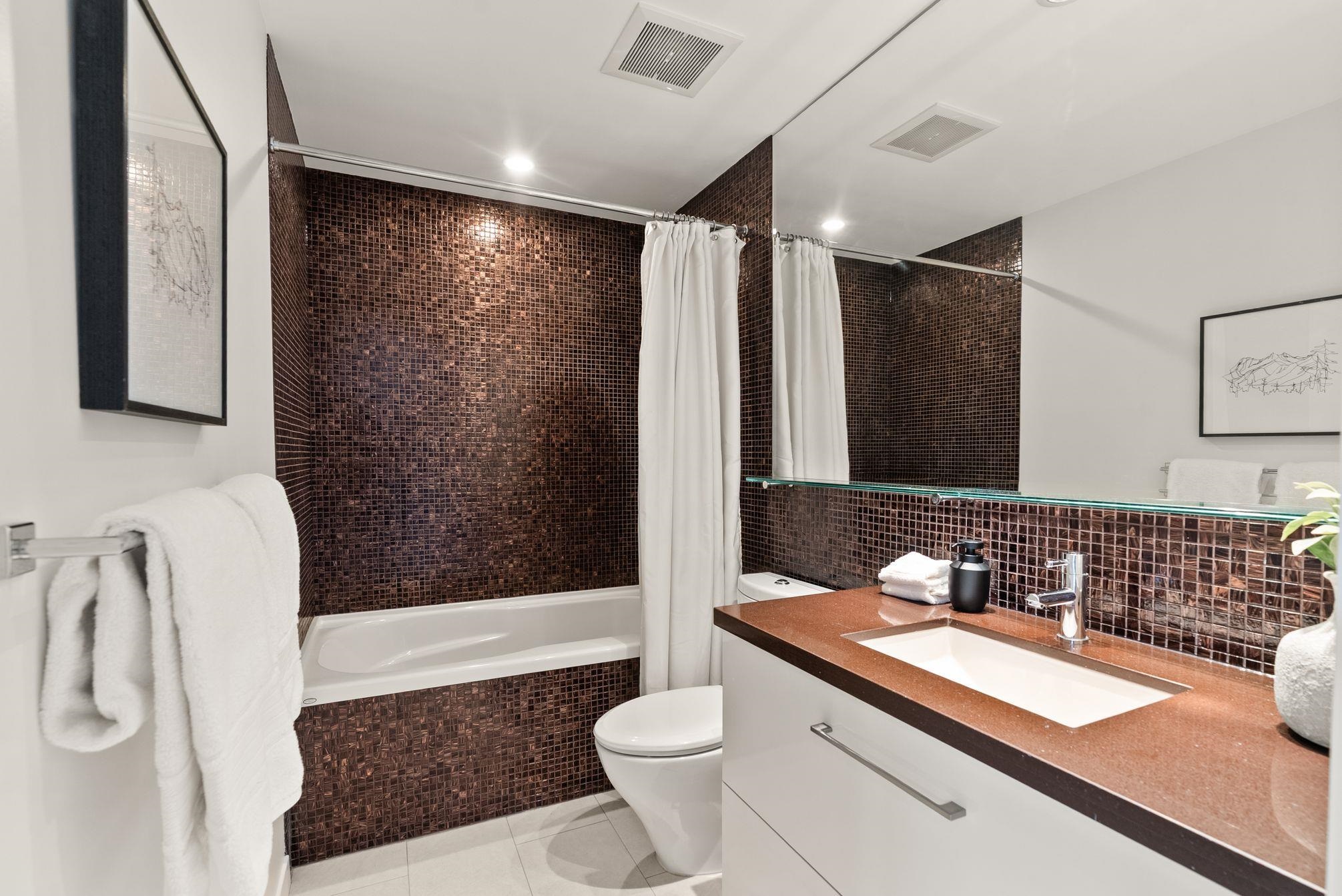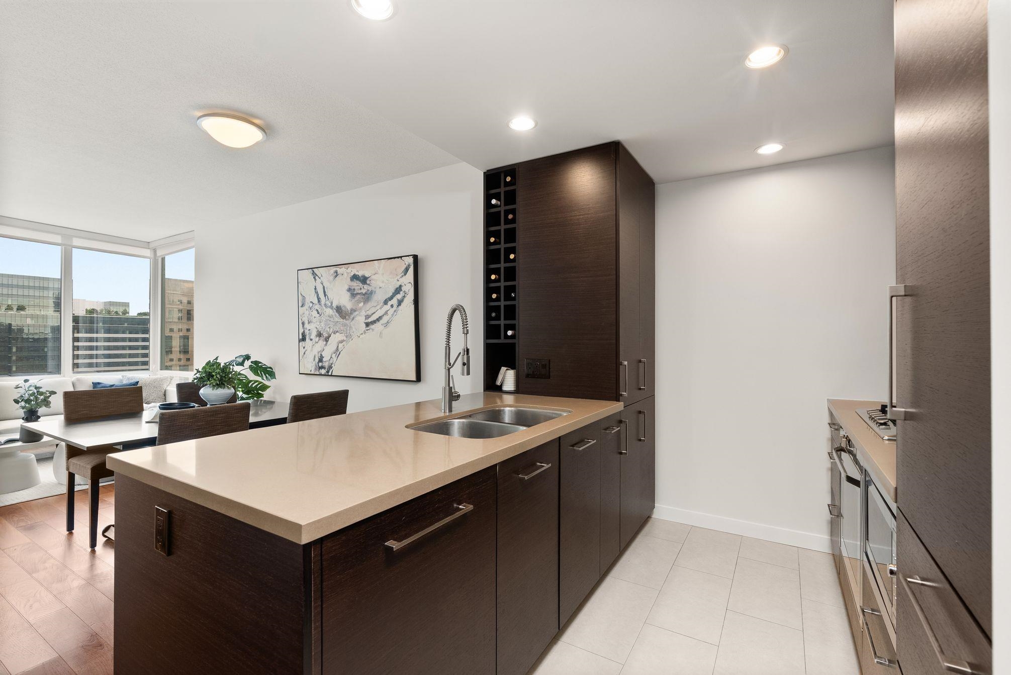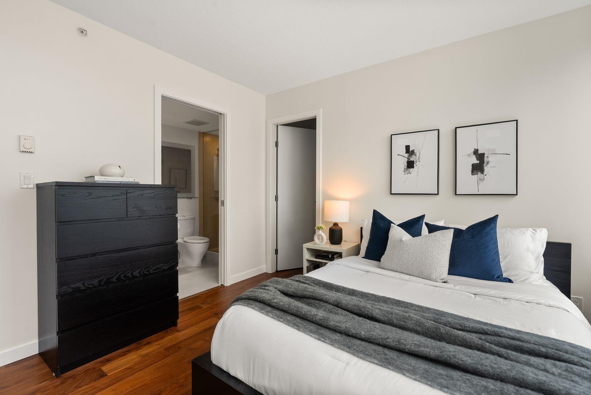 Immaculate 2 Bed+Den, 2 bath residence in one of Downtown Vancouver’s Entertainment District in a top-tier building: Atelier. With NE & NW exposure, enjoy sweeping city scape views amidst the backdrop of the North Shore mountains, iconic Library, BC Place & Metrotown. Hardwood floors flow seamlessly throughout the spacious living and dining areas & kitchen with quartz countertops, rich wenge cabinetry, and integrated paneled appliances—perfect for both everyday living and entertaining. Spacious bedrooms wi...