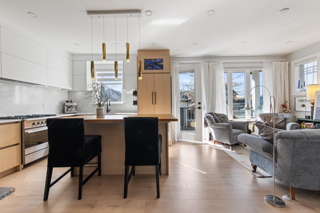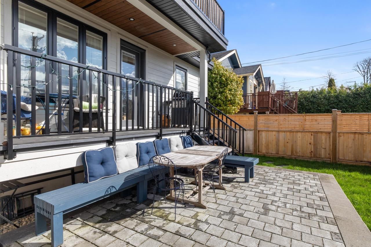 Impeccably maintained by its original owner, this 3 bed, 3 bath turnkey home offers the perfect blend of luxury, privacy, and city views. Boasting generous outdoor living with balconies on every level, a massive private patio on the second floor, and a fully fenced unusually large yard. Enjoy stunning downtown Vancouver views from multiple vantage points. Inside, the high-end kitchen boasts integrated Fisher & Paykel appliances with custom panels, complemented by Kohler fixtures and elegant Spanish tile thr...