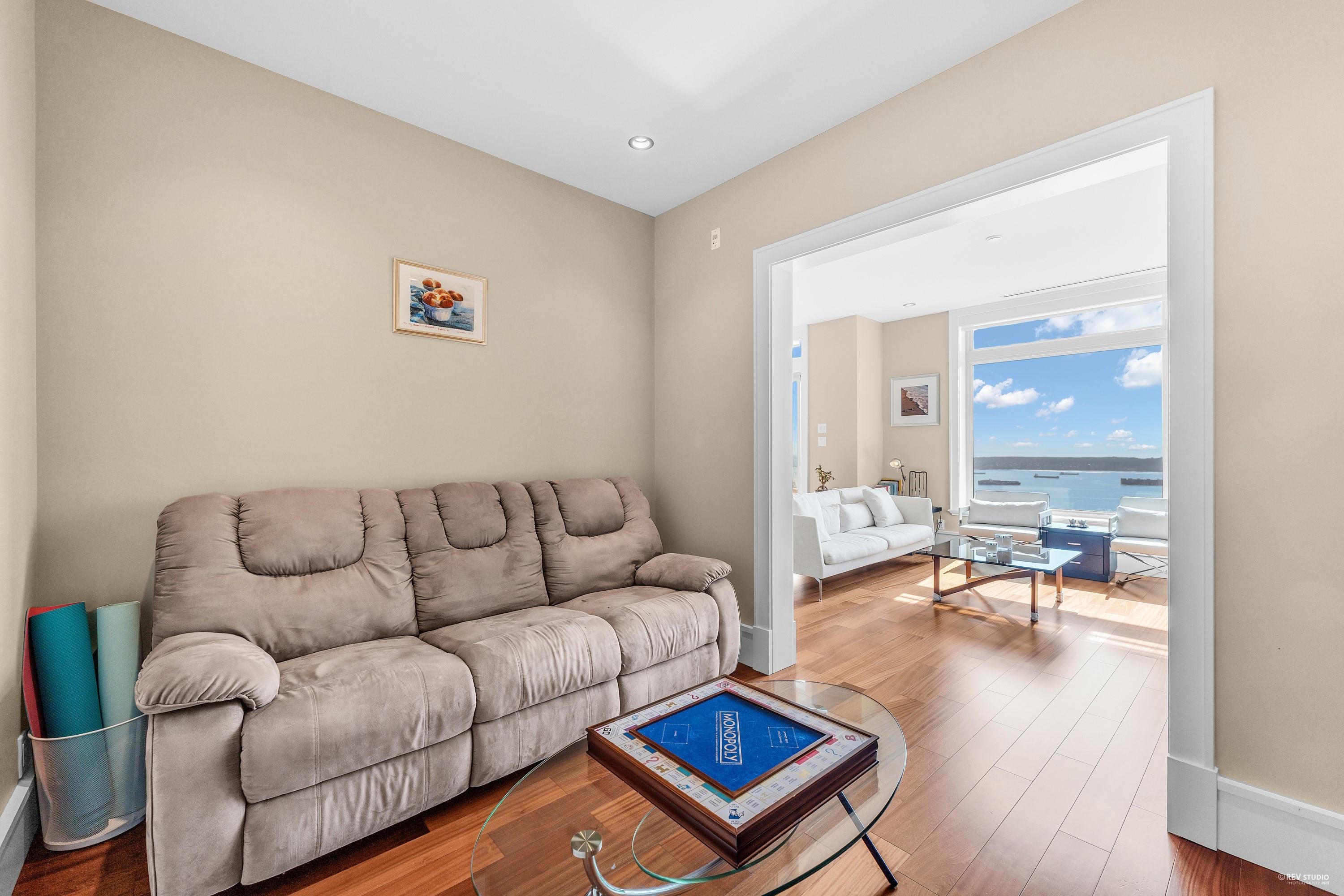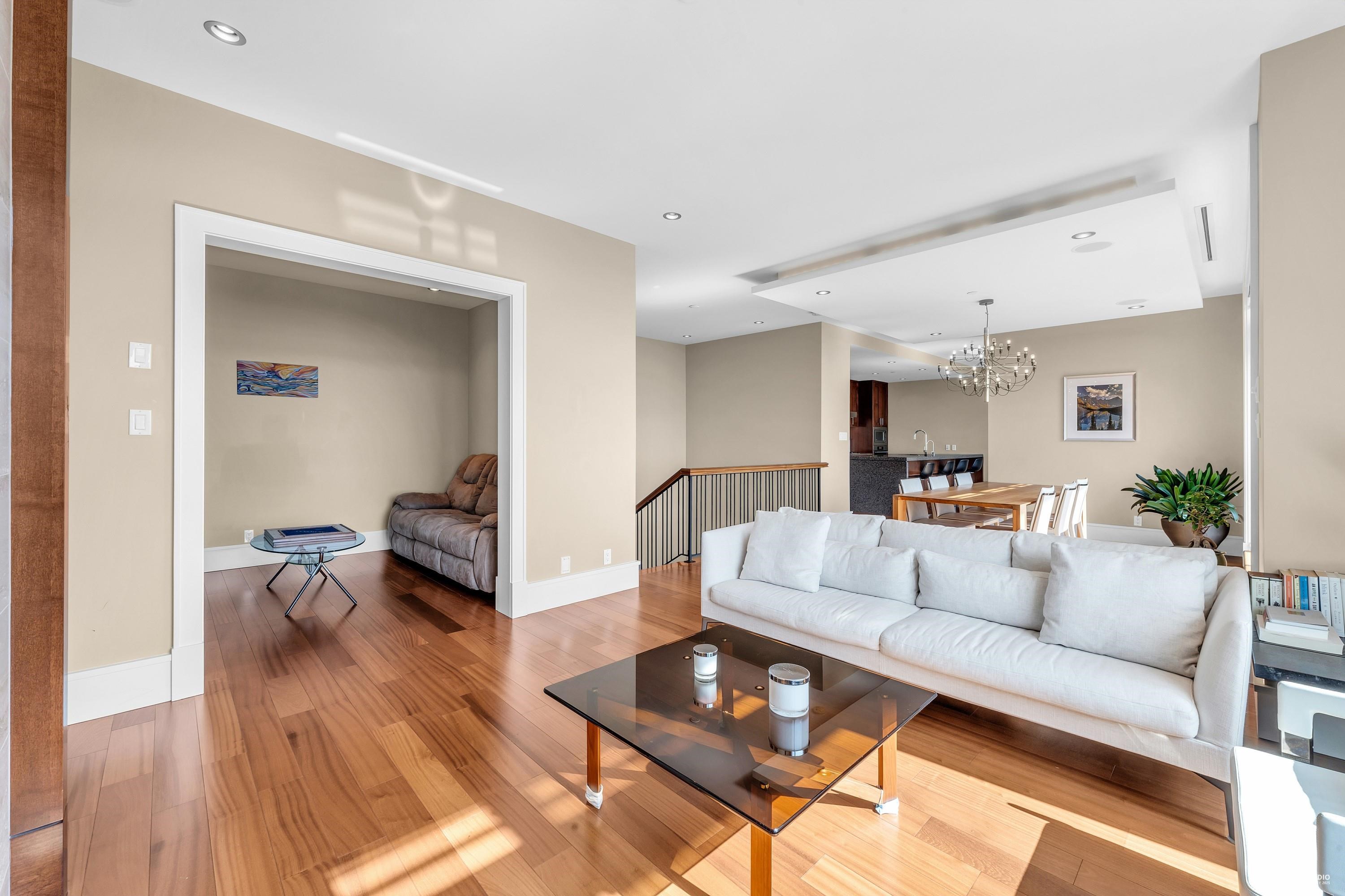 This elegant two level townhouse, crafted in concrete and stone by British Pacific Properties, features an expansive open concept design. Floor to ceiling windows frame sweeping views of the city skyline, harbour, and beyond. The living and dining areas flow into a versatile office/media room. The kitchen boasts premium SubZero & Miele appliances. The lower garden level offers two luxurious primary suites with private patios, a den/office with separate entrance, large laundry/storage room, private two car g...