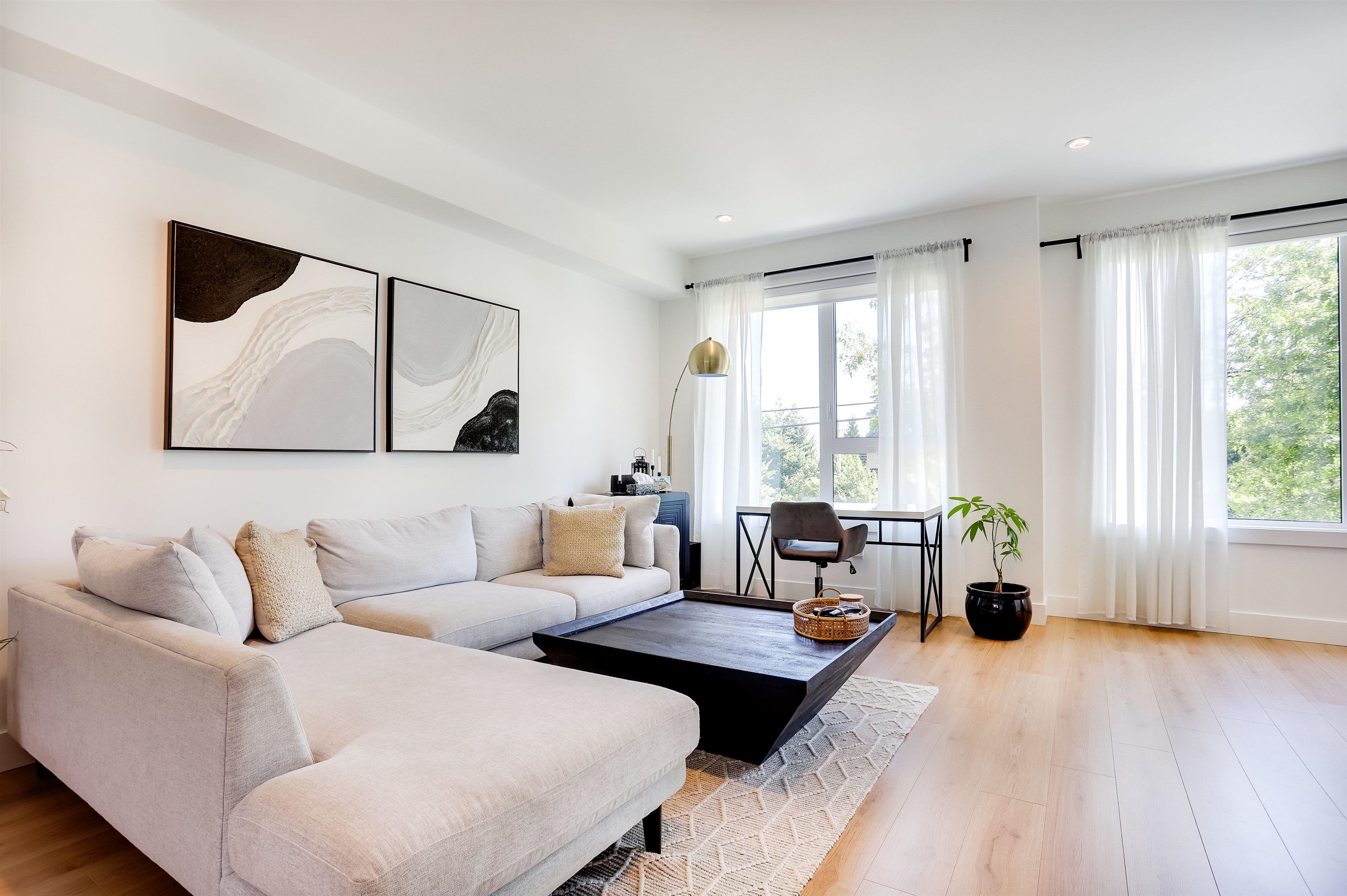 Welcome to THE OAK a luxurious and comfortable living experience with impressive features including 4 bedrooms, 4 bathrooms, central AC & heating, custom closets, a built-in fireplace and large windows that showcase mountain views and tons of natural light. The over 2,000 square feet of space includes a master suite with 12-foot ceilings, an ensuite, his & hers closets. The modern kitchen boasts stainless appliances, a spacious quartz island with a built-in breakfast table, and access to a balcony. Addition...