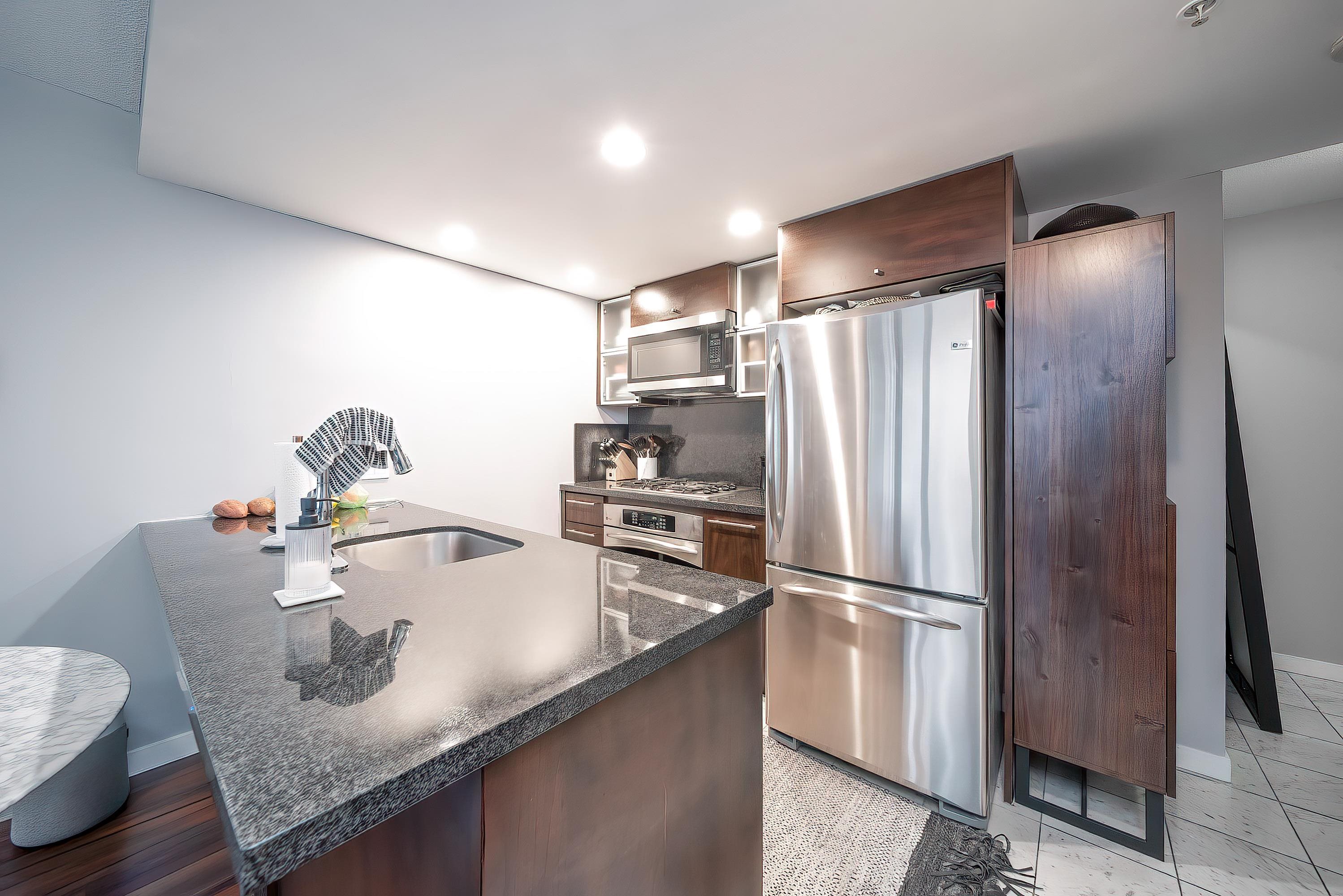 WELCOME to the best 1-bedroom floorplan on the 26th floor of Capitol Residences. Large 707 SqFt layout features a perfect open living space and kitchen, king-size bedroom, plus BOTH a solarium/den and a full-sized balcony. Great location with soaring SE views over Yaletown to stadium and beyond. Kitchen features granite counters, S/S appliances, and gas stovetop. Bathroom surrounds you in marble plus a glass shower enclosure. One large parking space included! Concierge, gym, party room and the strategic loc...