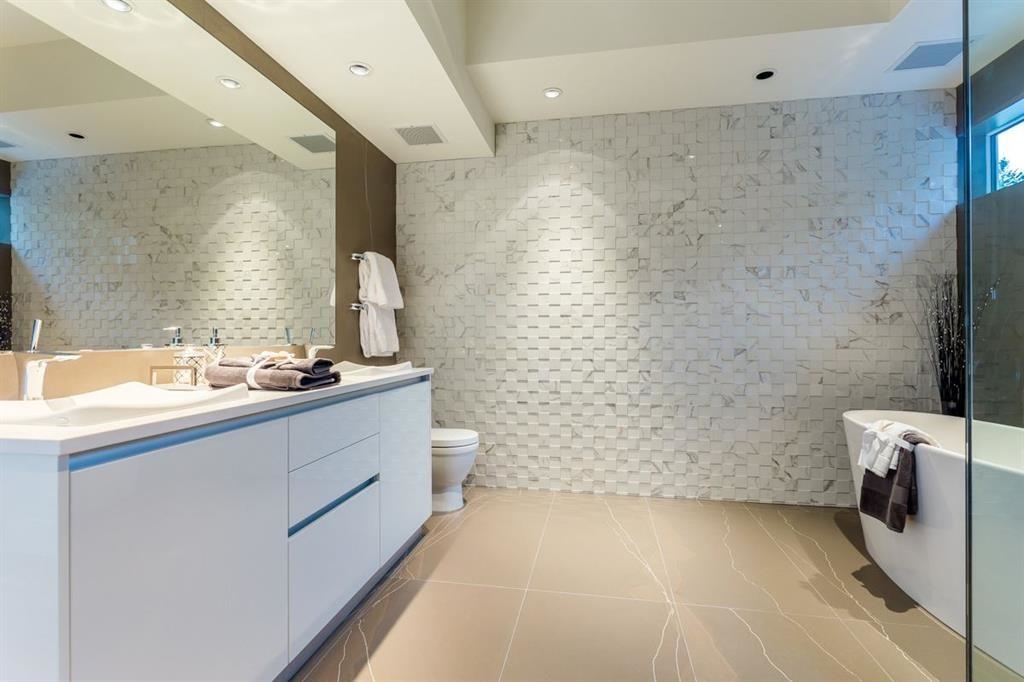 This Westcoast Contemporary custom-built home is located in the prestigious Canterbury neighbourhood. Expansive view of Vancouver, Georgia Strait & Point Grey peninsula. This cast iron structured home offers approximately 7,000 sqft of modern open living & entertaining area; 5 spacious bedrooms + den & 7 bathrooms (5 full bathrooms + 2 half bathrooms).Features include: smart home Technology, luxury lighting fixtures, engineered walnut hardwood floors, radiant in-floor heating & Air-conditioning, 3-floor e...