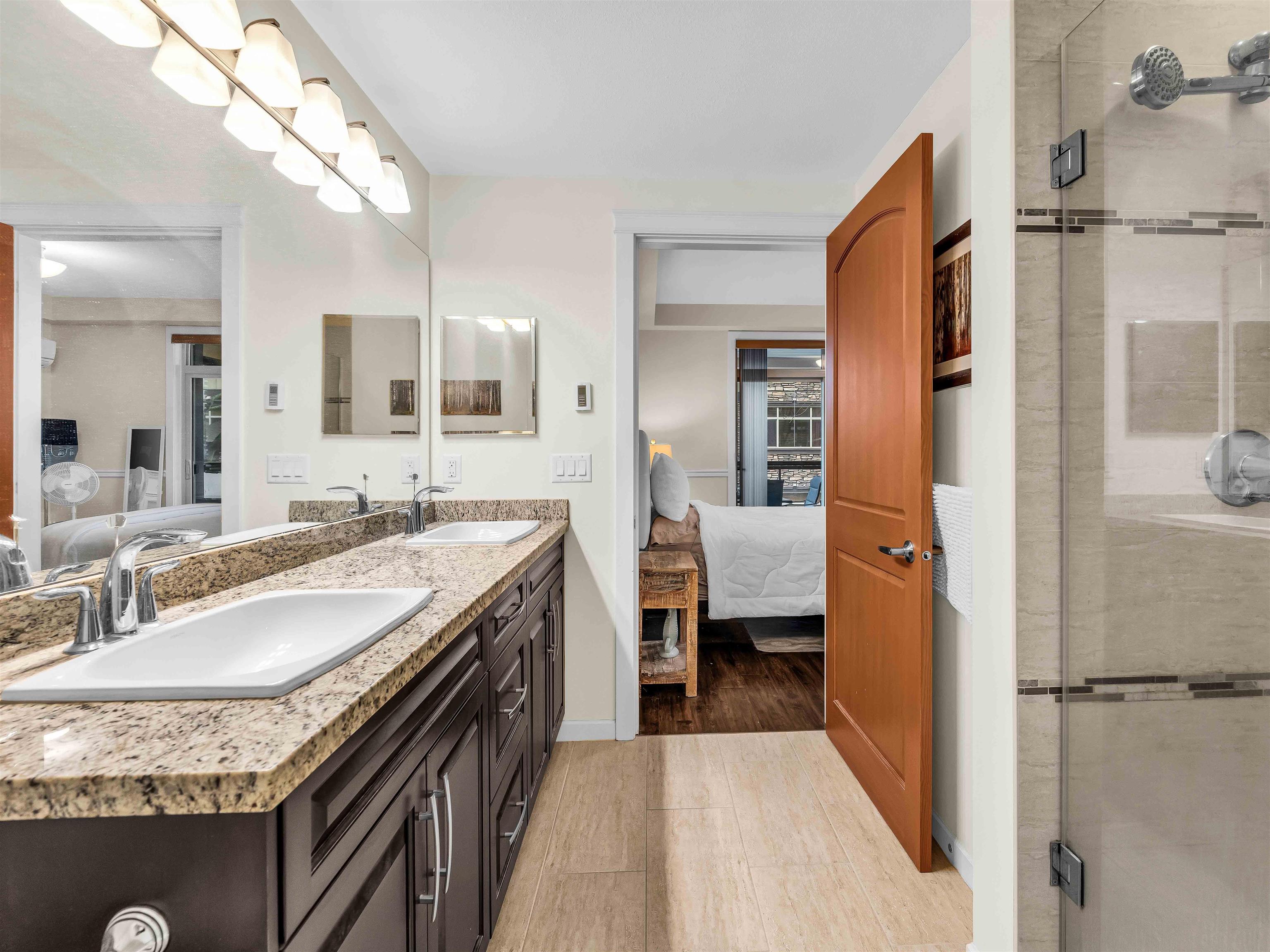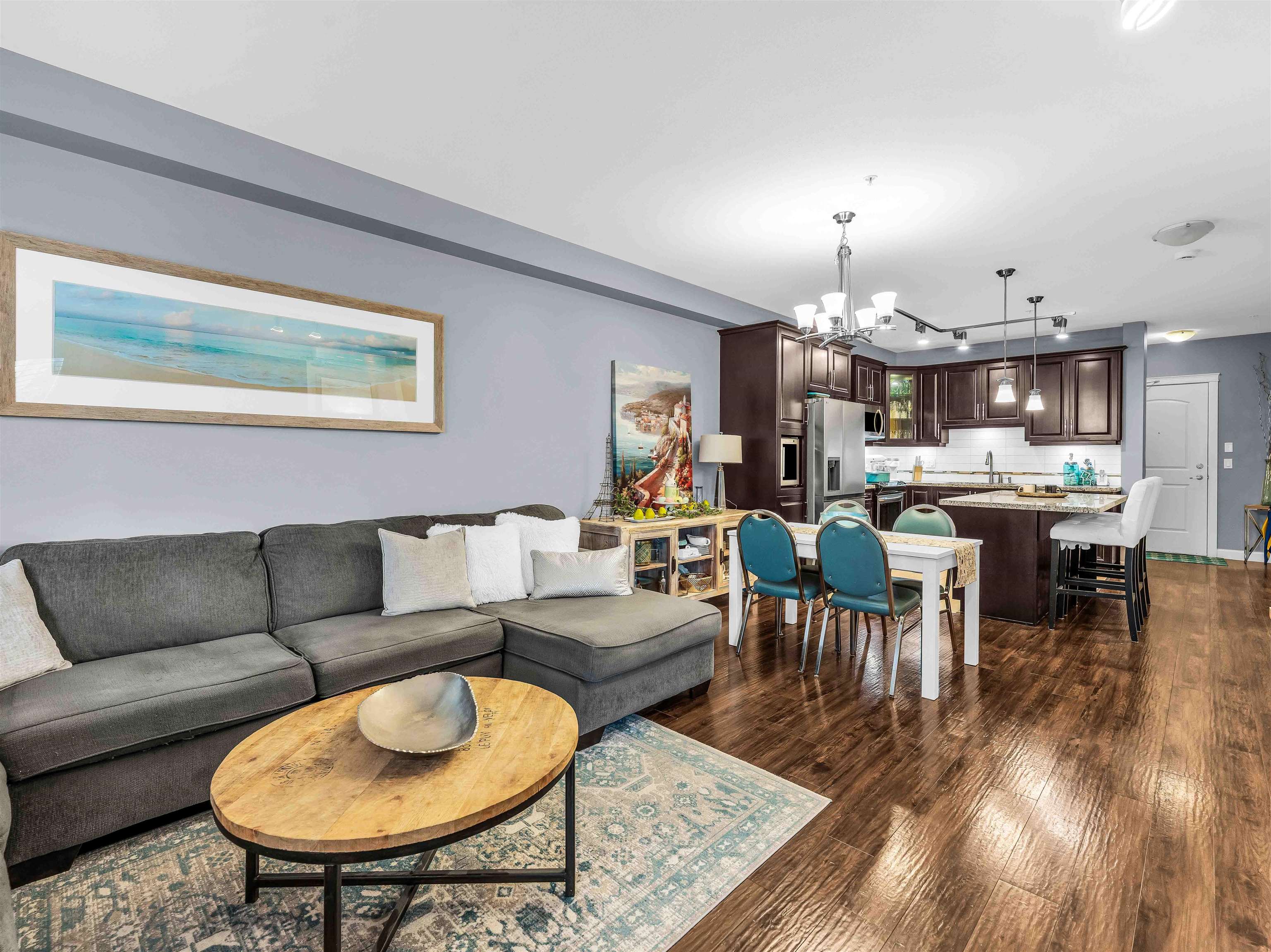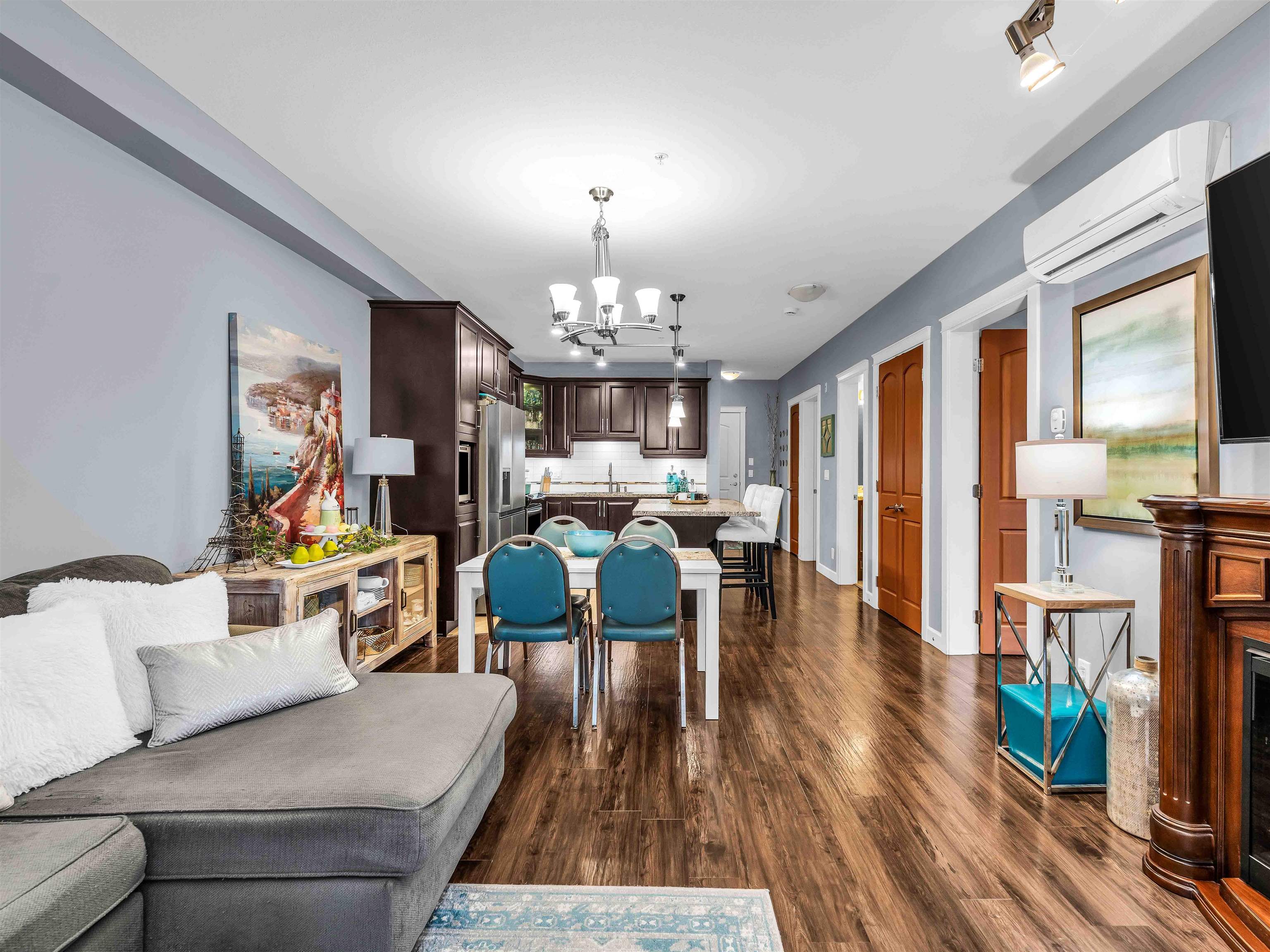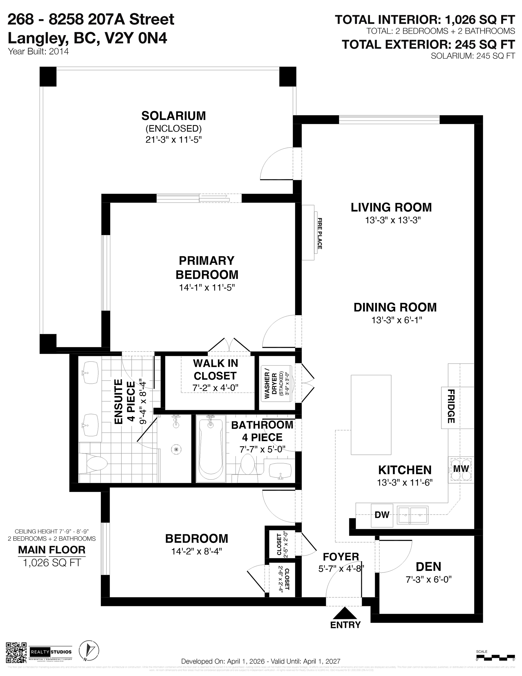 Welcome to Yorkson Creek! This spacious corner unit offers 2 bedrooms PLUS DEN & 2 full heated baths in the heart of Willoughby Heights, with 1,026 sqft of well designed living space. Den could easily be used a bedroom. Enjoy the bright & airy corner solarium, perfect for morning coffee or year round relaxation. The functional layout includes a versatile den, ideal for a home office or additional in suite storage. The gourmet kitchen features granite countertops, a large island, wine fridge and new applianc...