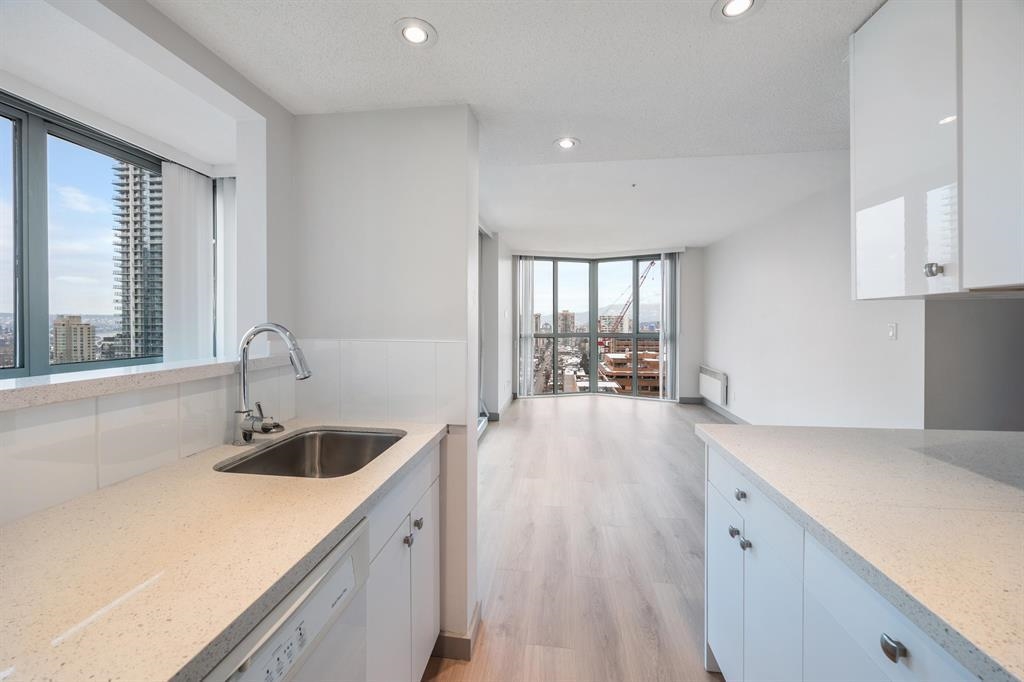 Experience the Sub-Penthouse lifestyle: 27 stories up, this exclusive 2-bed, 2-bath plus sunlit solarium residence offers panoramic English Bay and Granville Bridge views perfect for entertaining and daily awe. The primary bedroom opens to a balcony, ideal for morning coffee, while every room enjoys ocean vistas. Move-in ready with fresh paint and laminate flooring. Steps to the upcoming pedestrian-only Granville St district during FIFA, plus easy access to shopping, False Creek ferries, and transit. Enjoy ...