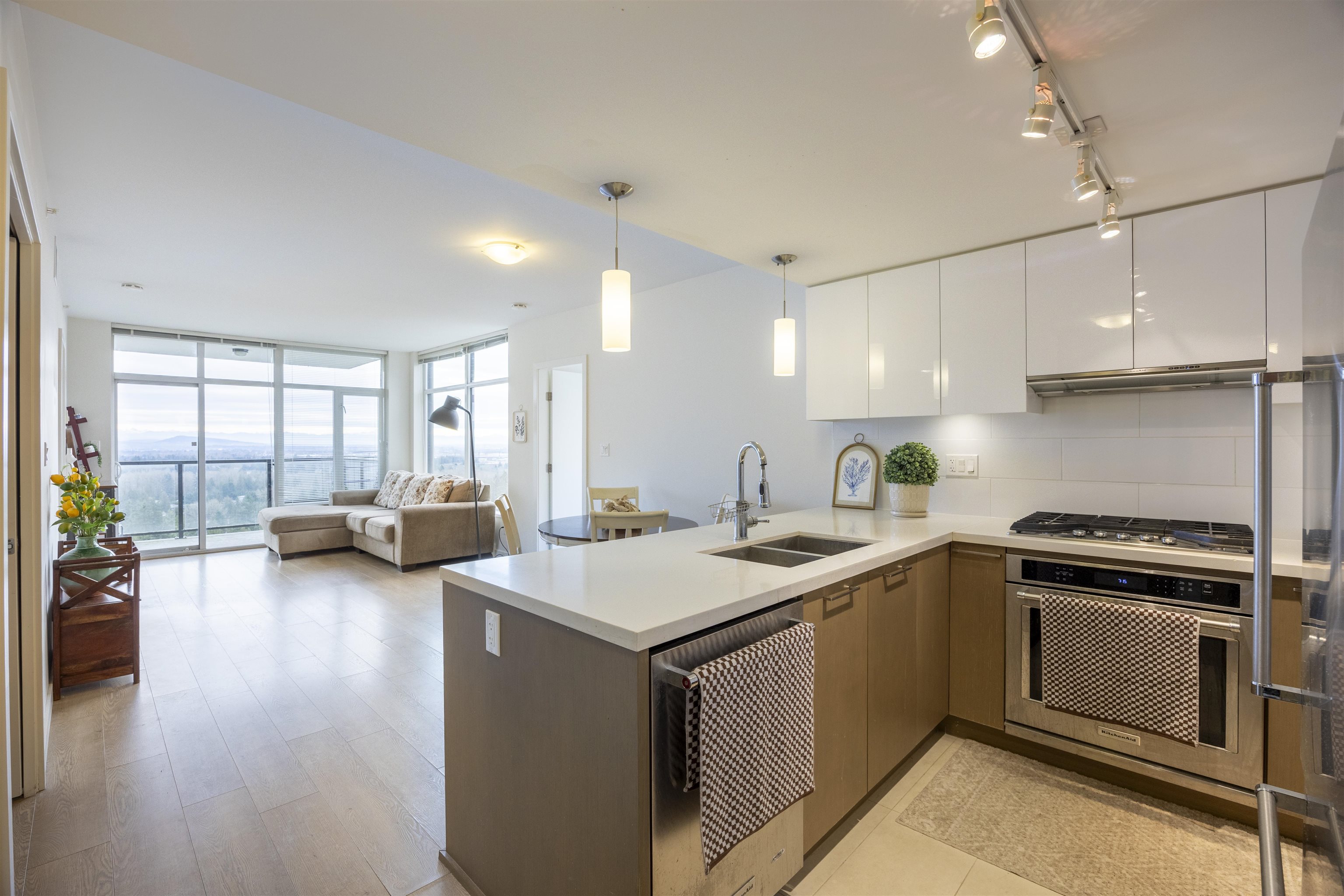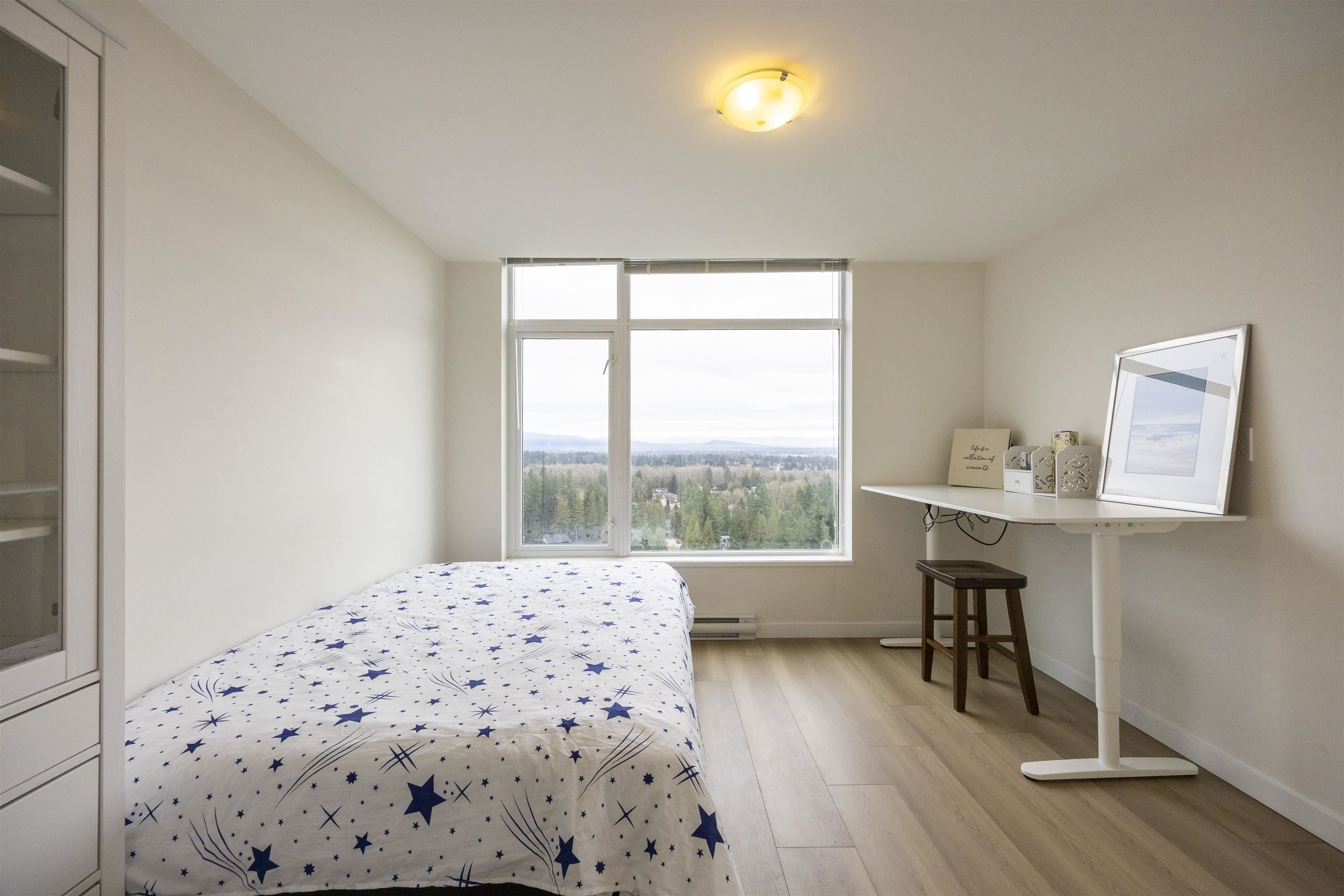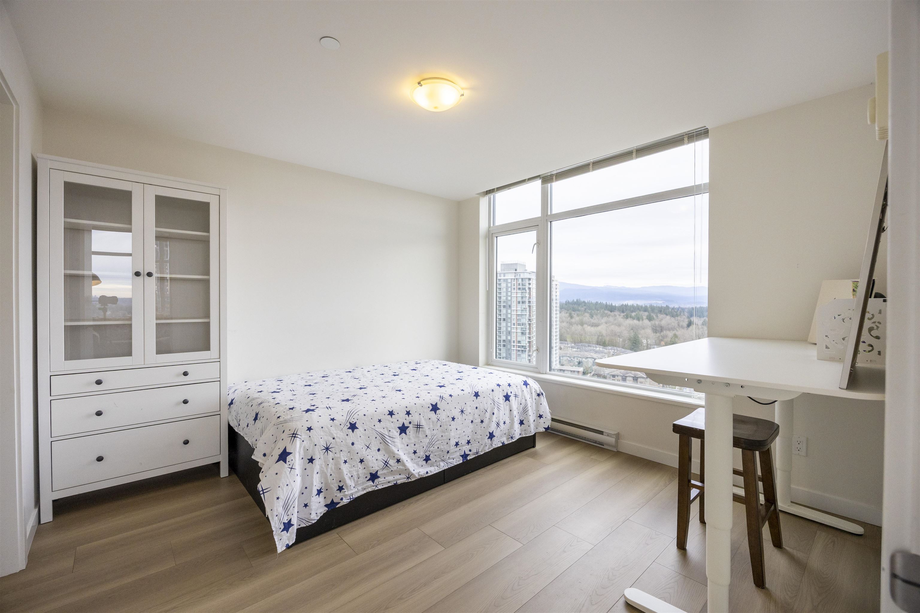 Westwood built by ONNI, a spacious South East facing corner unit with 2 beds + den on the 27th floor, with unobstructed panoramic view of city and mountains throughout the unit. It offers 959 sqft living space. Open concept gourmet kitchen contains gas stove and s/s appliances. Primary bedroom has a spa ensuite bathroom. A den is delighted for addition living or office space. The building offers a wide range of amenities such as concierge, outdoor pool, hot tub, sauna, fitness centre, guest suite and etc. L...