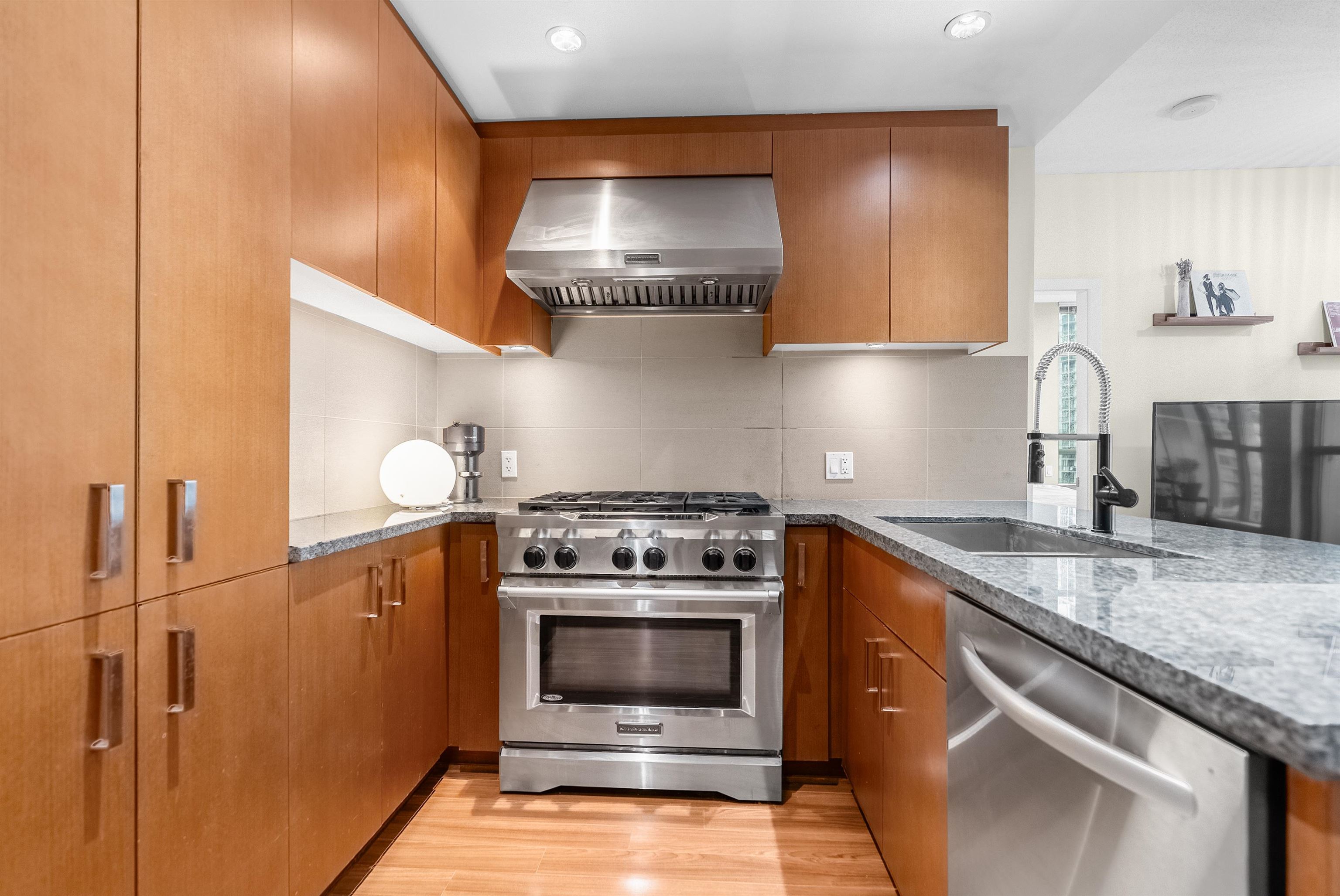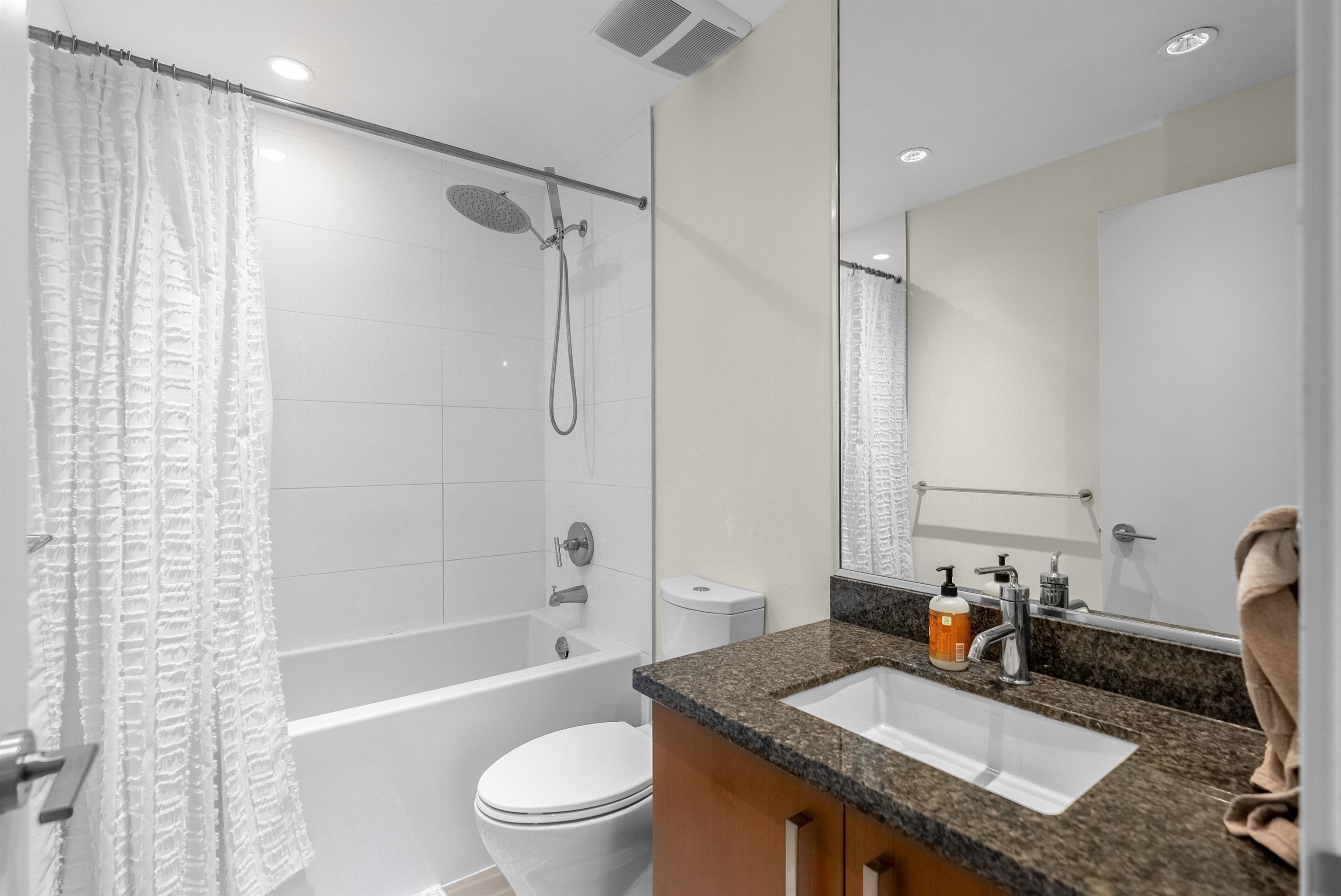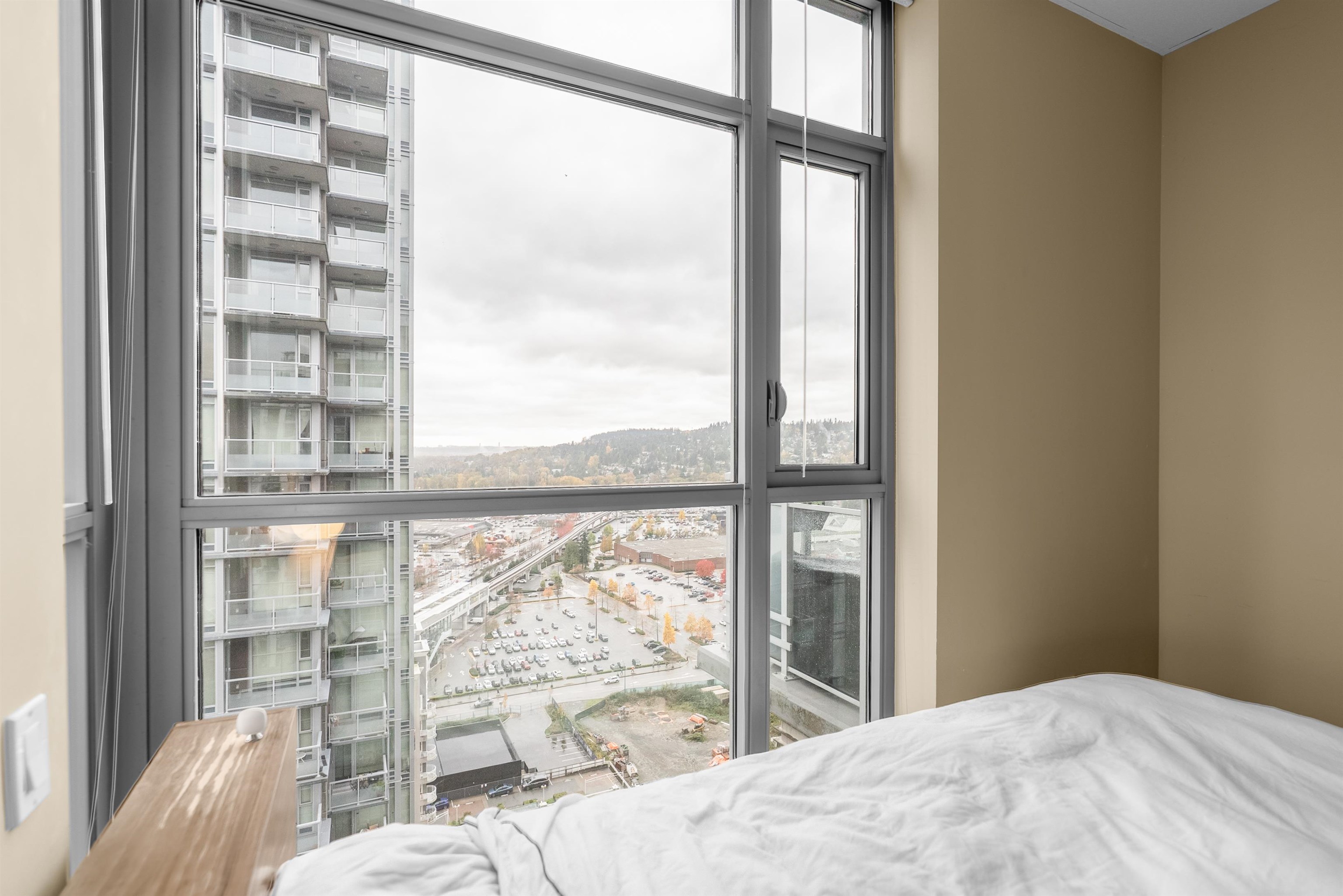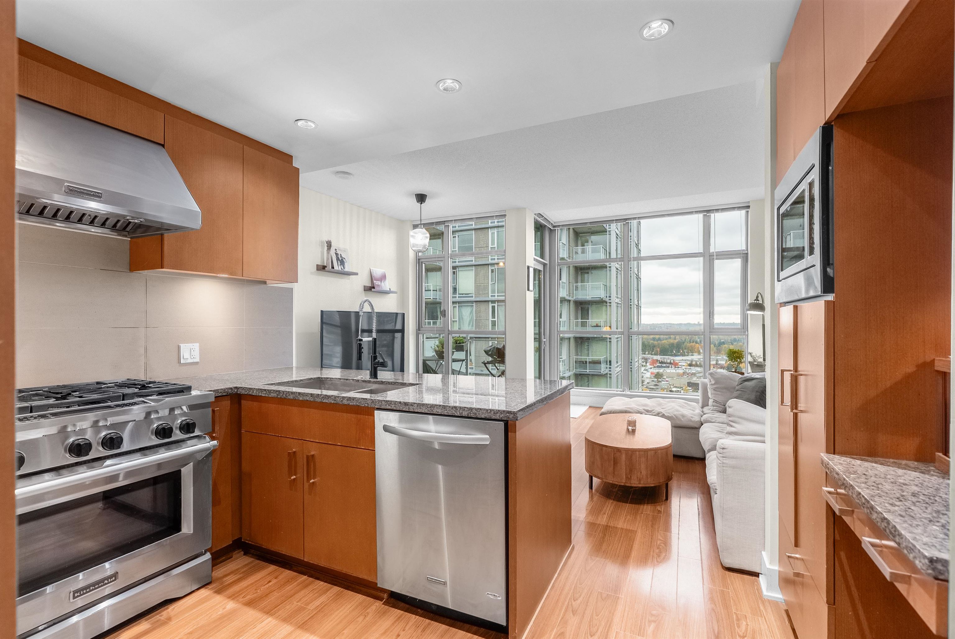 Sub-penthouse on the 27th floor with breathtaking mountain views! Built by Cressey, this bright east-facing corner home offers an open layout with high ceilings, air conditioning, and a spacious den perfect for a home office. Freshly painted in modern designer colors, it feels stylish and move-in ready. Enjoy a contemporary laminate flooring, a generous living area, and a gourmet kitchen featuring a 6-burner gas cooktop, granite countertops, and stainless steel appliances. Includes front-load washer/dryer, ...