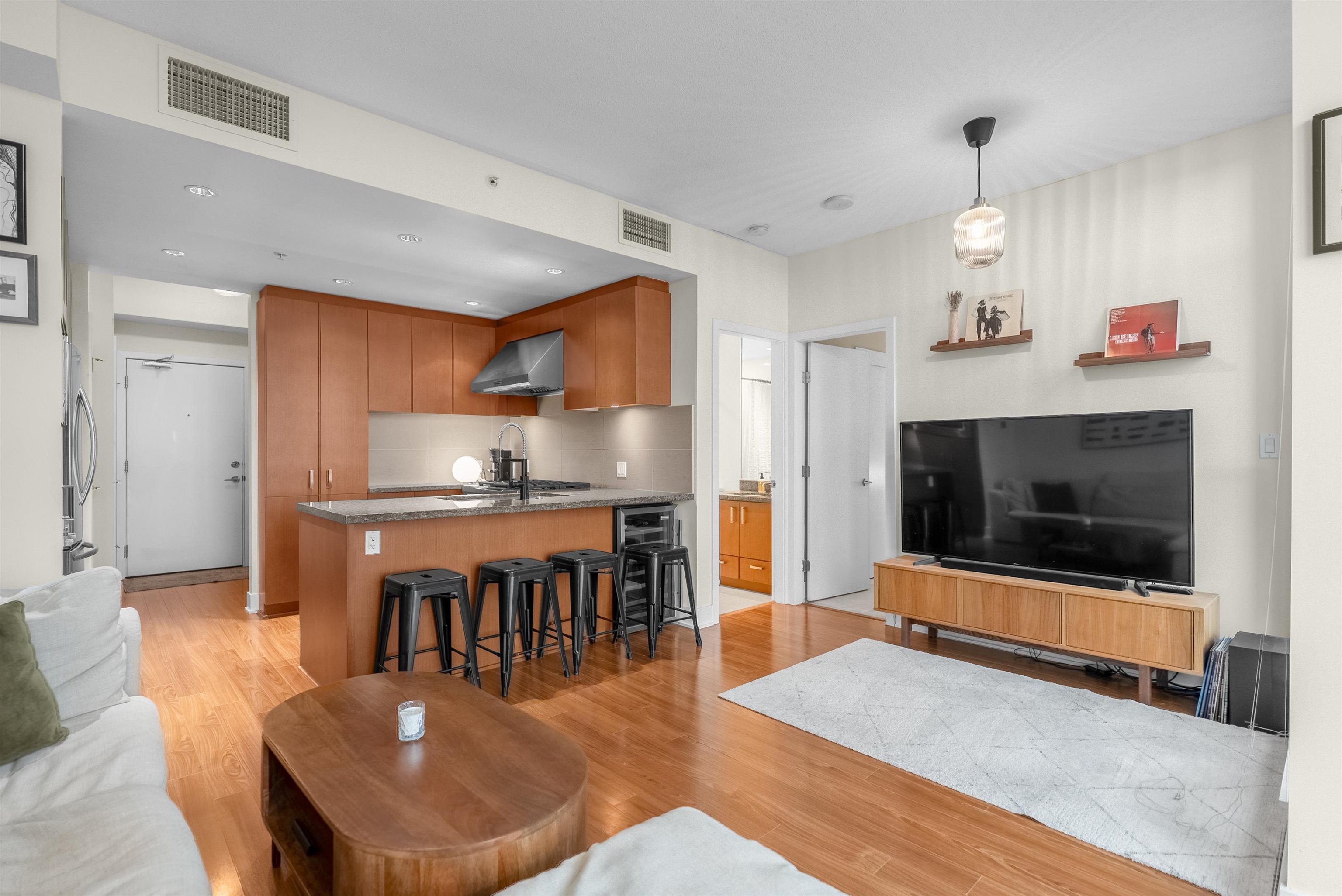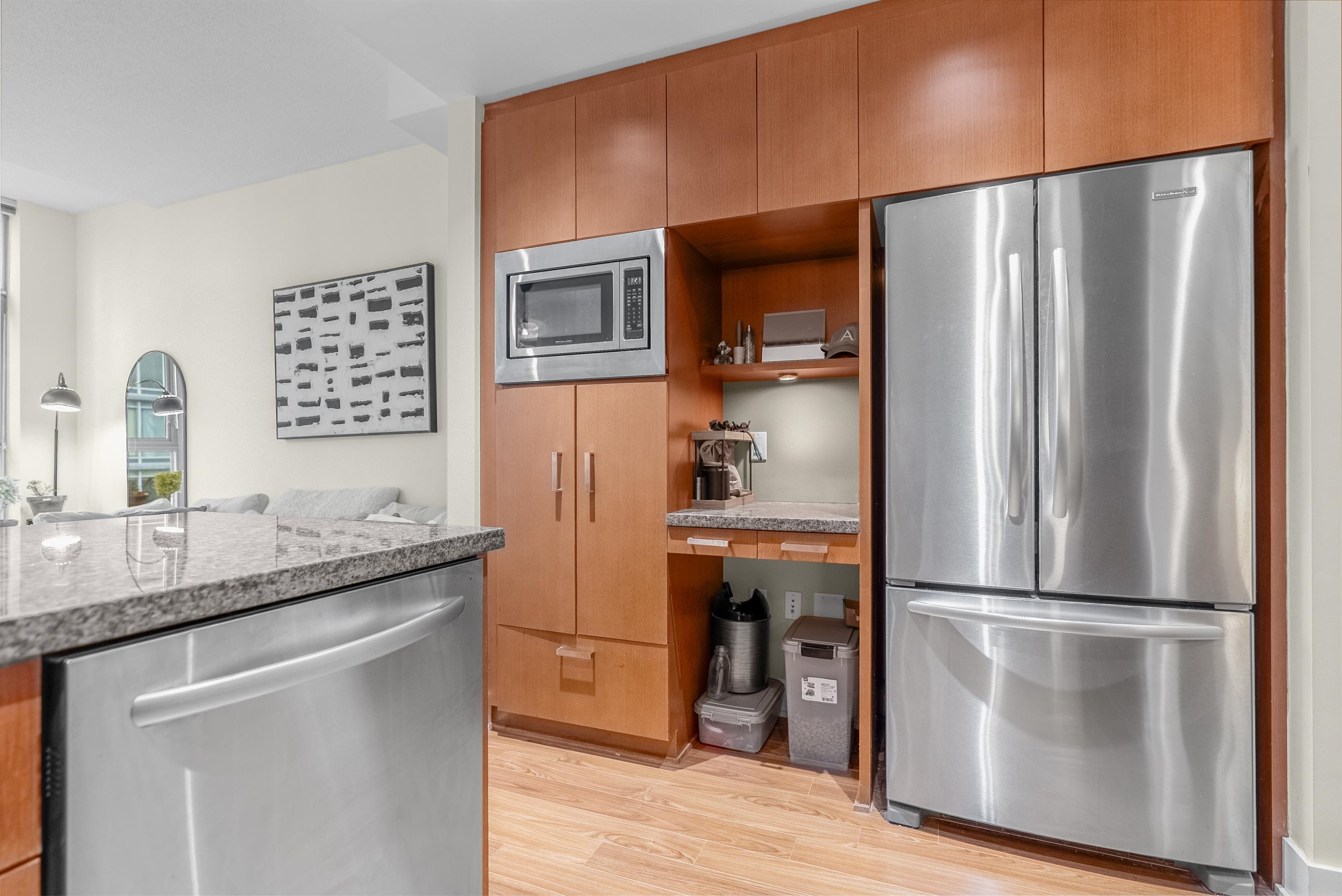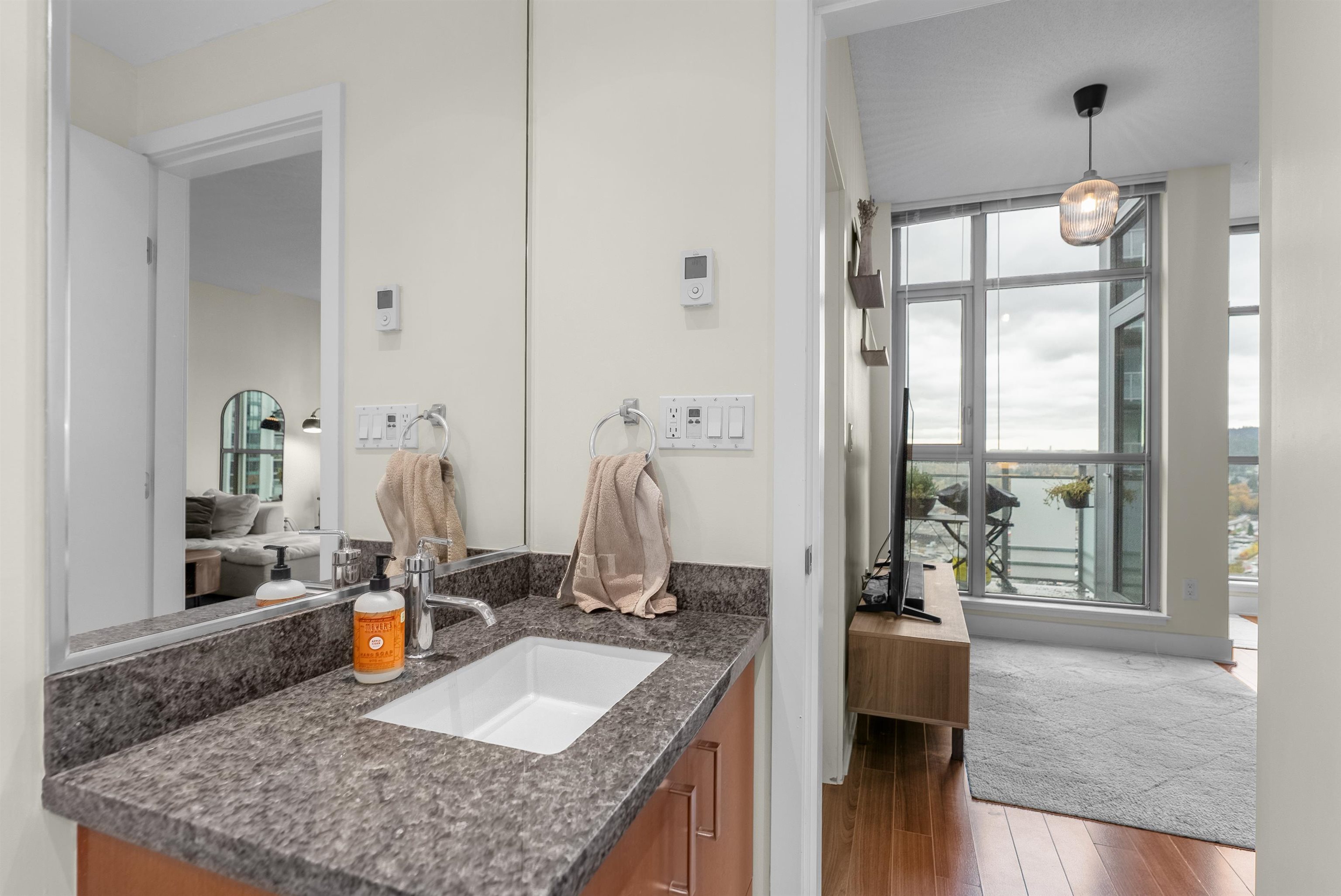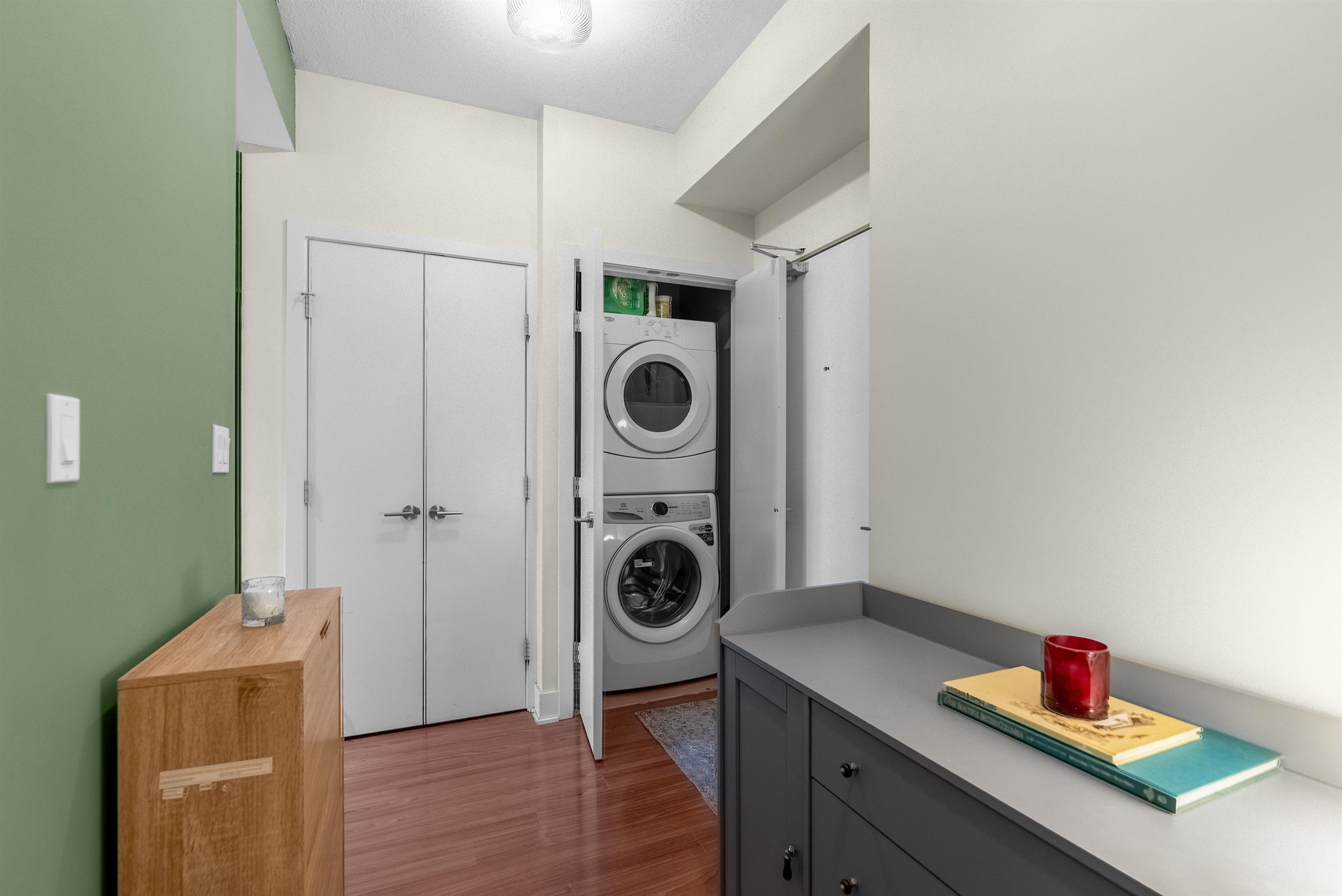 Sub-penthouse on the 27th floor with breathtaking mountain views! Built by Cressey, this bright east-facing corner home offers an open layout with high ceilings, air conditioning, and a spacious den perfect for a home office. Freshly painted in modern designer colors, it feels stylish and move-in ready. Enjoy a contemporary laminate flooring, a generous living area, and a gourmet kitchen featuring a 6-burner gas cooktop, granite countertops, and stainless steel appliances. Includes front-load washer/dryer, ...