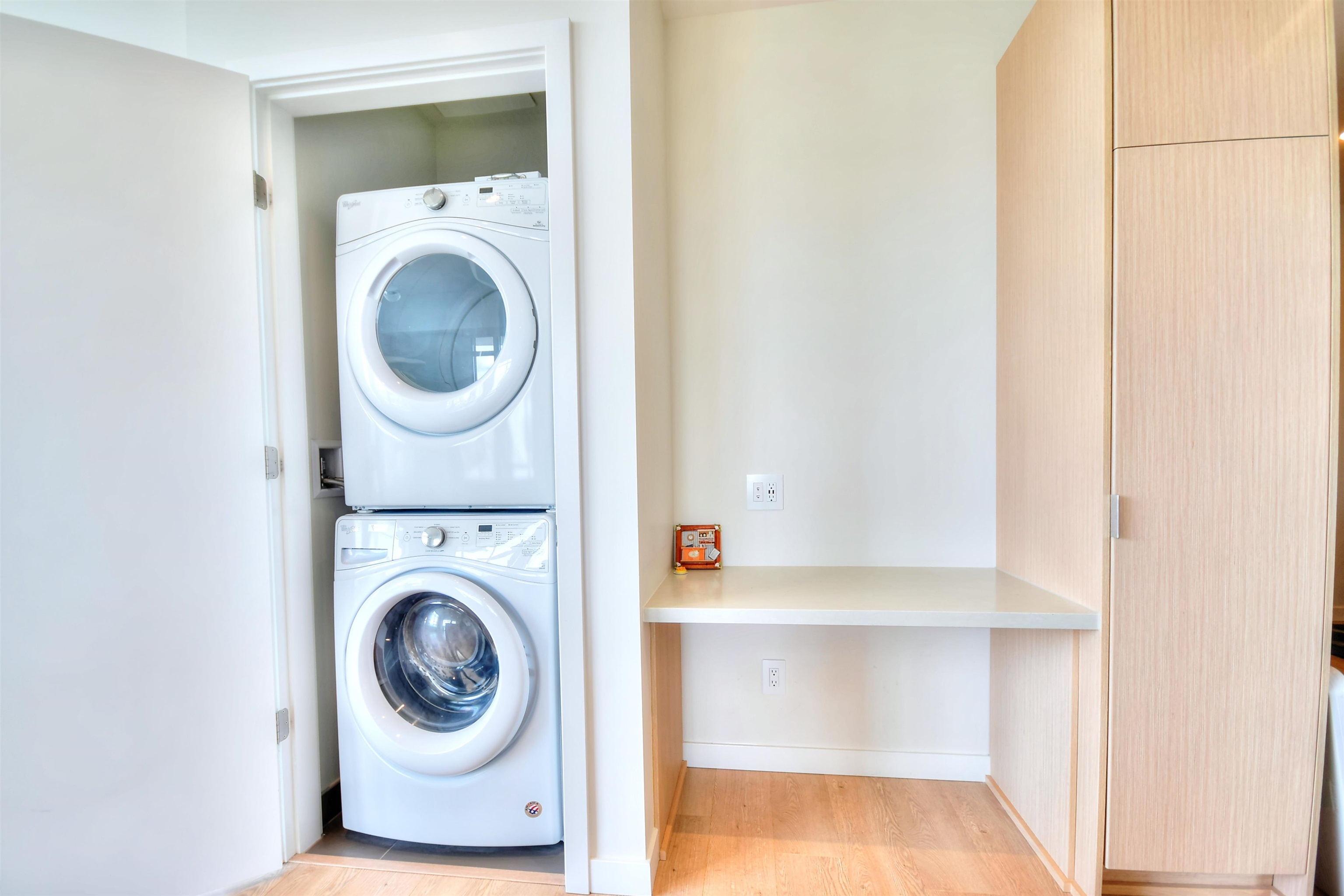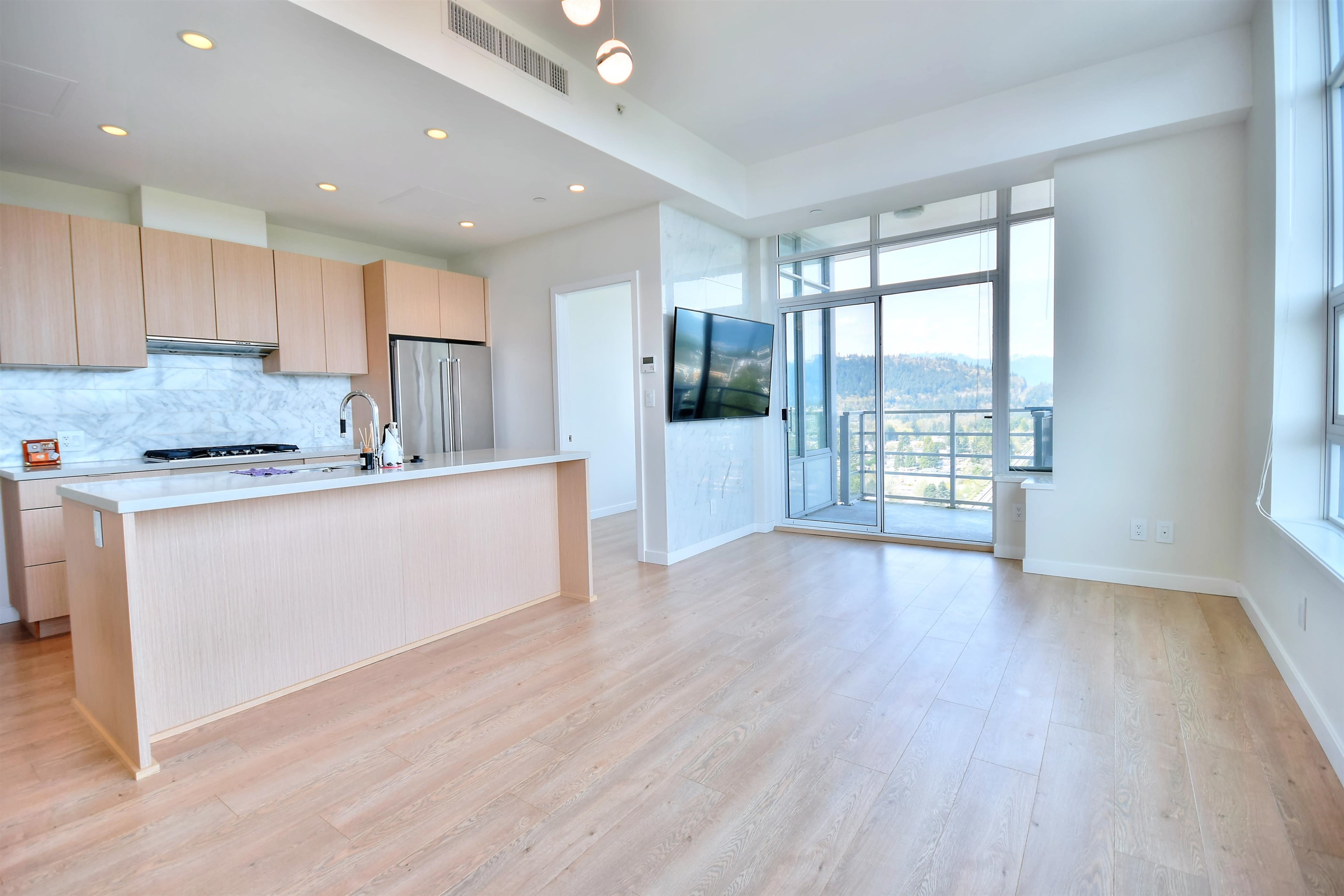 SUB-PENTHOUSE unit at Brookmere by Onni. This quiet, 2 plus Den, corner unit comes with 10’ ceiling, A/C, KitchenAid S.S appliances and full size, high efficient washer and dryer by Whirlpool, contemporary wide plank laminate flooring through the unit, marble tile floorings in the bathrooms(master bath has NuHeat heated floor), walk-in closet outfitted with built-in millwork closet organizers..etc. Walking distance to Lougheed Mall, Coquitlam College and Skytrain station. FANTASTIC VIEW of Vancouver Golf Co...