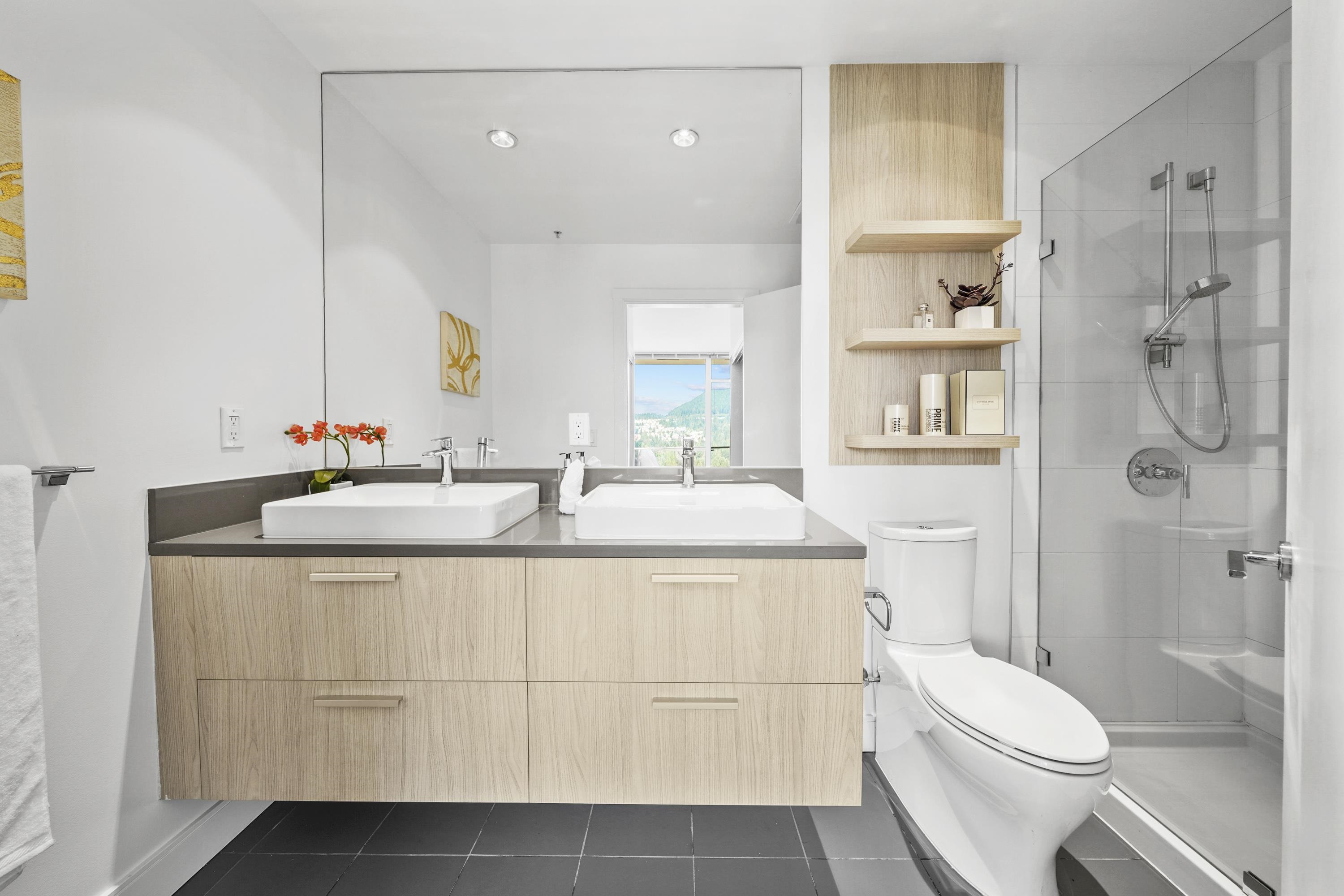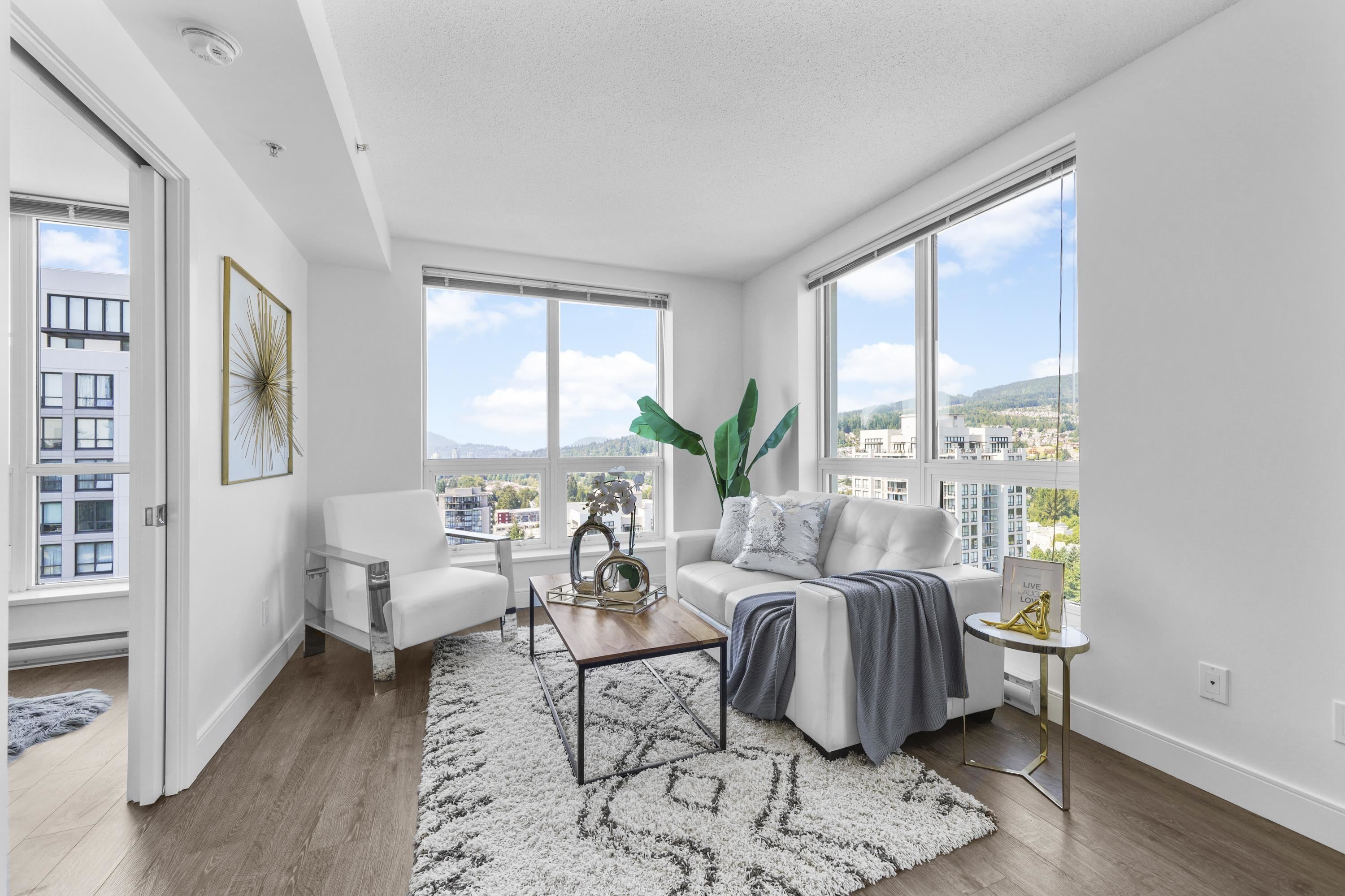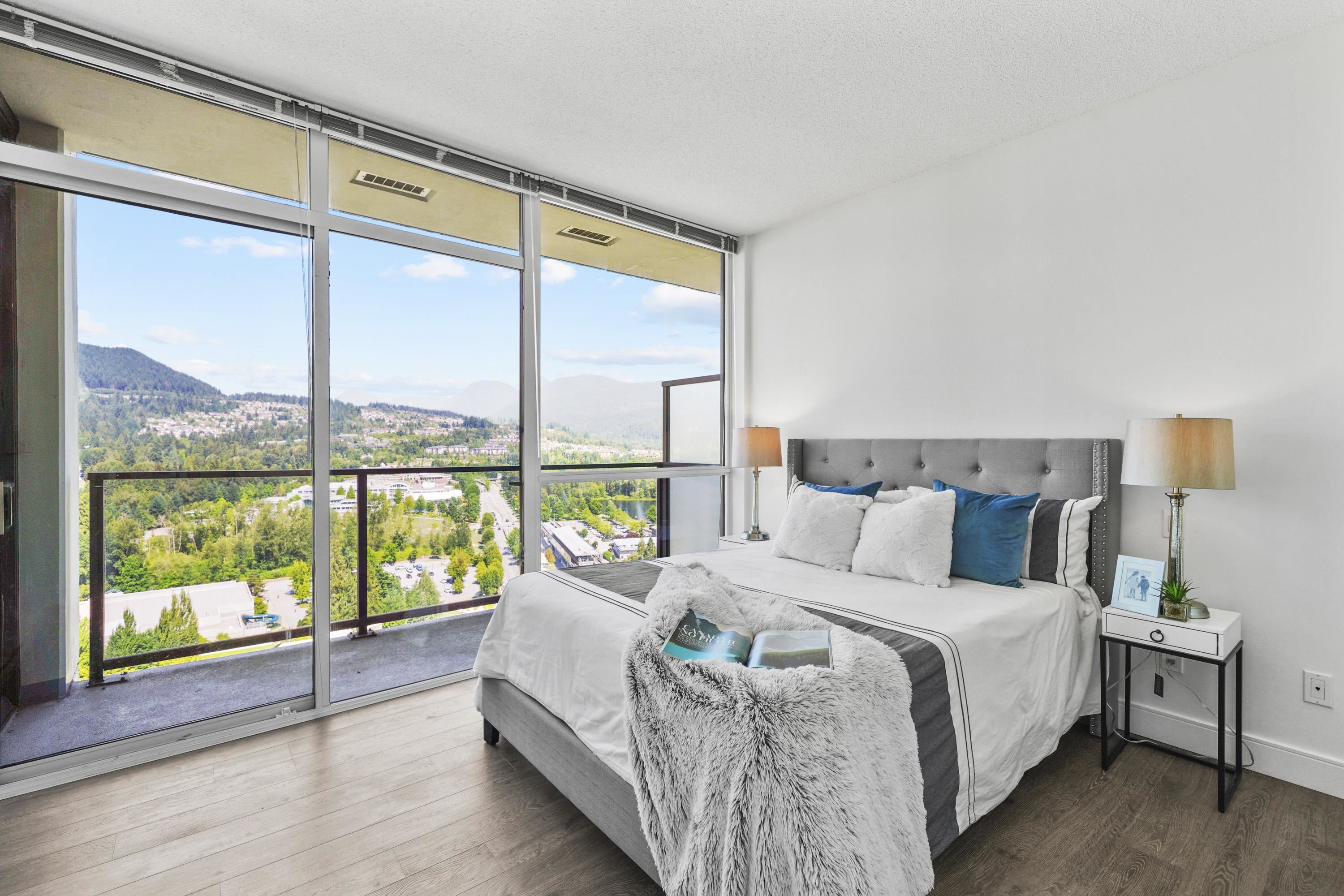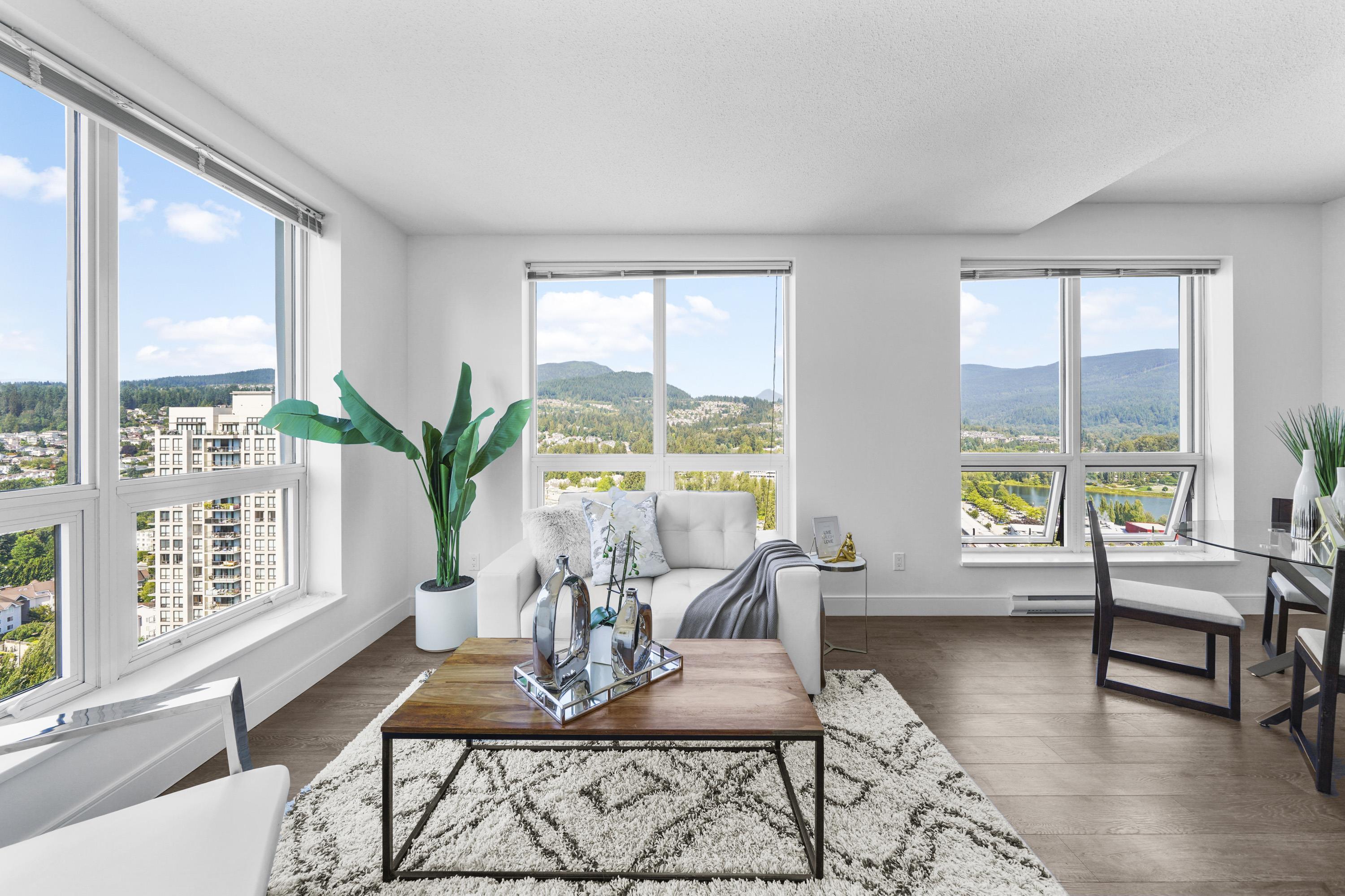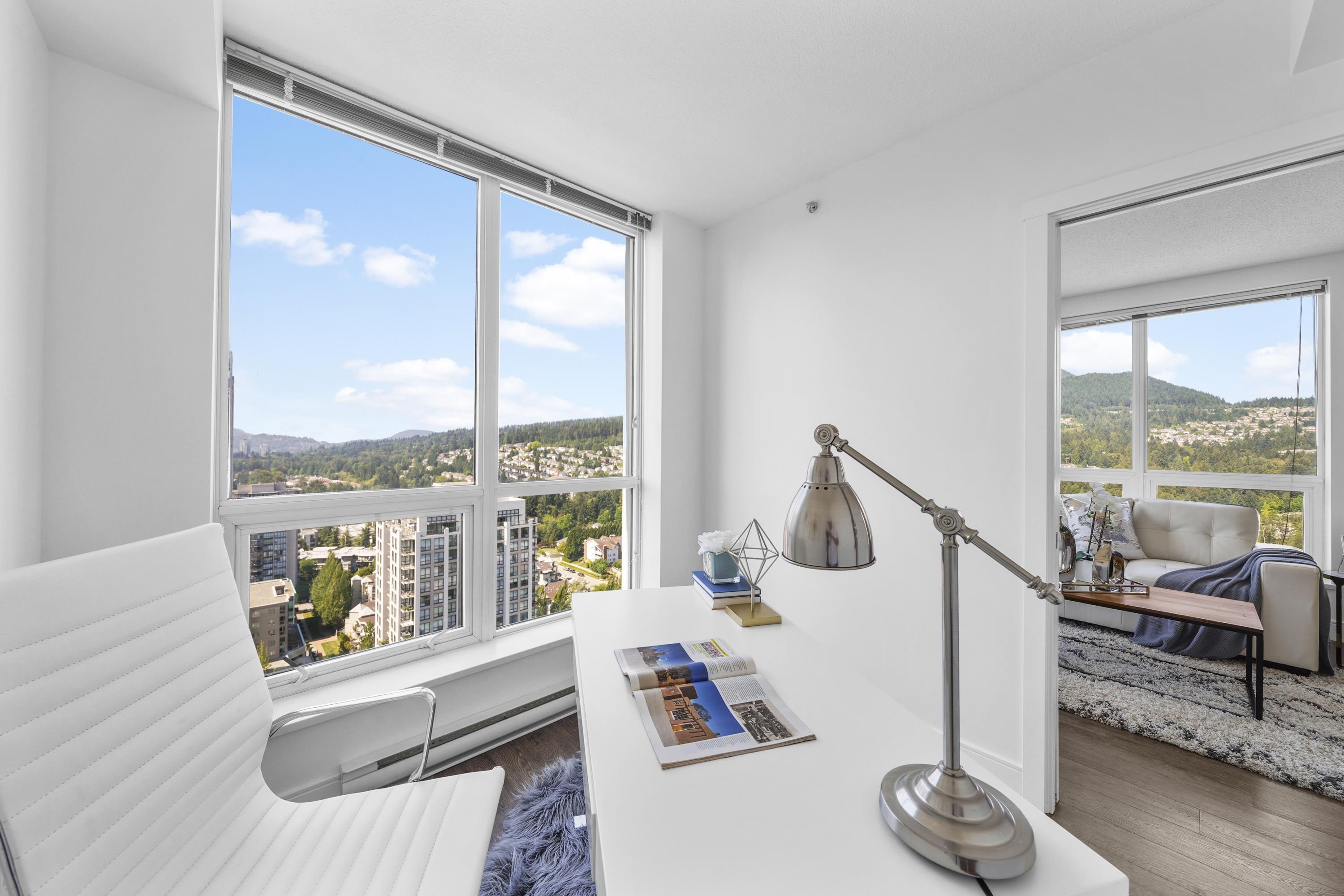 Sought-after EVERGREEN built by BOSA. Stunning 2 bed + den over 1000sf on the 28th floor. Well-appointed layout, floor-to-ceiling windows, chef-inspired kitchen, and spa-inspired baths. 2 good sized bedrooms. Den offers the perfect home office or private retreat or could be used as a 3rd bedroom. North-west CORNER with panoramic VIEWS of mountains, city and the Lafarge Lake. Located in the heart of the Coquitlam Center, steps to SkyTrain, Coquitlam Centre Mall, Lafarge Lake, dining & entertainment. A ra...