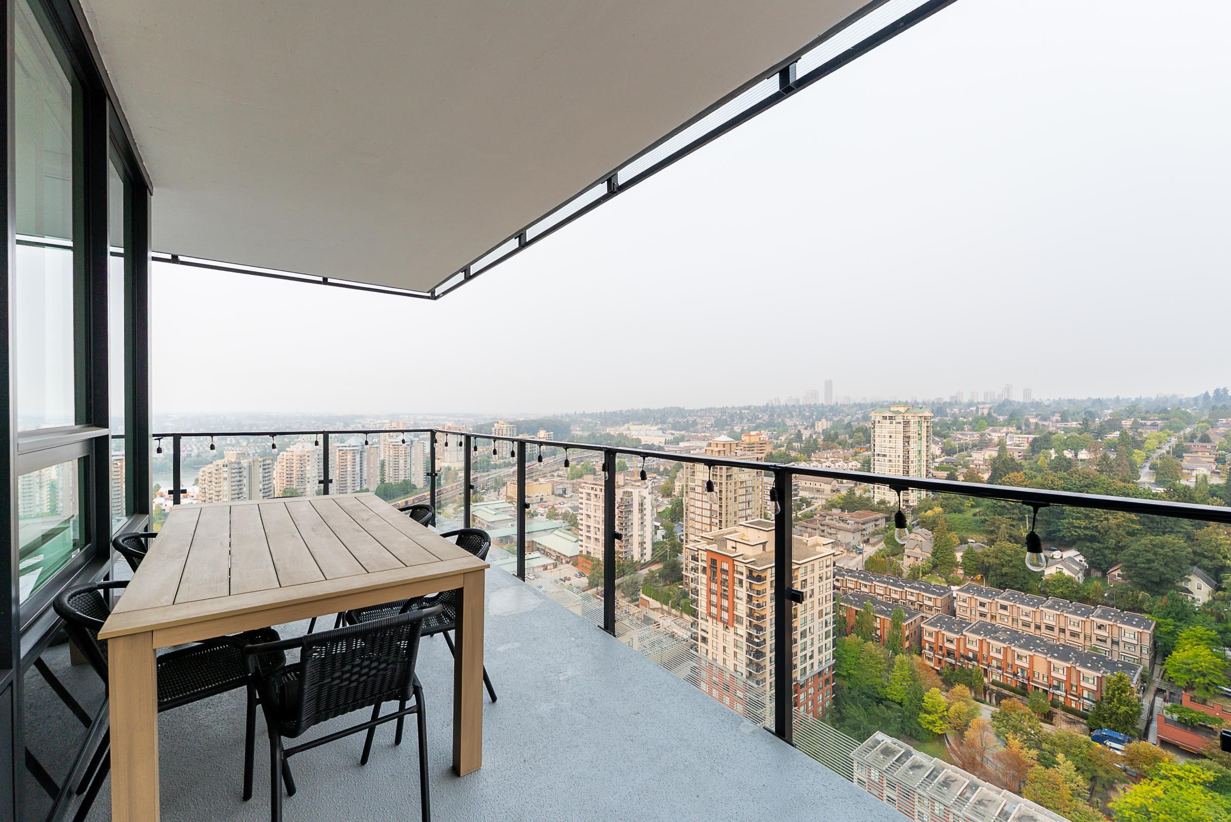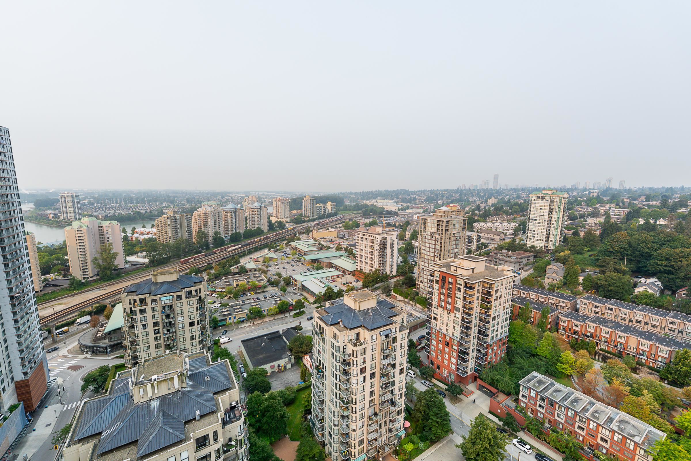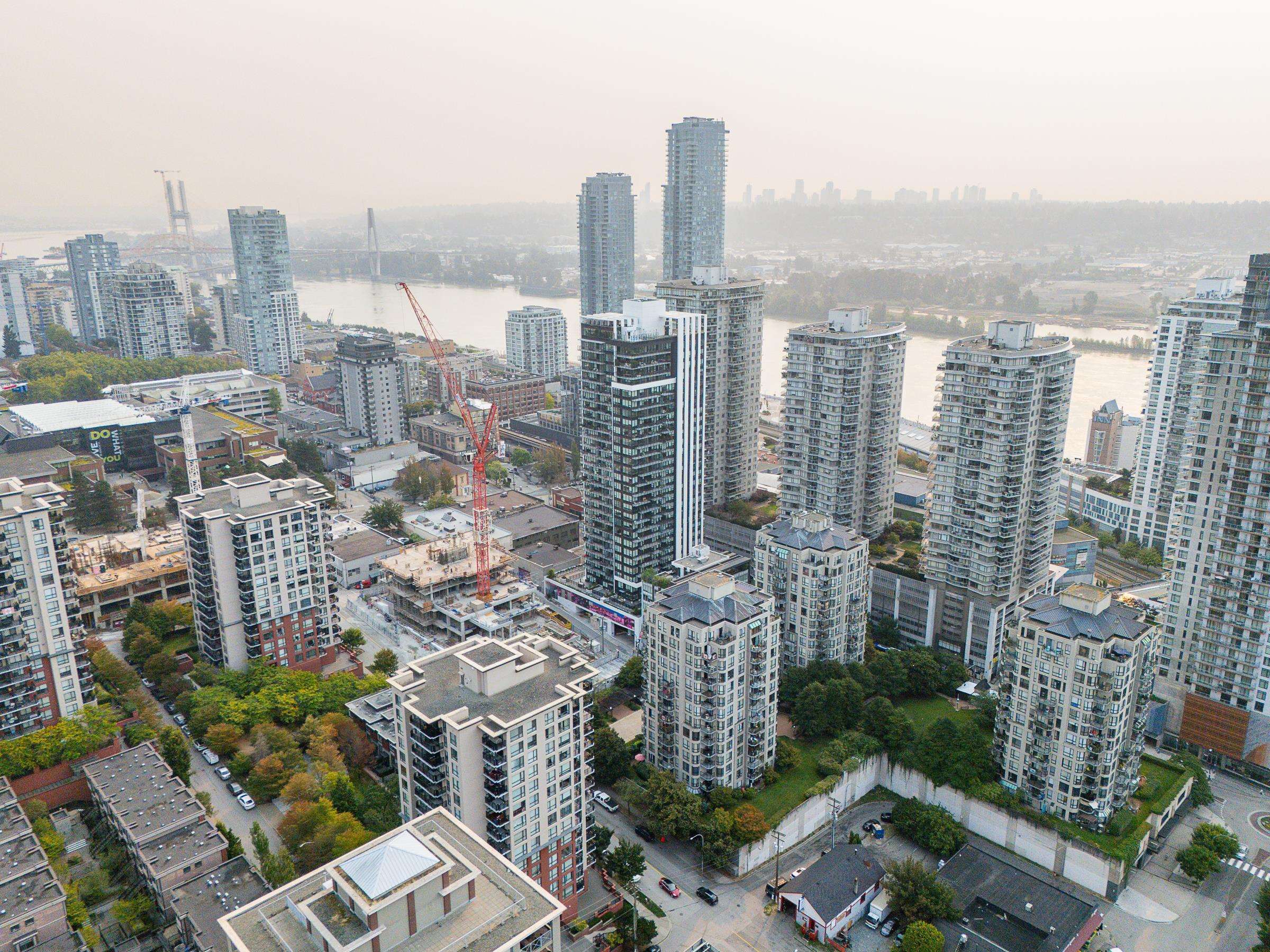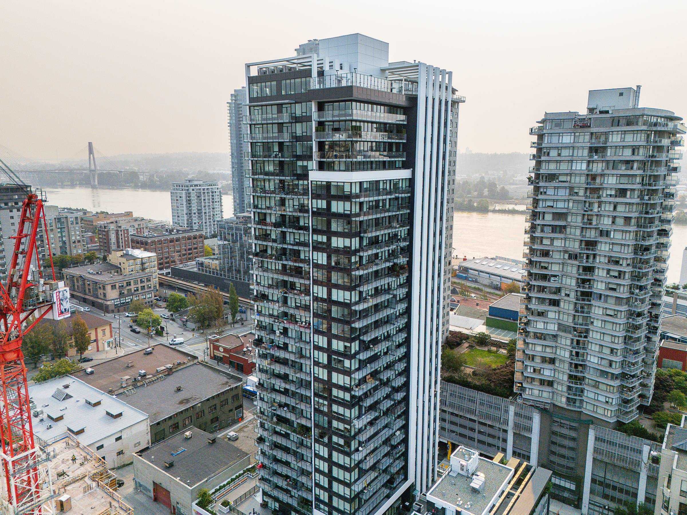 Sky-high luxury living at Ovation, in the heart of downtown New Westminster - NO GST! This beautifully updated 3 bed, 2 bath residence features 2 side-by-side parking stalls including an EV charger, 3 storage lockers, and 1245 sq/ft of luxurious living space. Incredible open layout, A/C, and breathtaking views through the oversized windows. The 458 square foot wrap-around balcony is perfect for entertaining, or morning coffee as the sun comes up. The gourmet kitchen offers a sleek design, integrated applian...