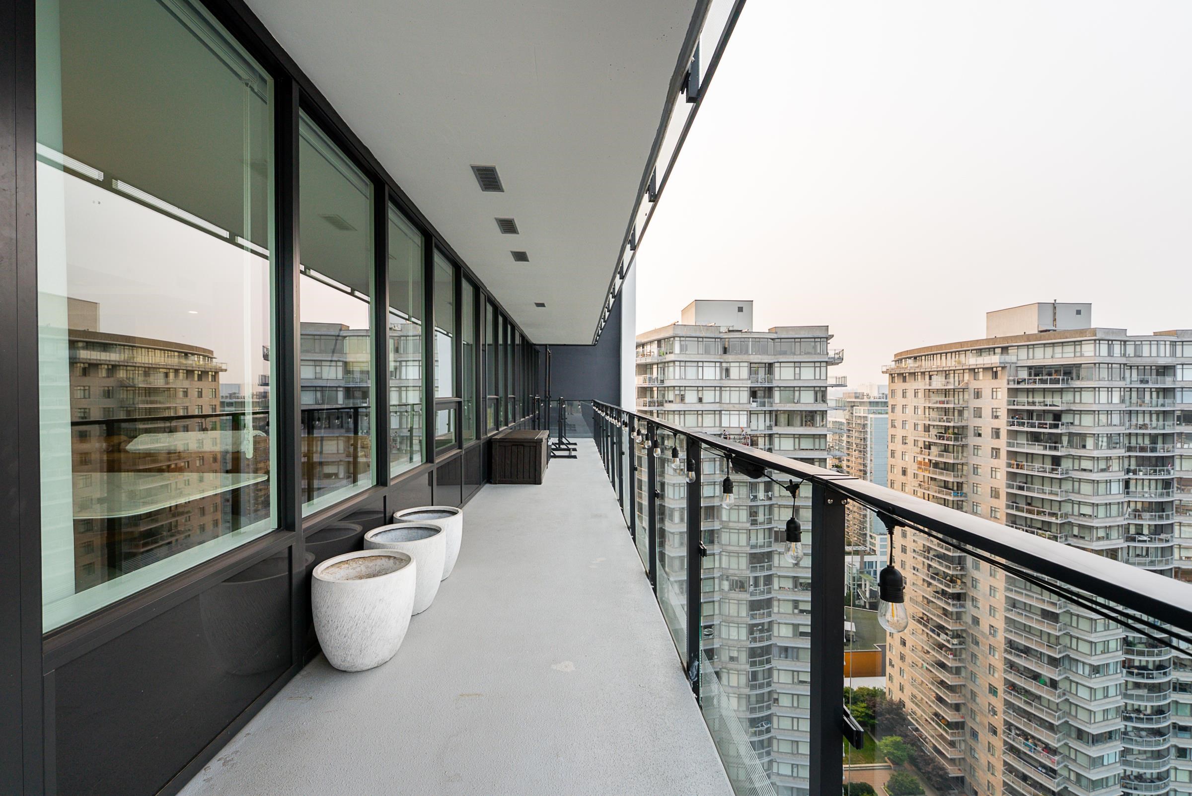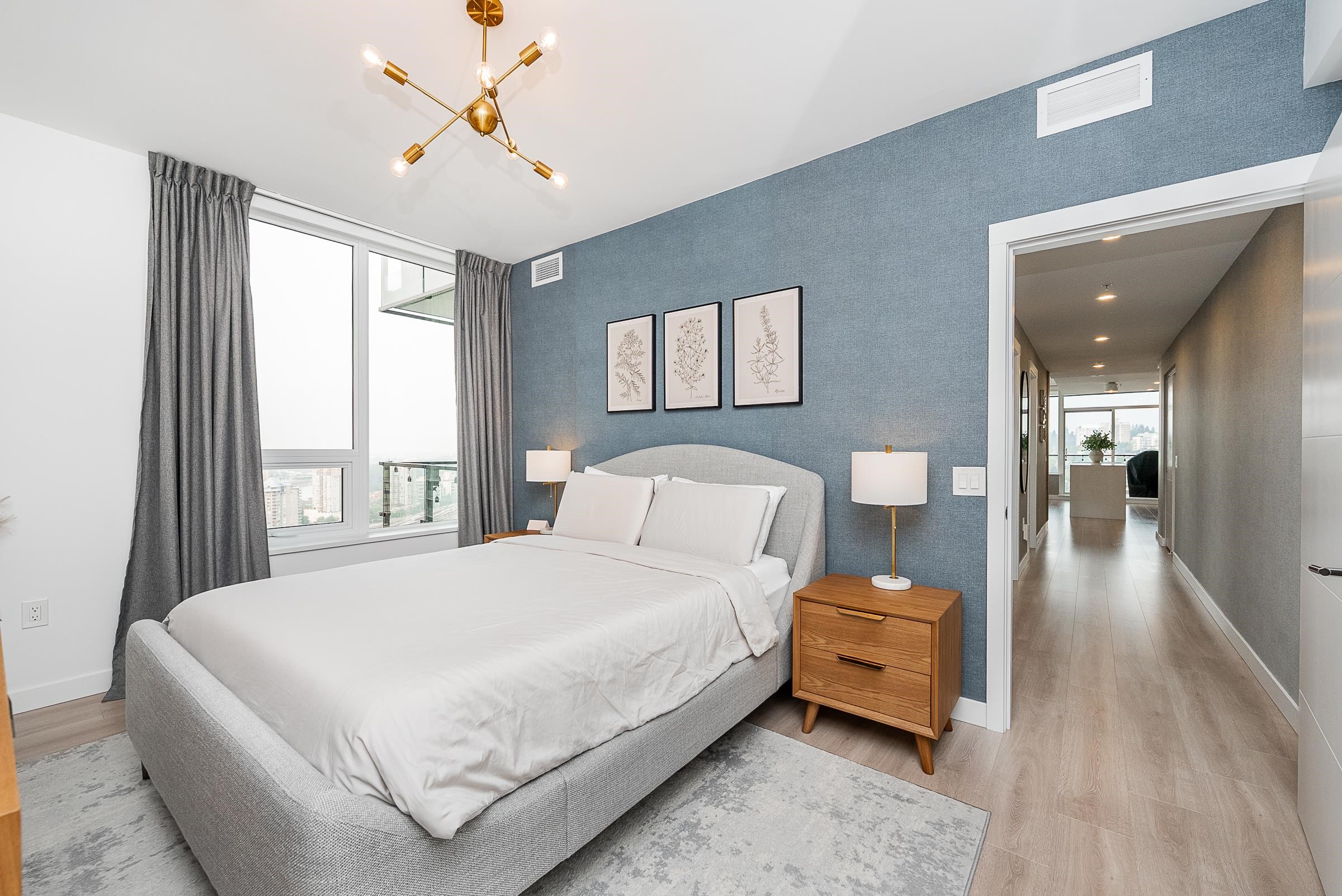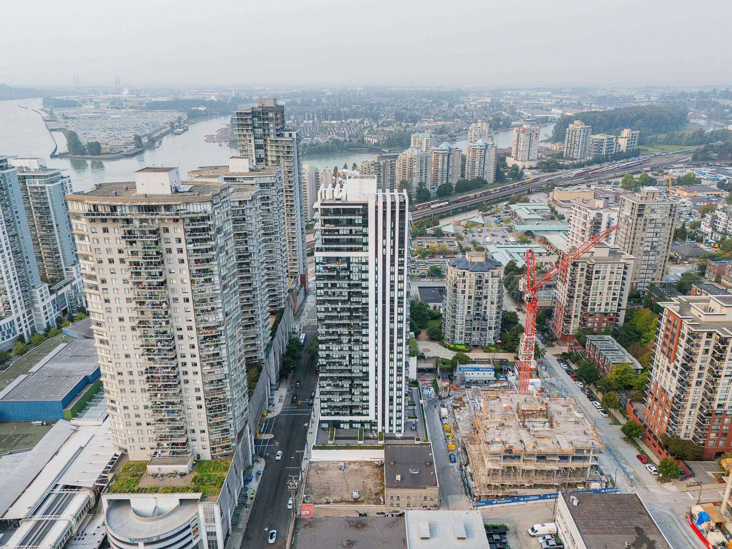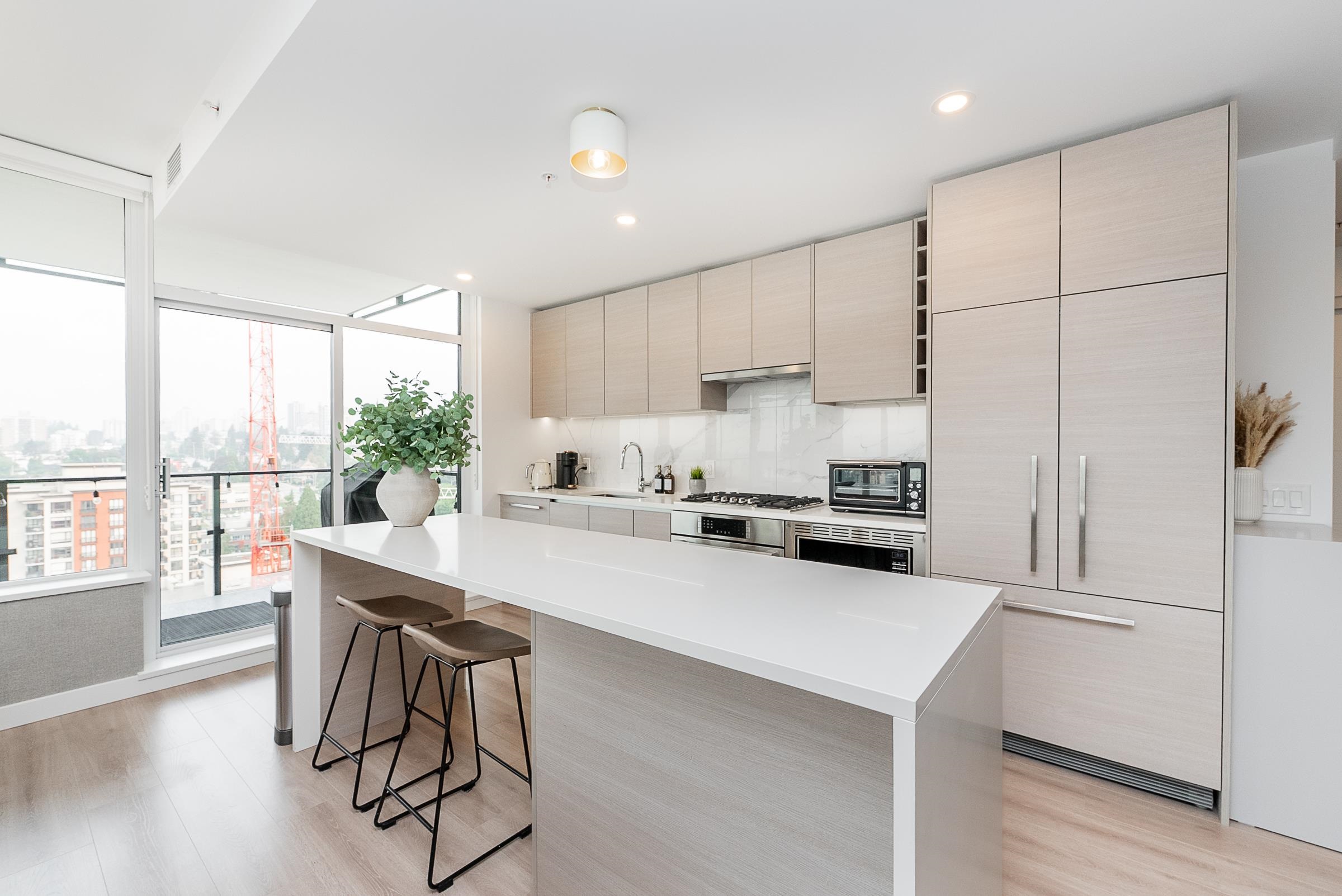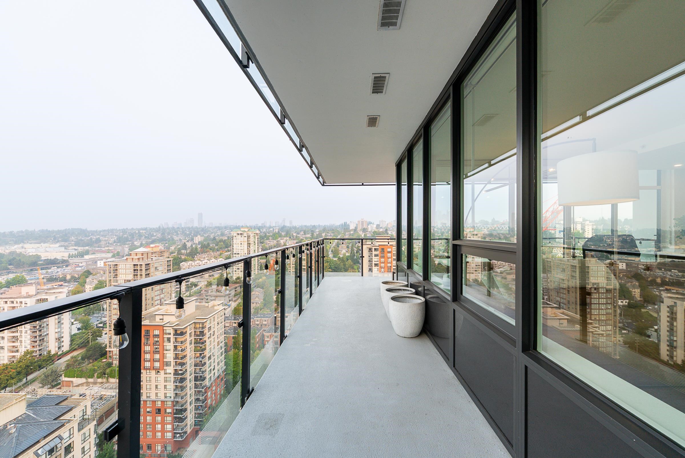 Sky-high luxury living at Ovation, in the heart of downtown New Westminster - NO GST! This beautifully updated 3 bed, 2 bath residence features 2 side-by-side parking stalls including an EV charger, 3 storage lockers, and 1245 sq/ft of luxurious living space. Incredible open layout, A/C, and breathtaking views through the oversized windows. The 458 square foot wrap-around balcony is perfect for entertaining, or morning coffee as the sun comes up. The gourmet kitchen offers a sleek design, integrated applian...
