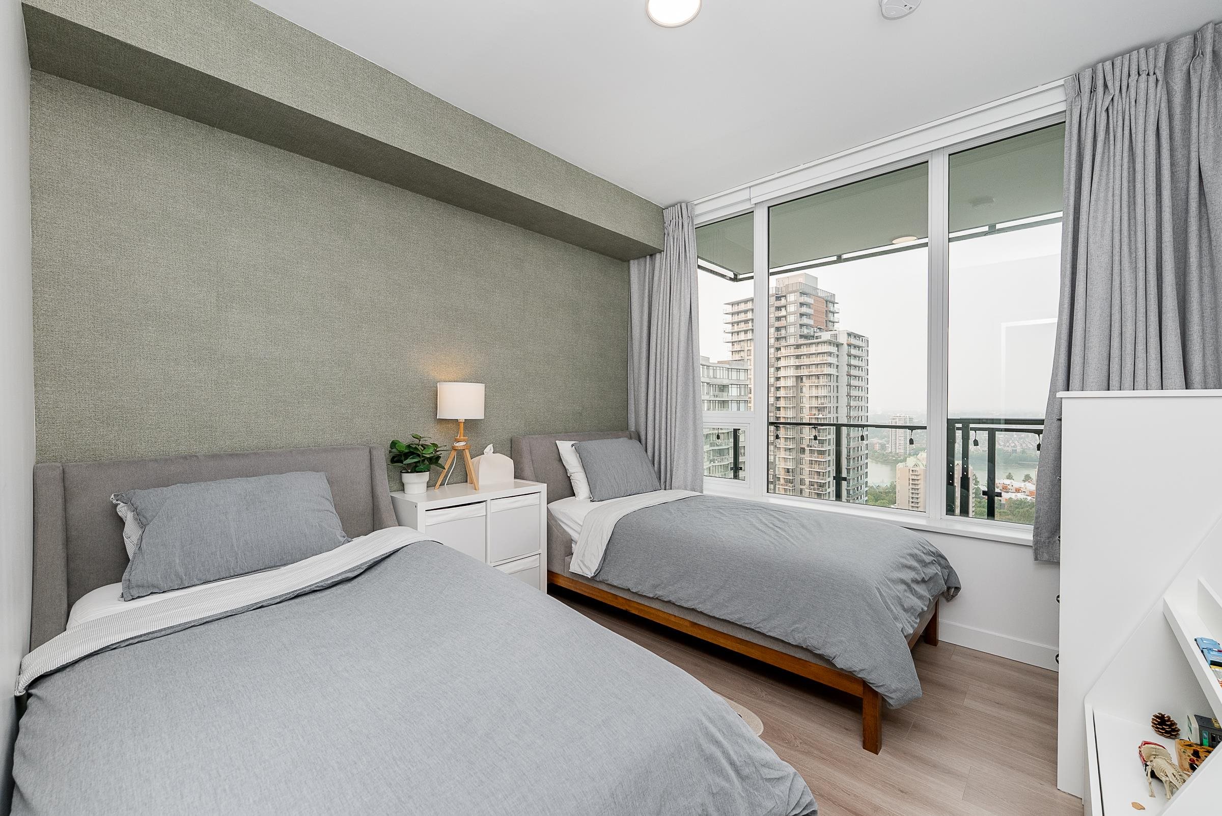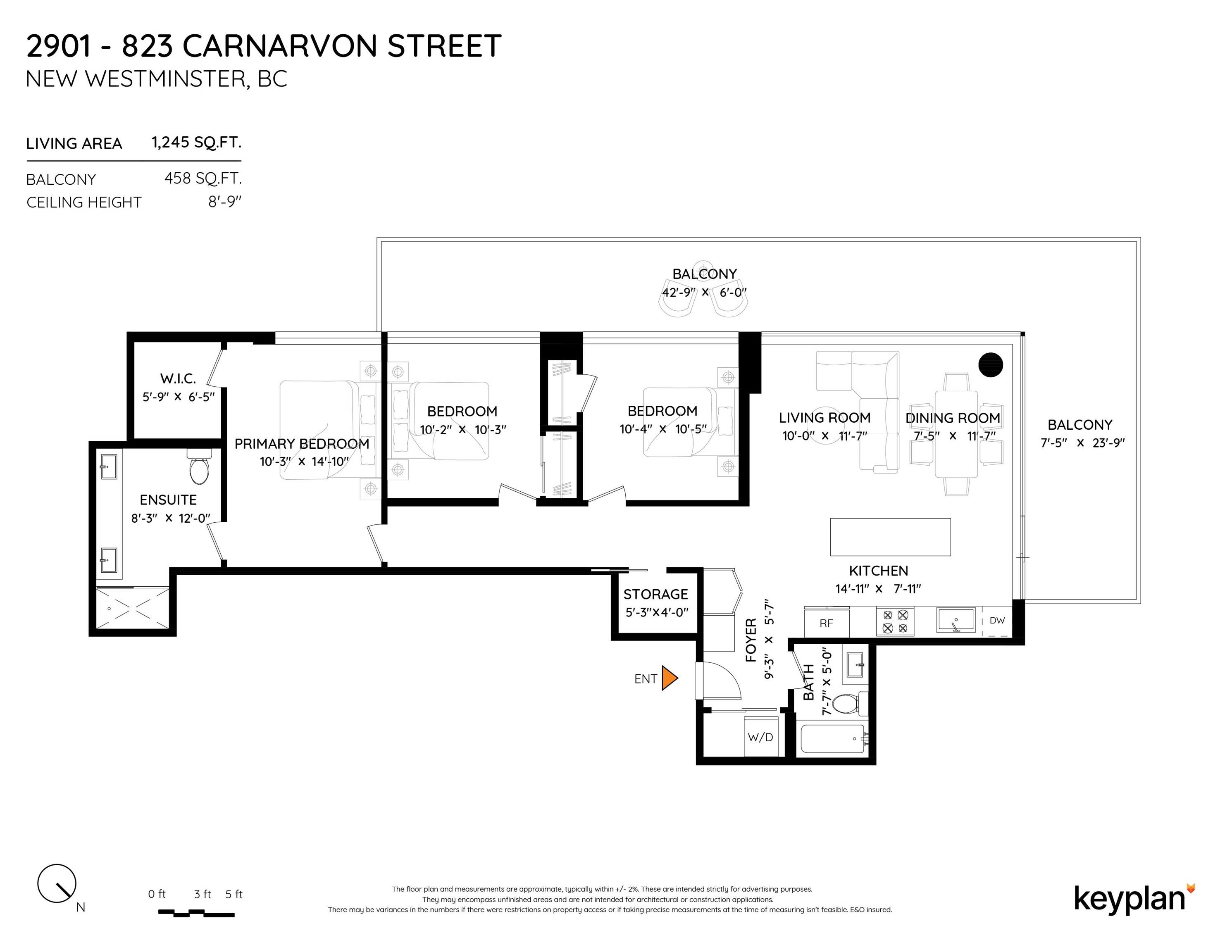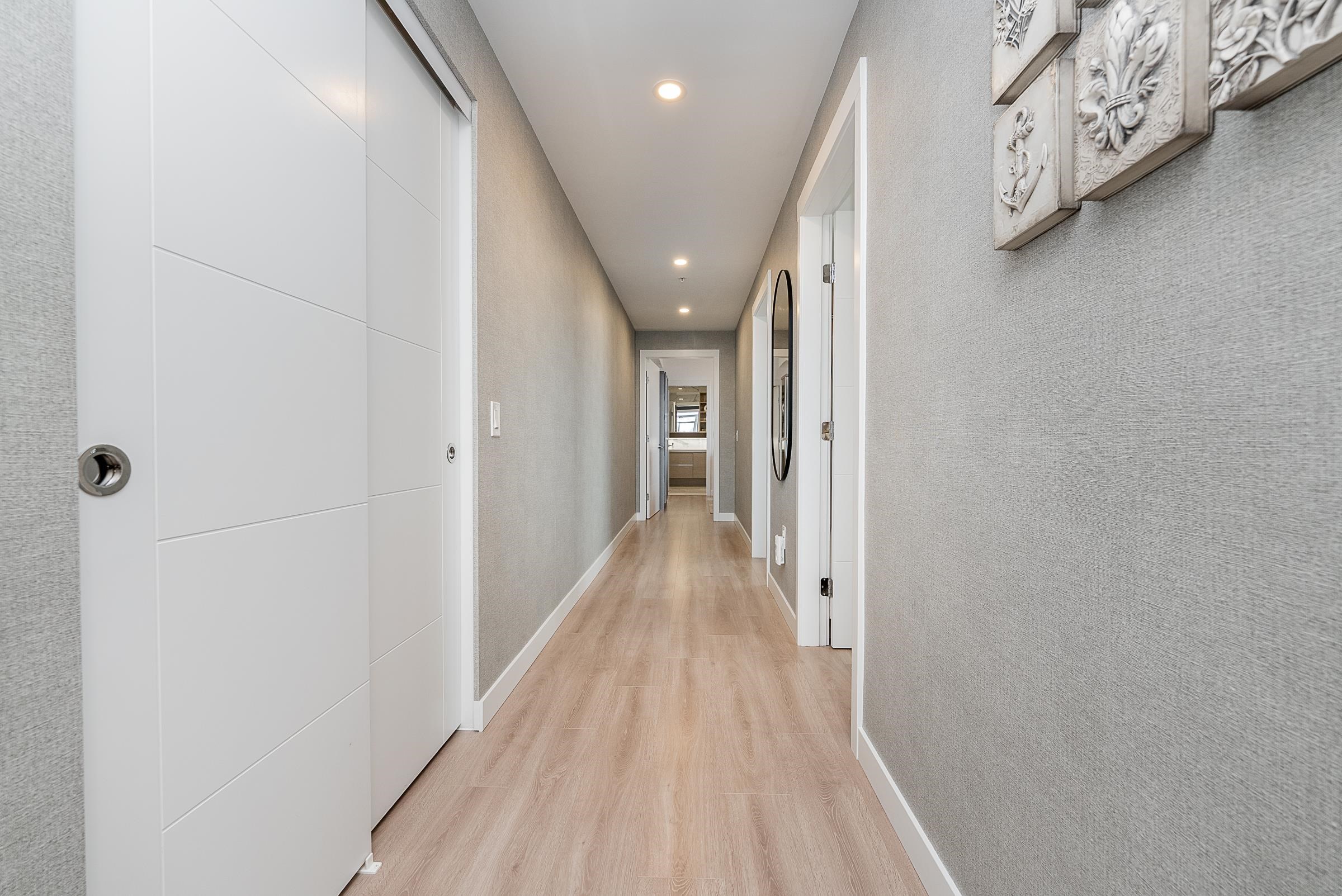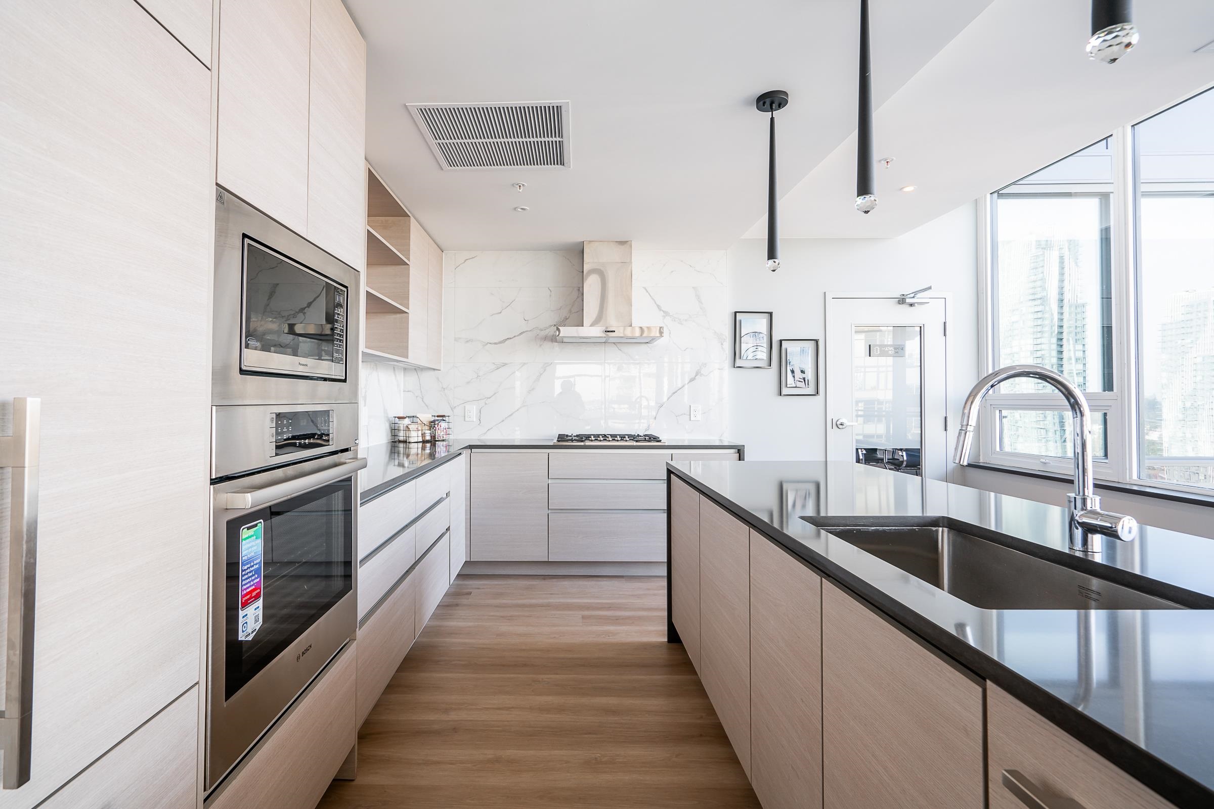 Sky-high luxury living at Ovation, in the heart of downtown New Westminster - NO GST! This beautifully updated 3 bed, 2 bath residence features 2 side-by-side parking stalls including an EV charger, 3 storage lockers, and 1245 sq/ft of luxurious living space. Incredible open layout, A/C, and breathtaking views through the oversized windows. The 458 square foot wrap-around balcony is perfect for entertaining, or morning coffee as the sun comes up. The gourmet kitchen offers a sleek design, integrated applian...