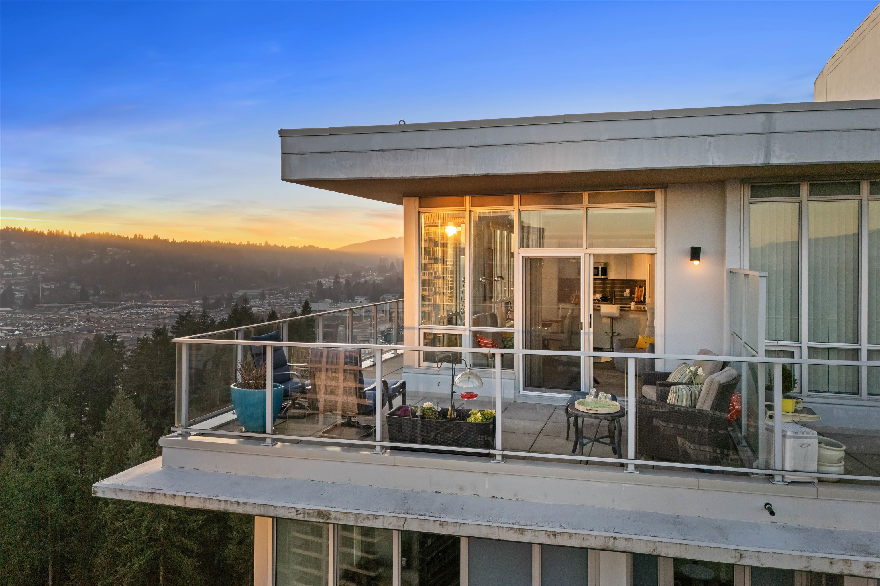Exclusive Top-Floor Penthouse with an over 400sq. ft. wrap-around balcony offering south & east exposure & breathtaking sunrise views from the Golden Ears Mt. to Mt. Baker, the Fraser River, Port Mann Bridge, & SFU Burnaby Mt. This residence features, A/C, gourmet kitchen, gas stove & full Bosch appliance package, engineered hardwood flooring, 2 bdrms, 2 bathrooms plus den, separate laundry room, & ample storage. Includes 2 parking stalls & 2 storage lockers. Enjoy access to an exclusive private community r...