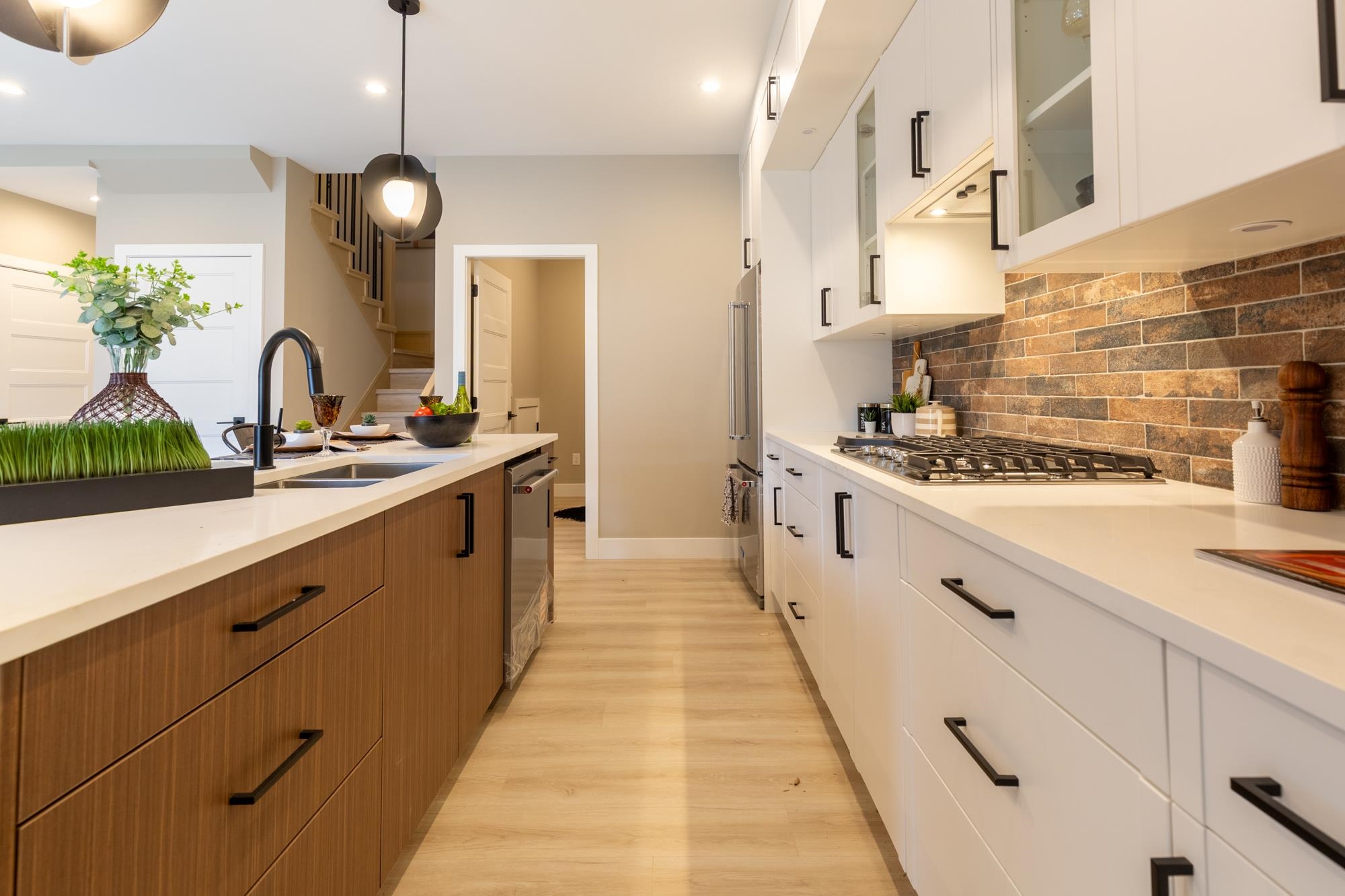 corner unit offering a bright open living space. Built by renowned builder Noura Homes, this high-quality fourplex is truly one of a kind. The thoughtful layout creates the feel of a cozy detached home with large windows that bring in plenty of natural light. Main floor features a den and extra storage-perfect for a home office or flex space. Upstairs enjoy a spacious primary bedroom with ensuite featuring double sinks & spa-inspired shower Exterior highlights include nearly 500 sq ft private yard, BBQ outl...