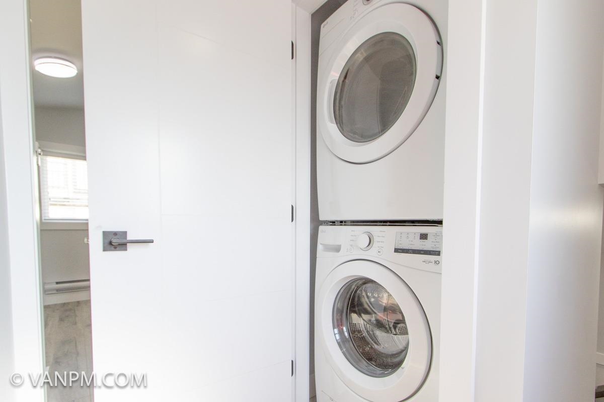 Modern 2-level laneway house built in 2023 offering approx. 700 sqft of functional living space. Features 2 bedrooms (1 on main, 1 upstairs), 1.5 bathrooms, in-suite laundry, and a private standalone setting behind the main home. Bright interior with laminate and tile flooring throughout. Includes 1 parking stall beside the laneway with Level 1 EV charging possible and a small outdoor space. Convenient location with bus stop across the street. Tenant pays electricity and internet. No dishwasher, no A/C, no ...