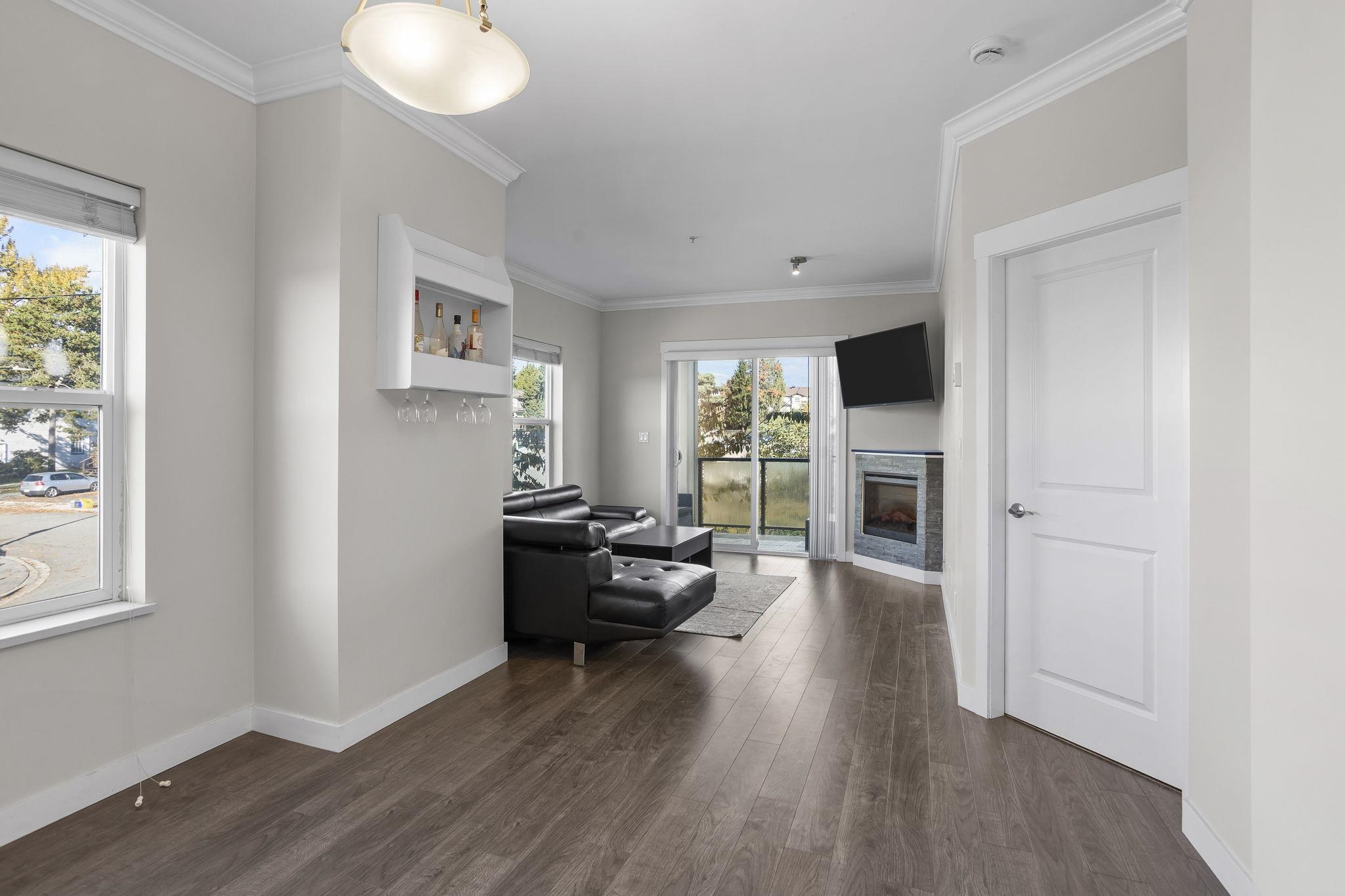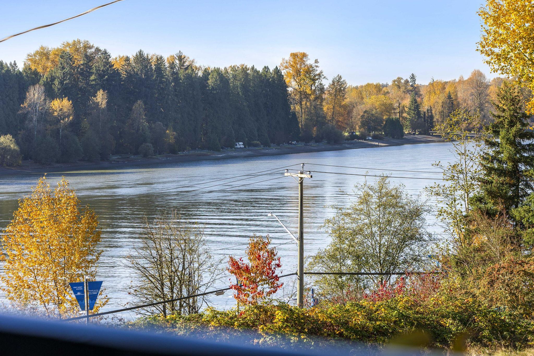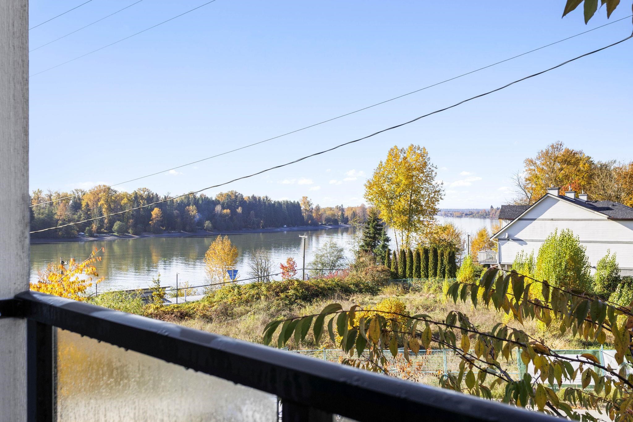 VIEWS! This bright corner unit offers nearly 700 sqft of modern living with sweeping views of the Fraser River. Filled with natural light, this thoughtfully designed home features an open-concept kitchen with white cabinetry, an upgraded backsplash, stainless steel appliances & bar seating for 3, plus a separate dining area- perfect for hosting friends or a work from home space! The inviting living room is complete with a cozy fireplace and sliding doors to a covered patio you can enjoy year-round! The spac...