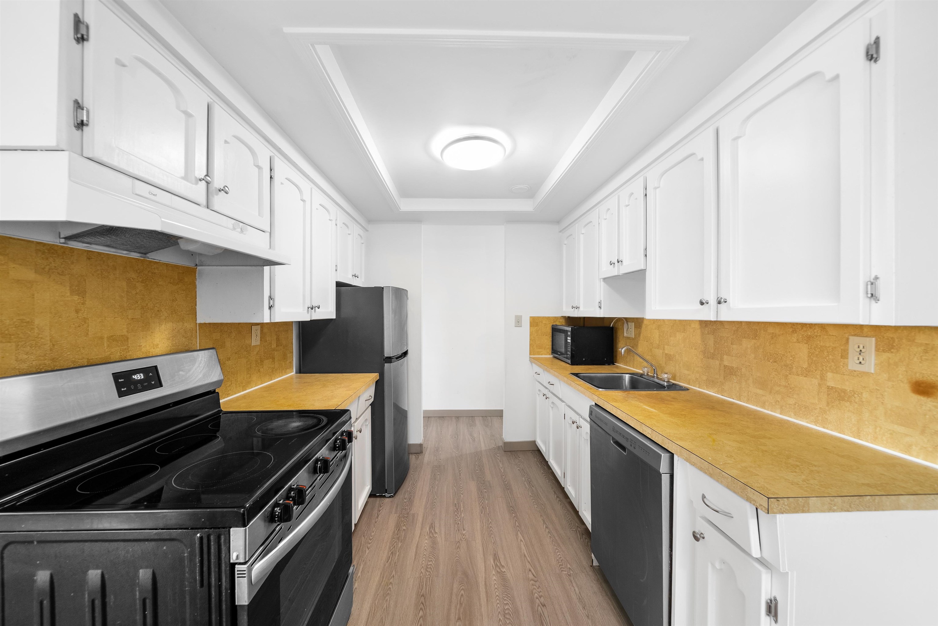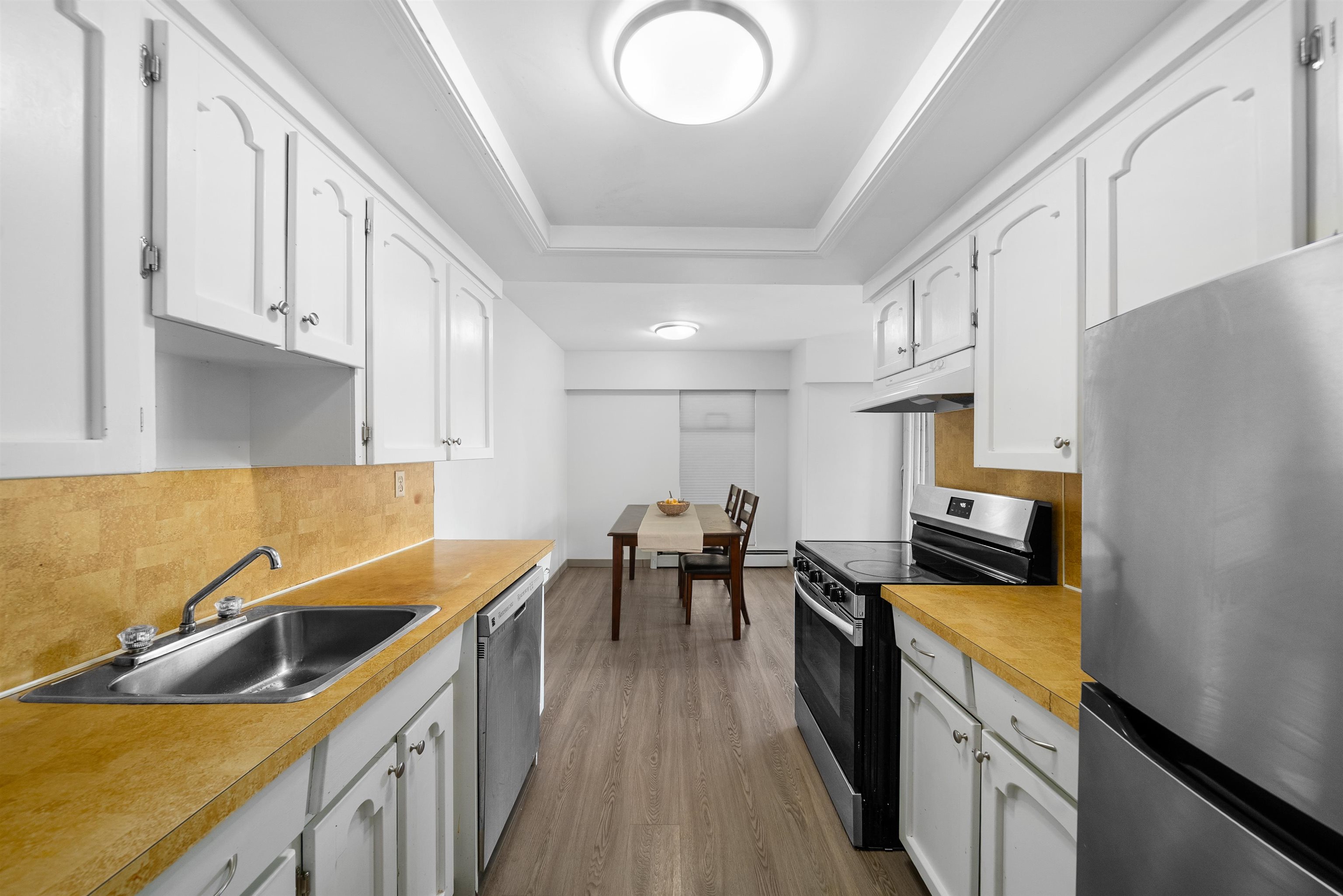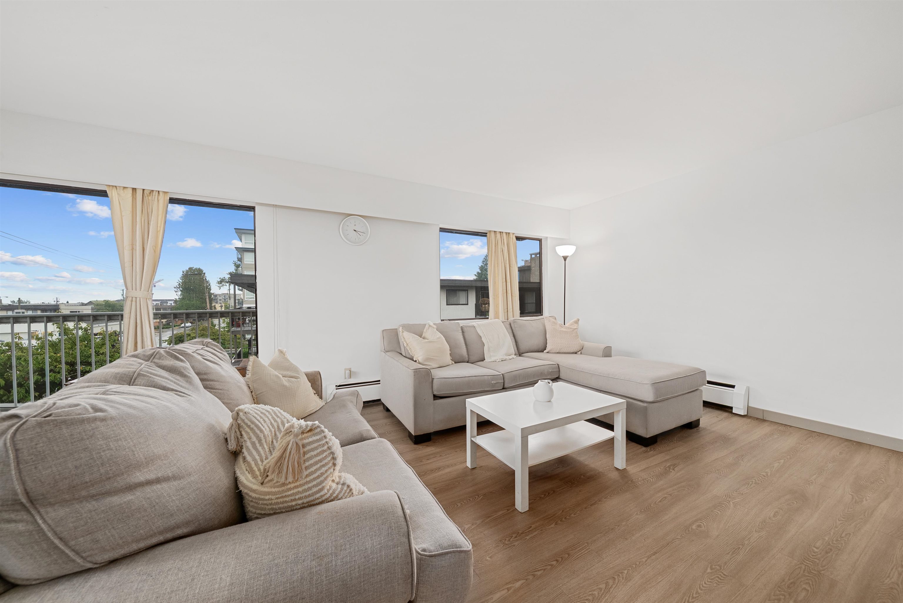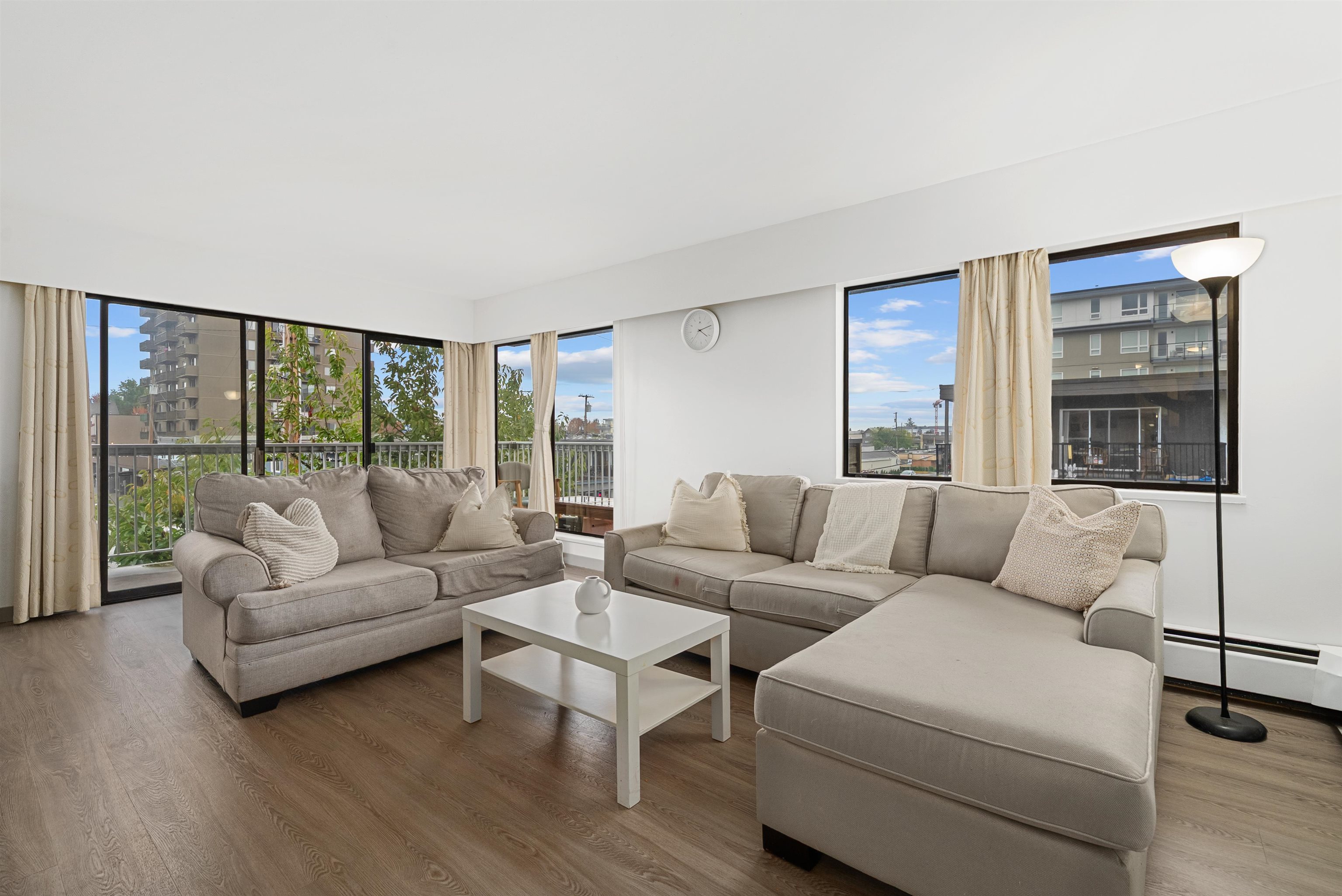 Welcome to this spacious top-floor corner unit featuring 2 bedrooms + 2 bathrooms in the heart of Maple Ridge. With brand new laminate flooring throughout, this home offers a modern and fresh feel. The open-concept layout is flooded with natural light from large windows and a rare wrap-around balcony, perfect for enjoying morning coffee or evening sunsets. Both bedrooms are generously sized, including a primary with ensuite. Located steps away from grocery stores, doctors’ offices, restaurants, and all majo...