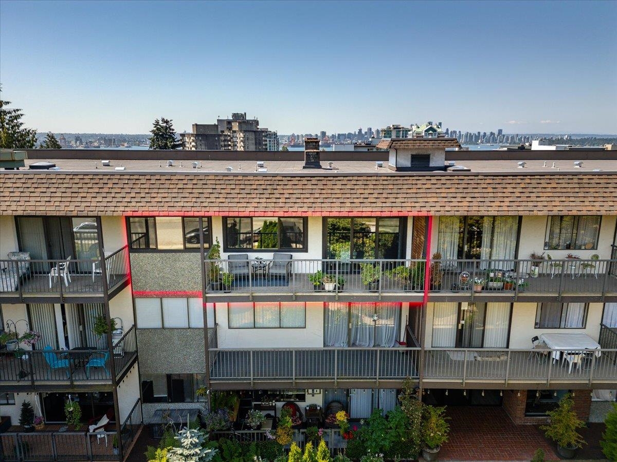 Experience the best of Lower Lonsdale living at Winchester Estates! This beautifully maintained top-floor 2-bed, 1-bath home offers 944 sqft of bright, open space with a peaceful outlook. Enjoy seamless flow from the spacious living and dining areas to a private 130 sqft balcony—perfect for relaxing or entertaining. Move-in ready with double-glazed windows, updated flooring, and a refreshed bathroom. Steps to The Shipyards, cafes, and shops. Includes parking and storage. Winchester Estates is one of the Nor...