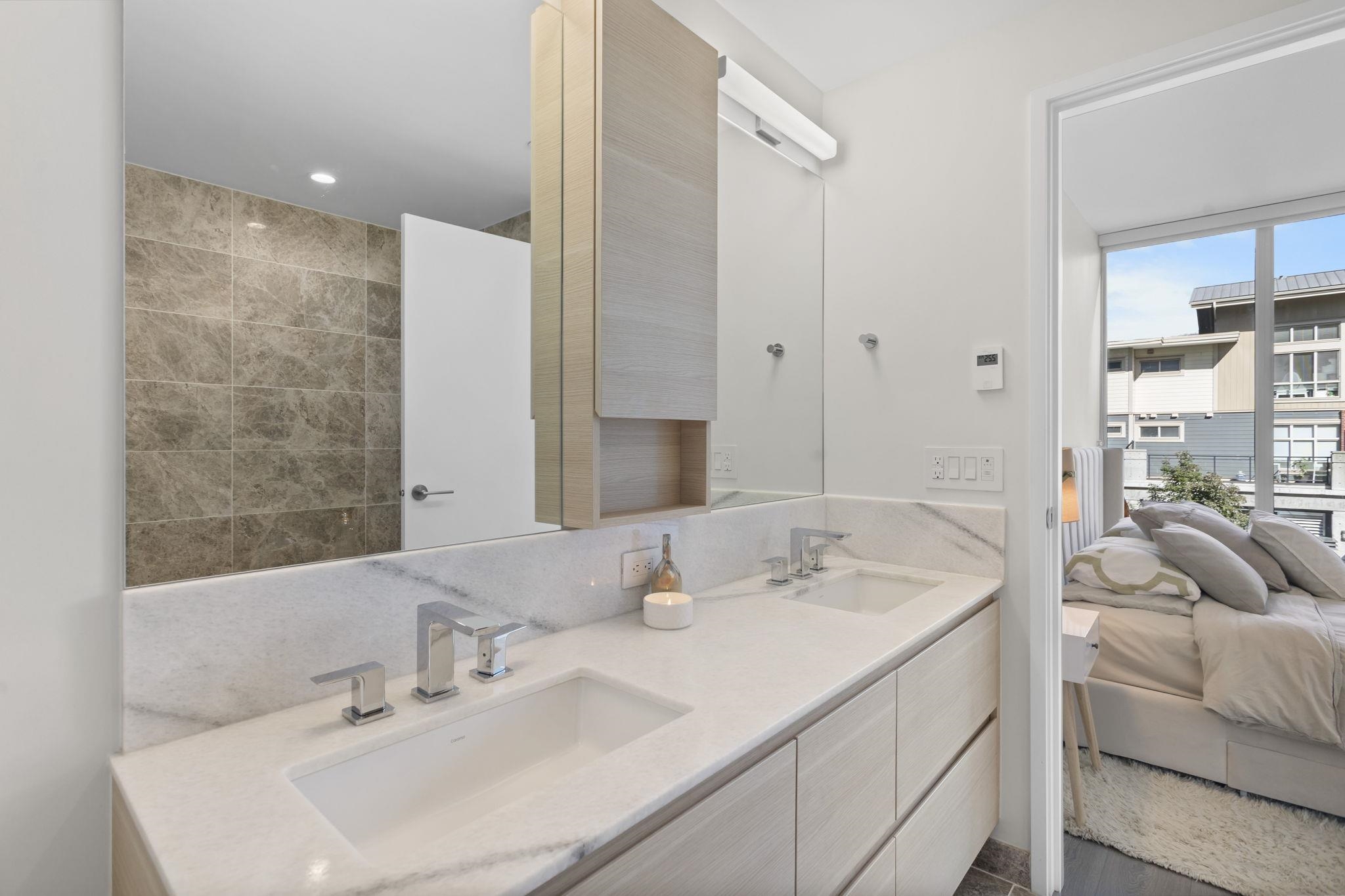 LIKE NEW | 2 BED + LARGE DEN | 2 PARKING | LARGE STORAGE! Perfect for downsizers or anyone seeking resort luxury! This concrete home lets you skip the elevator-just head downstairs to Suter Brook Village for groceries, dining & more or a short walk to Rocky Point, SkyTrain & Newport Village. Inside, enjoy high-end finishings: A/C, an entertainer’s dream kitchen & spa-inspired bathrooms. With 2 spacious bedrooms + a den that functions as a 3rd bdrm, this layout is versatile for all stages in one of Port Mood...