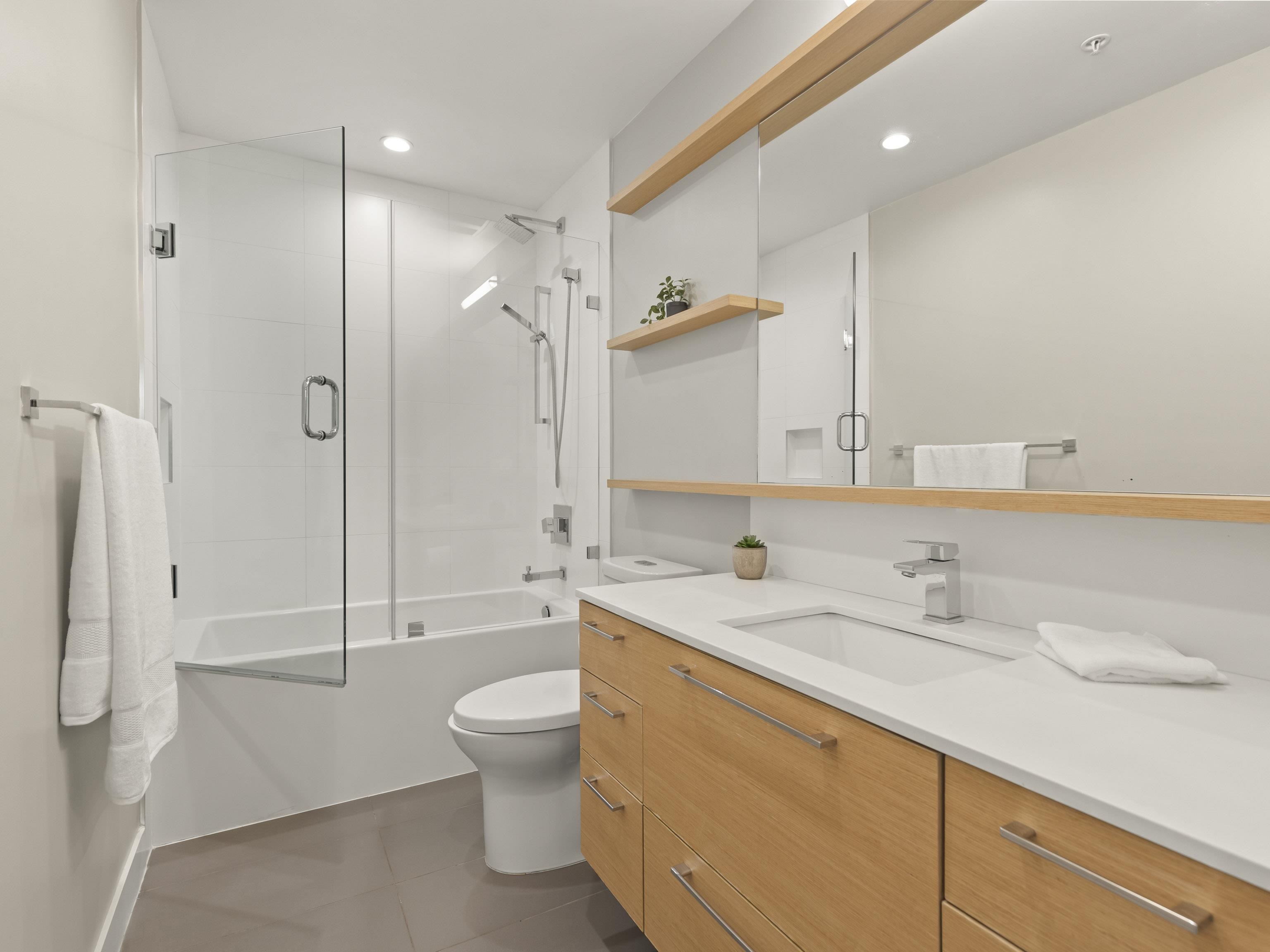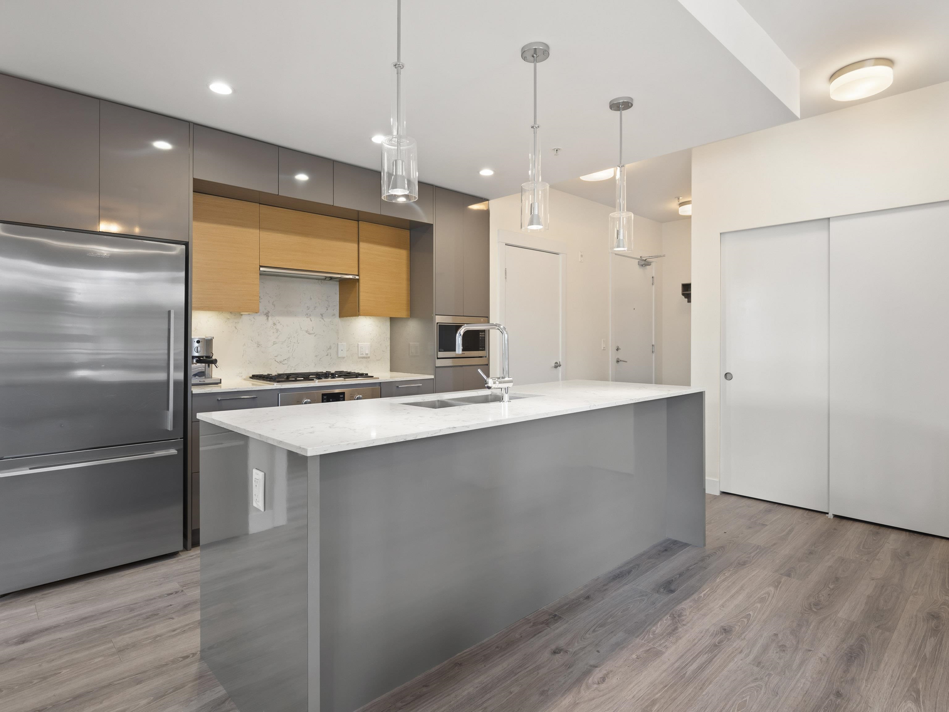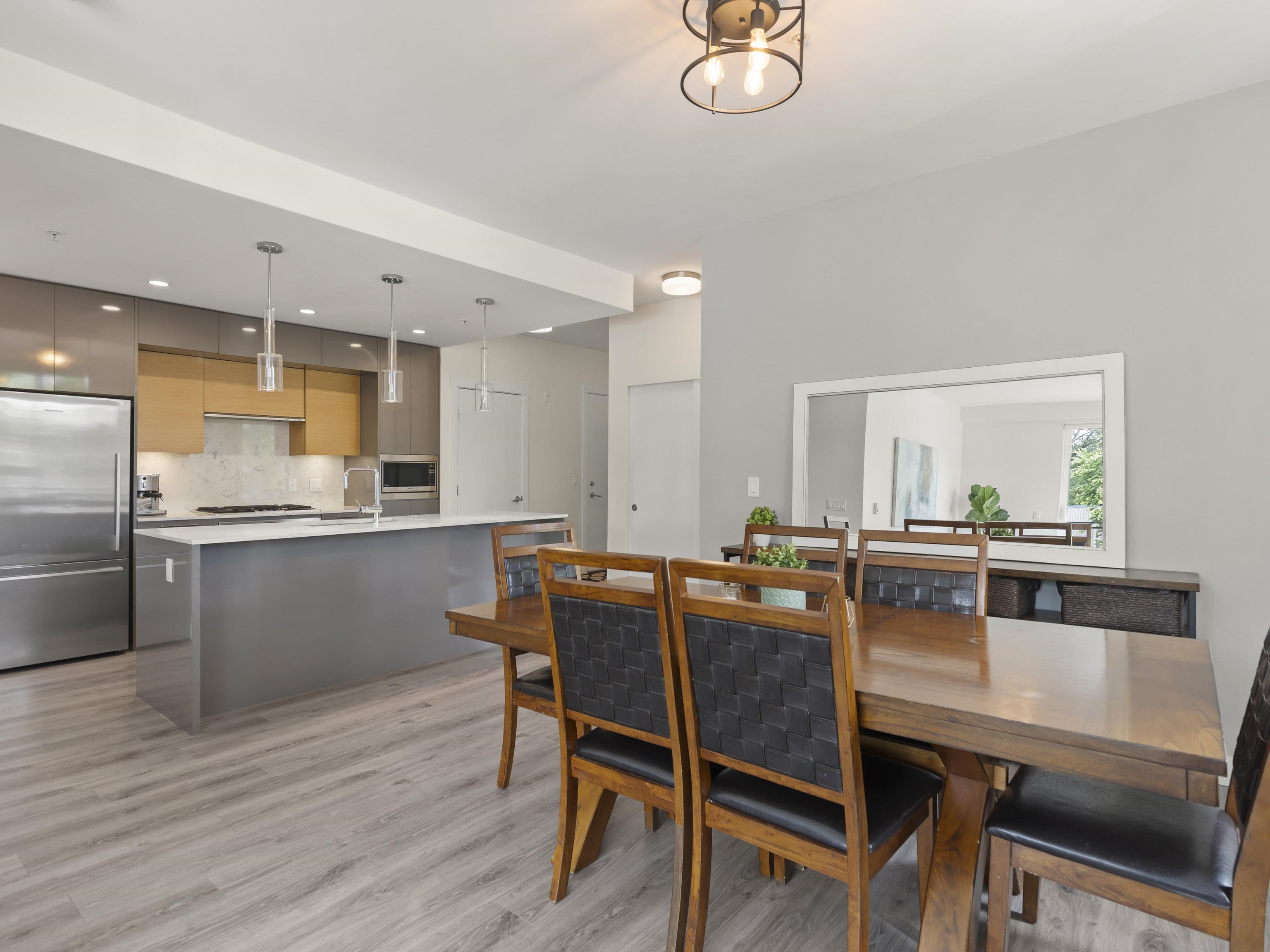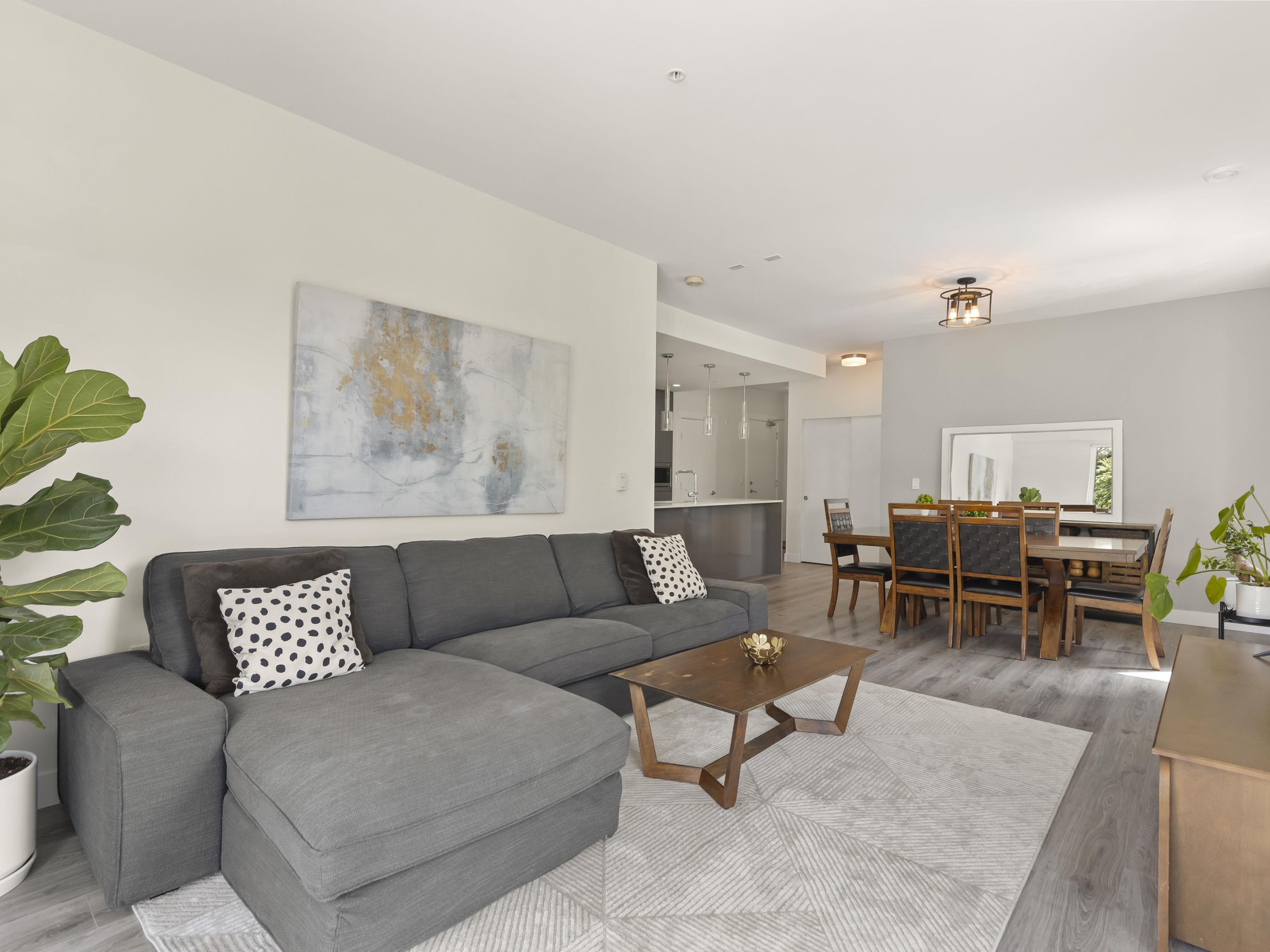Walter's Place is the place to be in Lynn Valley! Floor to ceiling windows makes this 3 bed + 2 bath corner unit bright & welcoming. Fantastic layout- with a great flow from the foyer to the modern kitchen, lots of space for big family dinners in the dining room, & enjoy mountain views from your living room. 2 outdoor spaces- a balcony runs the length of the living space and then a private balcony off the main bedroom. Insuite Laundry, good closet space, incl walk through closet to ensuite. Well run & worry...