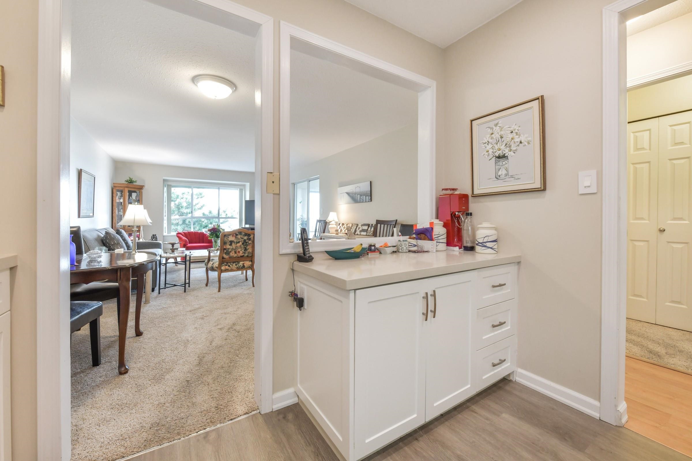 The Carrington provides residents with a harmonious blend of peaceful living and breathtaking ocean vistas. The updated kitchen boasts new cabinetry and appliances, creating a contemporary and functional space for meal preparation. The residence includes two full bathrooms, ensuring comfort and convenience for both residents and guests. The generous living and dining area offers the perfect environment for relaxation or entertaining. An enclosed sundeck, equipped with heating, allows residents to enjoy ocea...