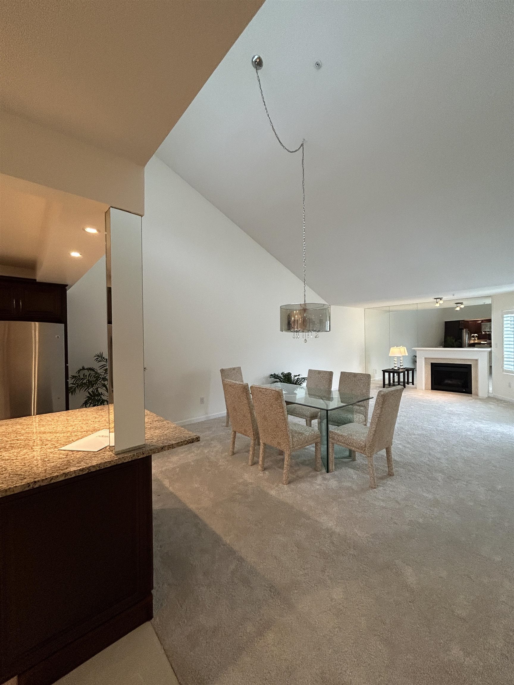 Top floor luxury 2 bedroom, 2 full bathroom condo. Spacious, bright & quiet, dramatic vaulted ceiling in the living and dining area. Nearly 1,400 sq/ft of space with large open kitchen, granite counters, gas fireplace, lots of little extras like a window at the kitchen sink, onus in-suite laundry room, a practical layout w/ample storage, phantom hidden screen doors, integrated blinds in the doors, a naturally lit secure garage, and its now vacant and ready to go with new carpet and paint. You will love the ...