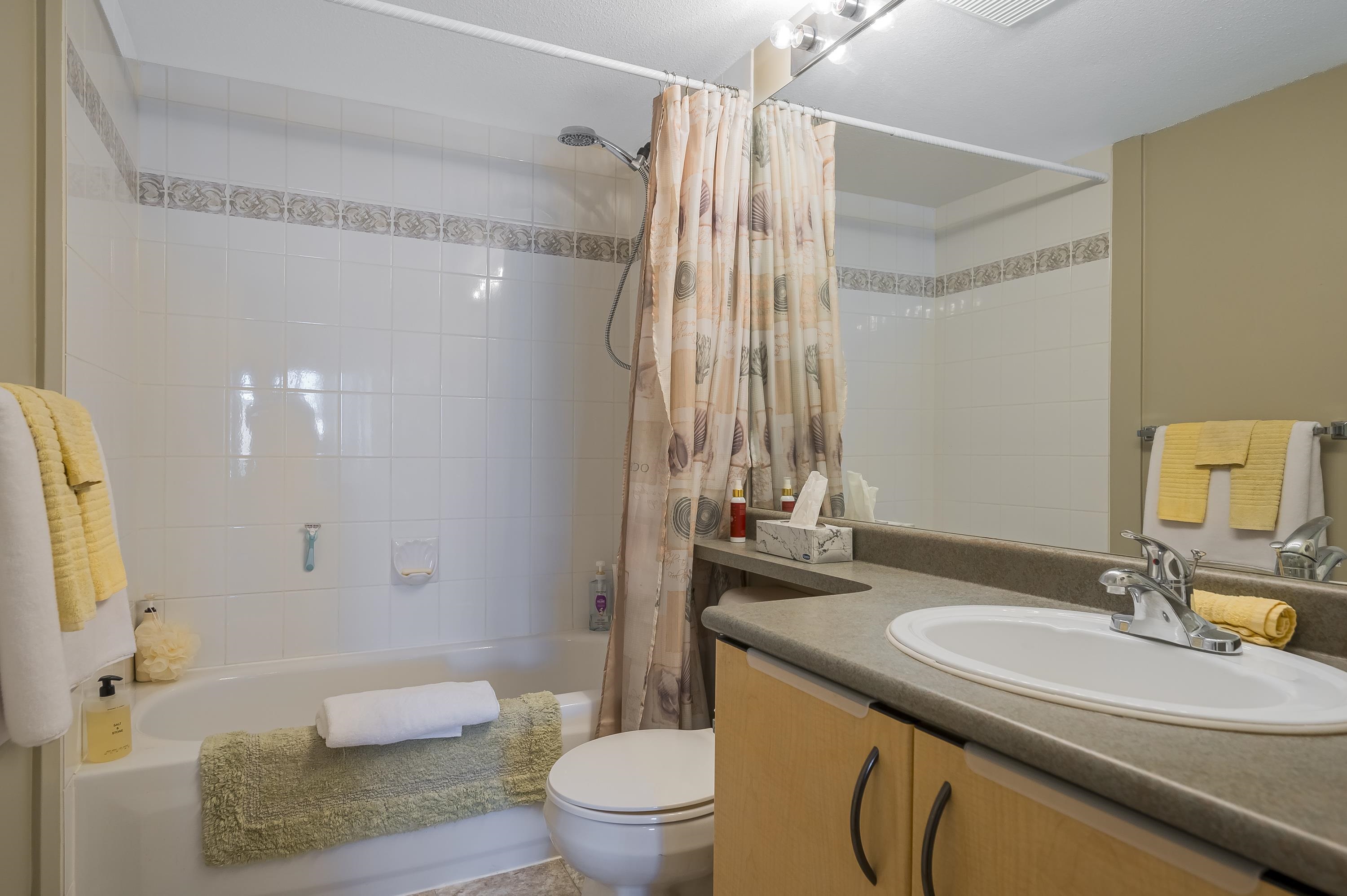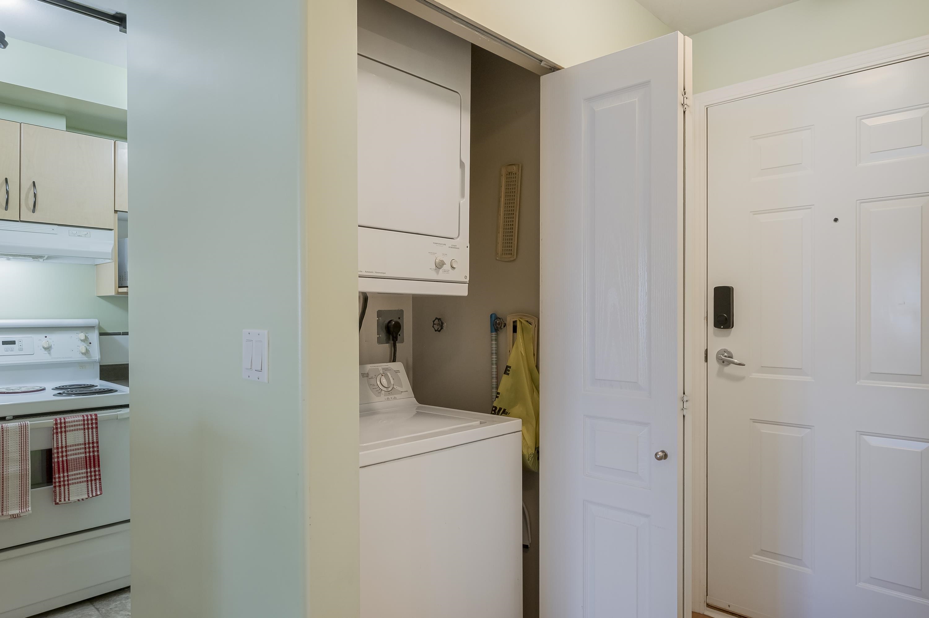 Welcome to The Bentley! Spacious 1 bed 1 bath condo with well-appointed kitchen, plenty of storage and counter space, dishwasher and in suite laundry. Covered patio, 1 parking spot, 1 storage locker. Well-run complex, with fully equipped gym, entertain guests in the common room, take advantage of the guest suite, gated courtyard and secured underground parking. Centrally located with everything you need just a short walk away. From a variety of shops and restaurants to grocery stores and recreational faci...
