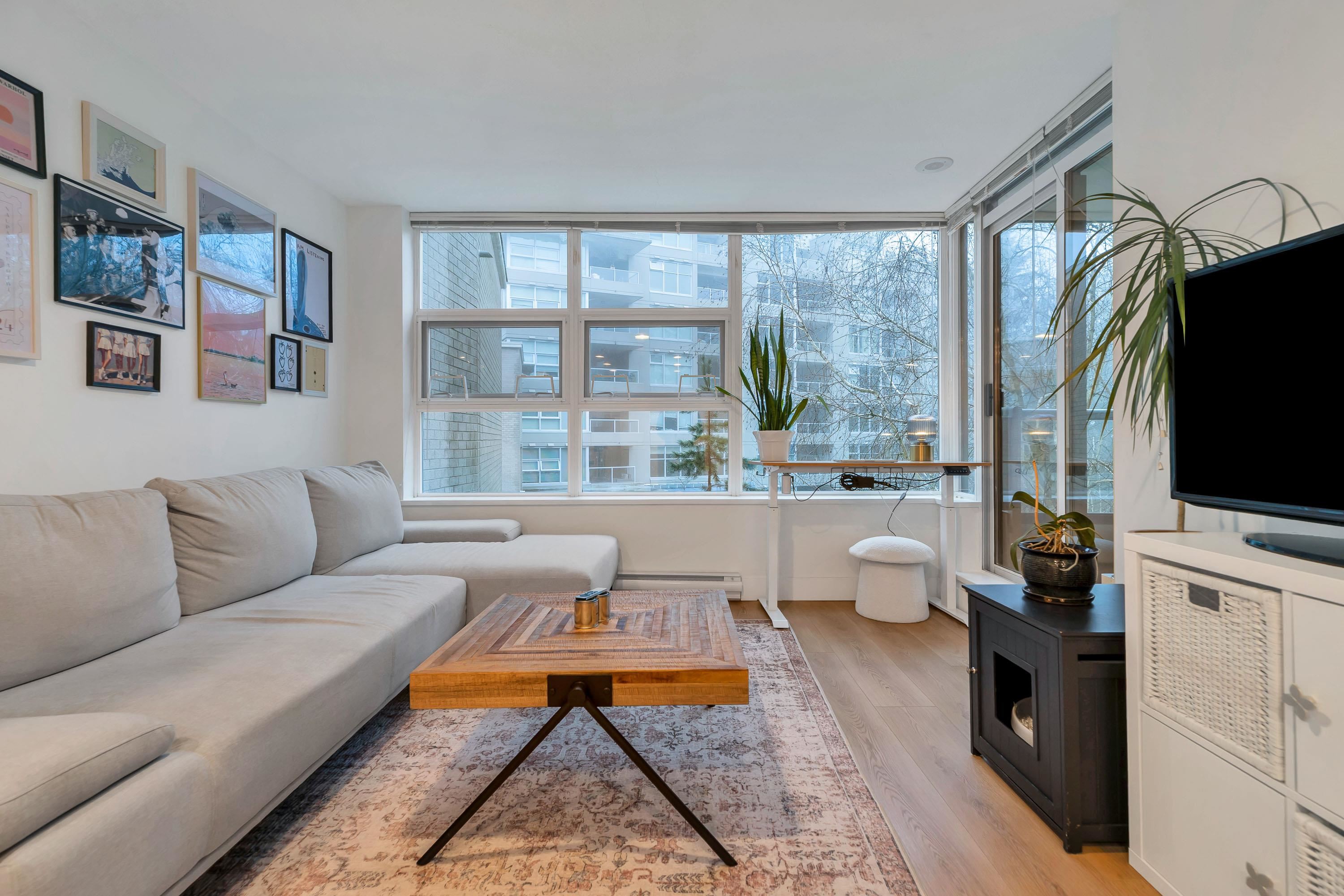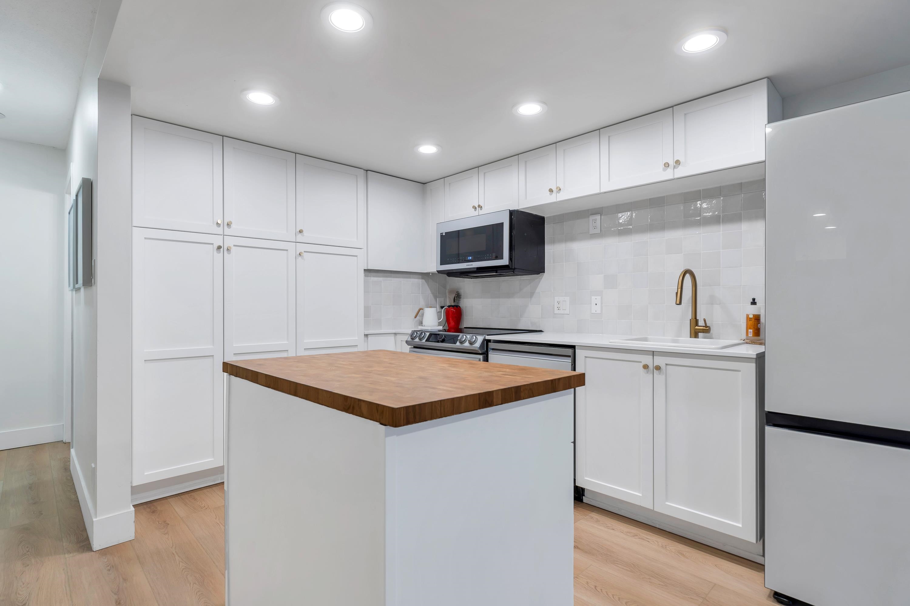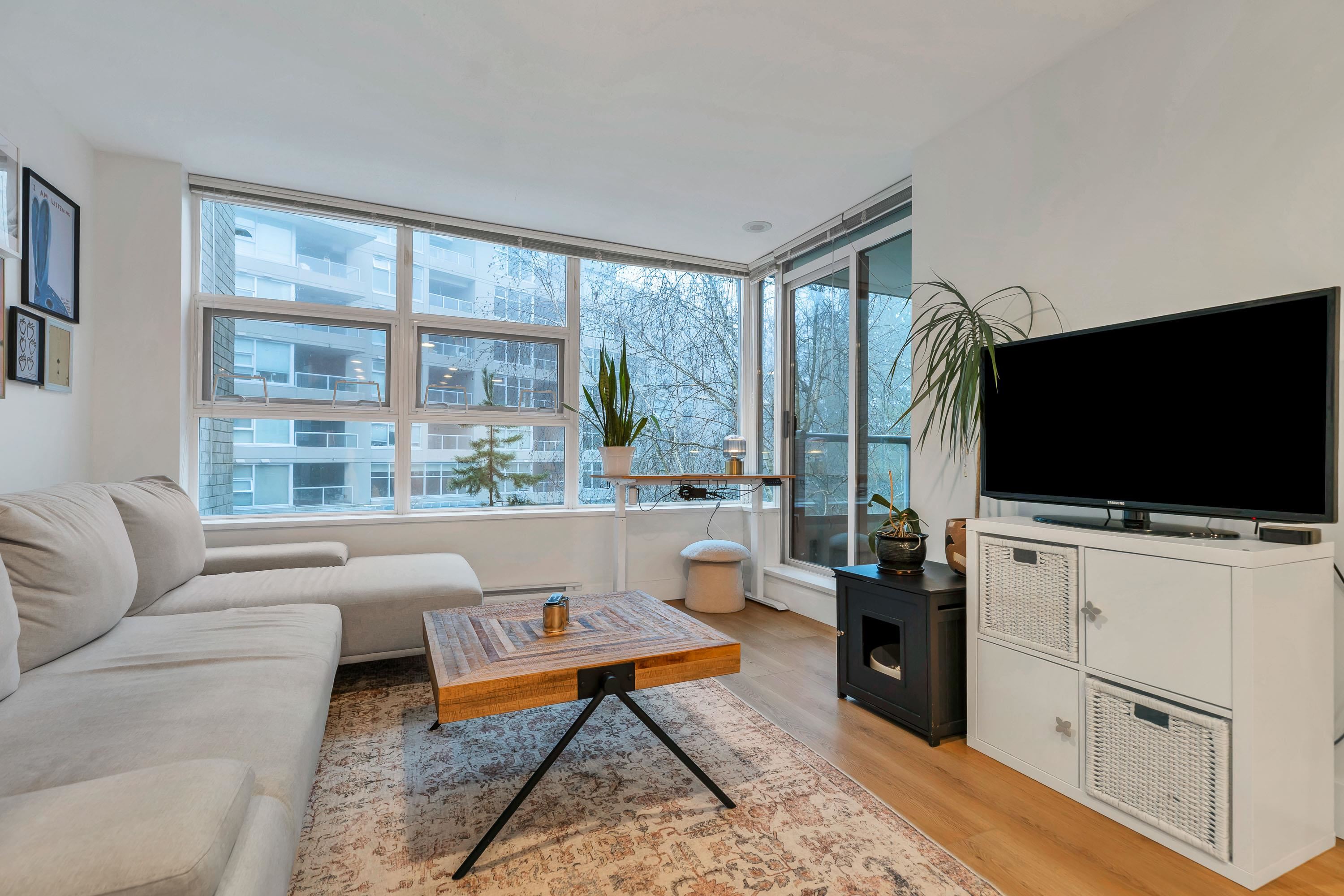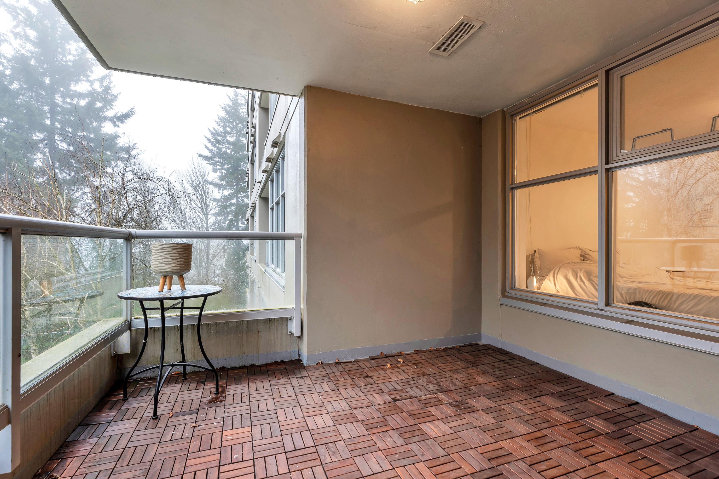 Great value in North Burnaby. Centrally located in the Simon Fraser University District. Concrete building. Excellent investment property in high demand with strong market rents and a low vacancy rate. Imaculate condition. Modern open floor plan. NEW FLOORING. UPDATED Kitchen with breakfast bar, granite counter tops & NEW stainless steel appliances. NEW WASHER / DRYER. Extra Large covered year round deck. Great for BBQ and entertaining. Overlooks courtyard & greenspace with seasonal water views. Secure park...