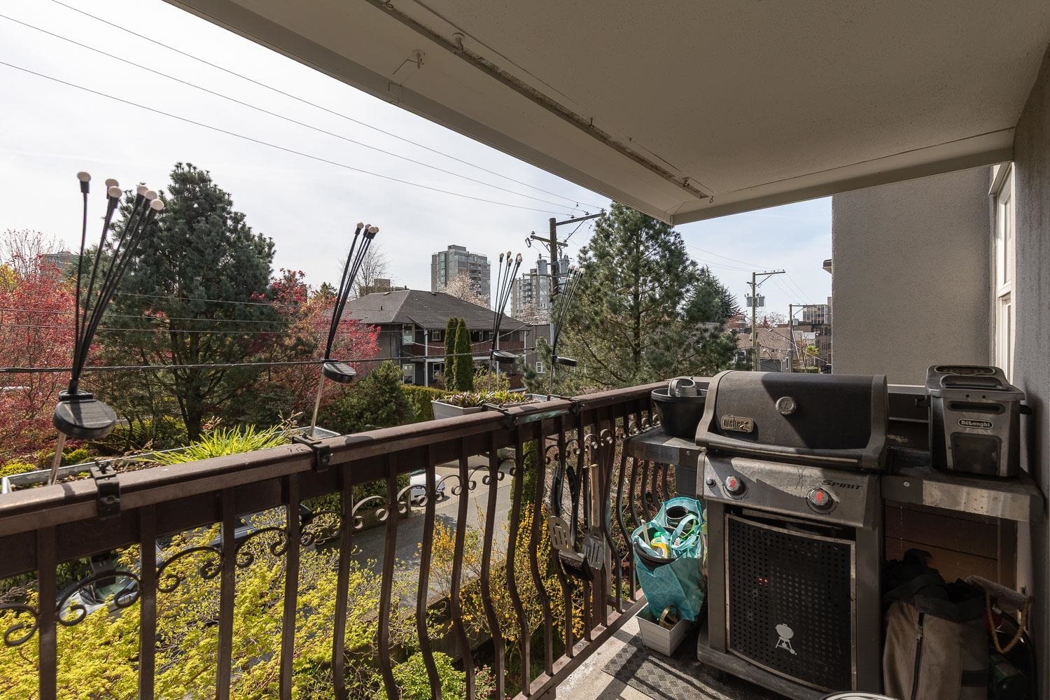 Welcome to this lovely 1 bed + den, 1 bath condo nestled in the Fairview neighbourhood on a quiet street. A very well-maintained building that is fully rain screened and new windows and doors (2023)This top-floor unit offers private & quiet home with tons of natural light from its sunny south-facing balcony. Step inside to a thoughtfully renovated space with modern touches throughout. The kitchen, completely redone in 2015, boasts a stunning quartzite waterfall countertop, high-end appliances and ample cabi...
