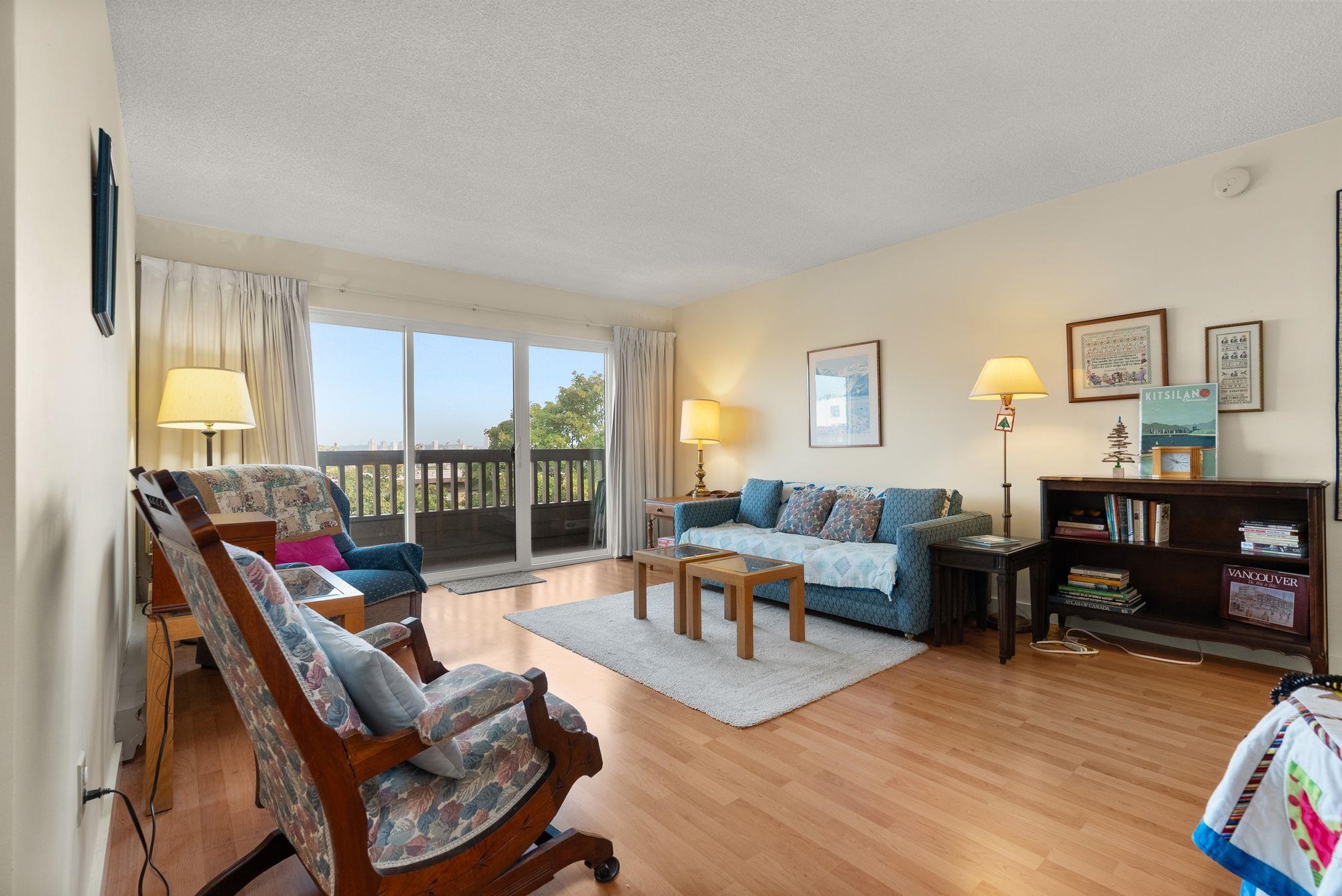 Views of the water, city and mountains! Step out on to the wrap around patio of this north-facing, north of fourth apartment in the heart of Kits! This location cannot be beat! Stroll up to all the shops, restaurants, cafes and fun of 4th Ave, or walk down to Kits Beach and all that it offers. This corner unit has 745 sq ft, 1 bed and 1 bathroom ready for you to make it your own. Enjoy the view from the large living room & large bedroom to sleep and work in. A great community in this building, with free sha...