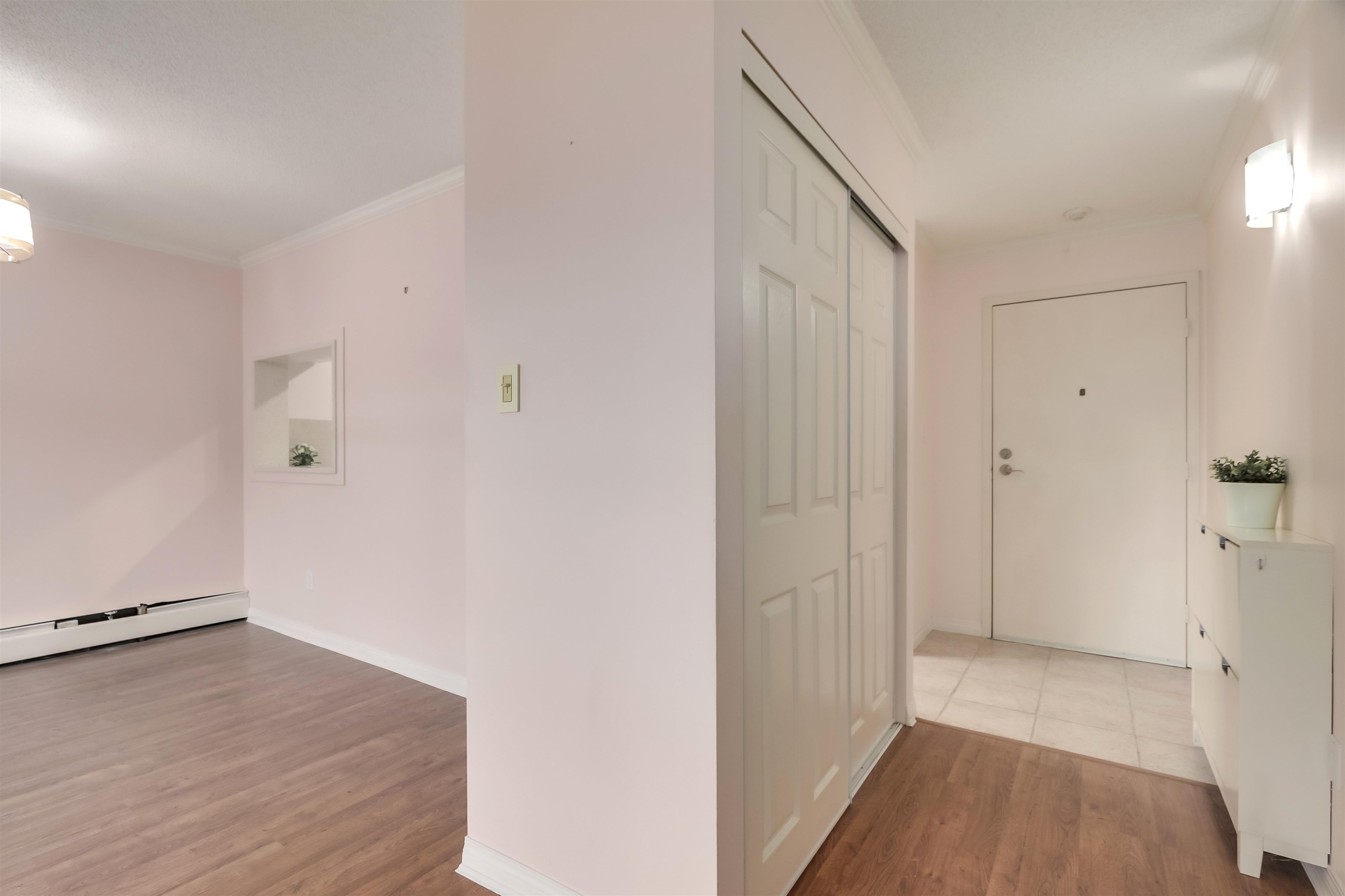 Nicely updated top-floor unit in Stornoway featuring 2 bedrooms & 2 full bathrooms. This bright home offers a sunny south exposure, filling the space with natural light. Located in a quality complex with 4 well-maintained buildings on 4 acres of beautifully landscaped grounds. The strata is proactive and well-managed, with updated elevators, new windows, and balconies. The suite features a spacious living & dining area, a new kitchen with updated countertops, S.S. appliances, laminate flooring, and an elect...