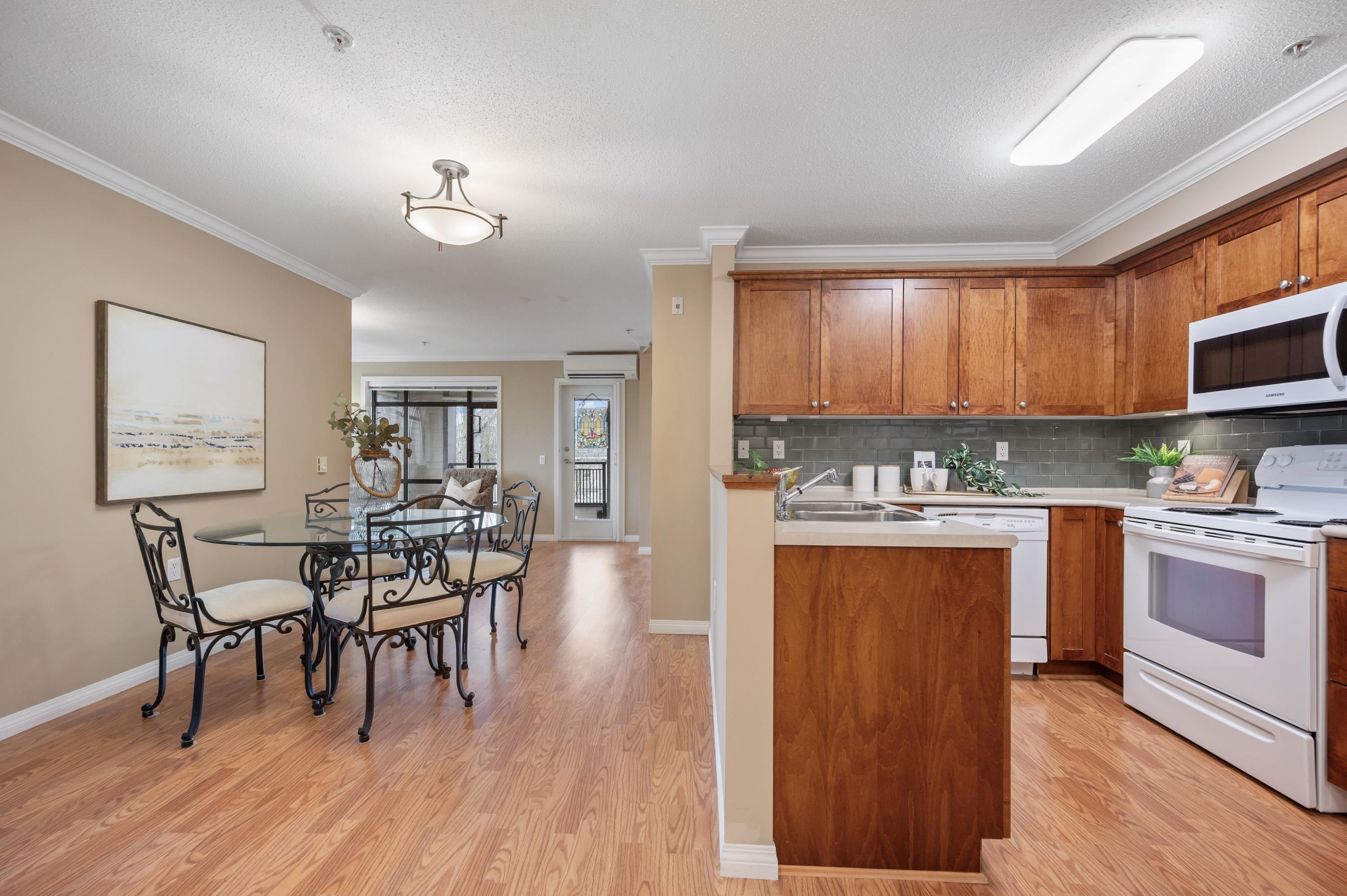 Sought after 55+ complex in Walnut Grove! Welcome to your new home at the Residences. Large 2 bedroom 918 sq feet, 2 full baths w/South West Exposure, corner unit with tons of windows. Original owner with unique floorplan, great separation of bedrooms, extra cabinetry in foyer, crown moldings, laminate flooring throughout and heated primary ensuite floor. For warm days there's Air conditioning(heat pump 2022). Right next to roof top patio. Great sense of community w/concierge service, media room w/ big sc...