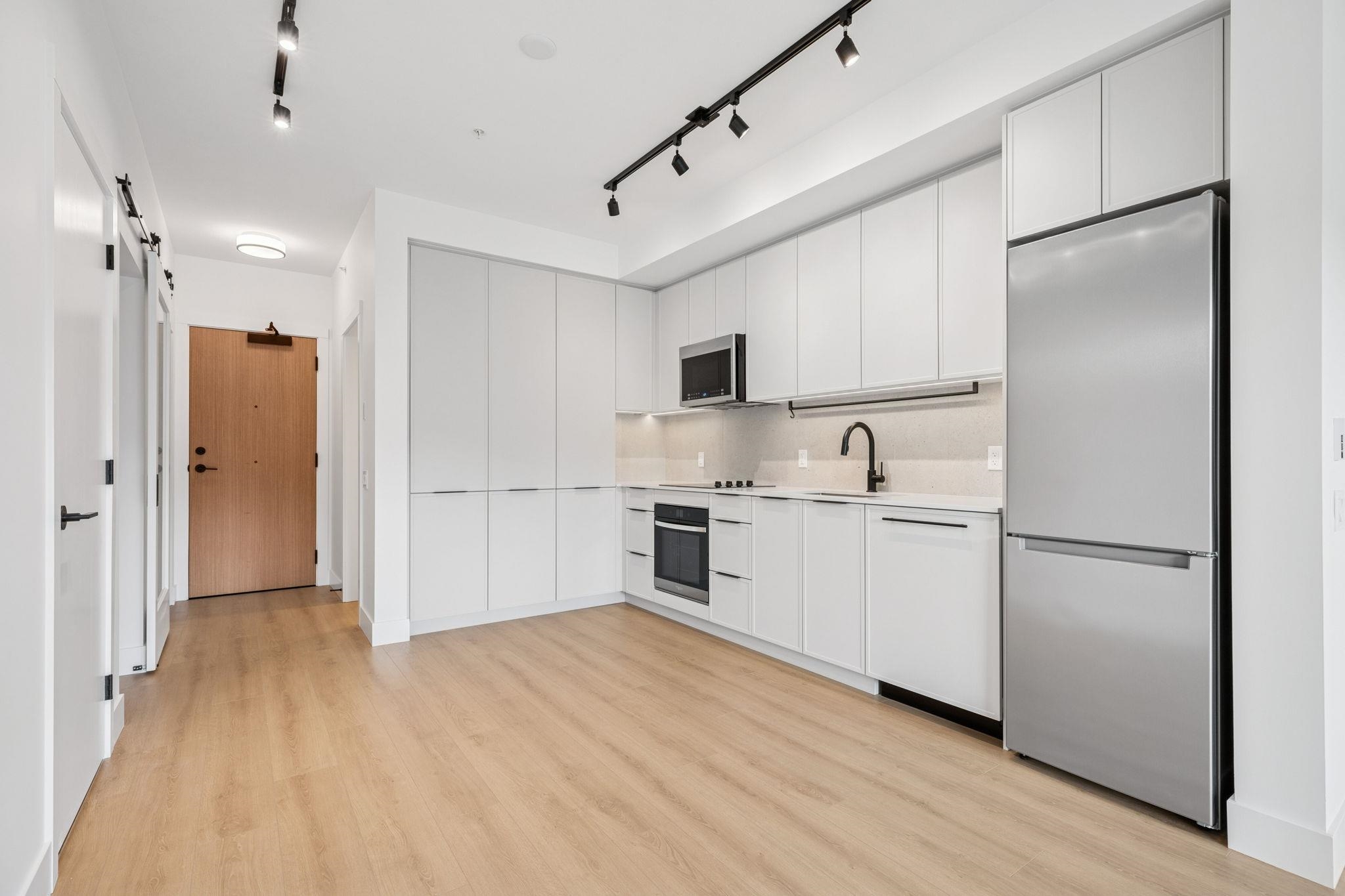 MOODY YARDS BY MOSAIC HOMES. Brand new, super functional junior 2 bedroom, 2 bathroom home with oversized 268SF covered patio inviting lush city and greenbelt views.... steps to Rocky Point Park, Moody Centre Station and Brewers Row. The kitchen features full height slim shaker cabinetry, quartz counters, large pantry and sleek appliances, flowing on designer laminate flooring into the open concept living space. Appreciate 9' ceilings, oversized windows inviting lush, peaceful views and sleek bathrooms with...