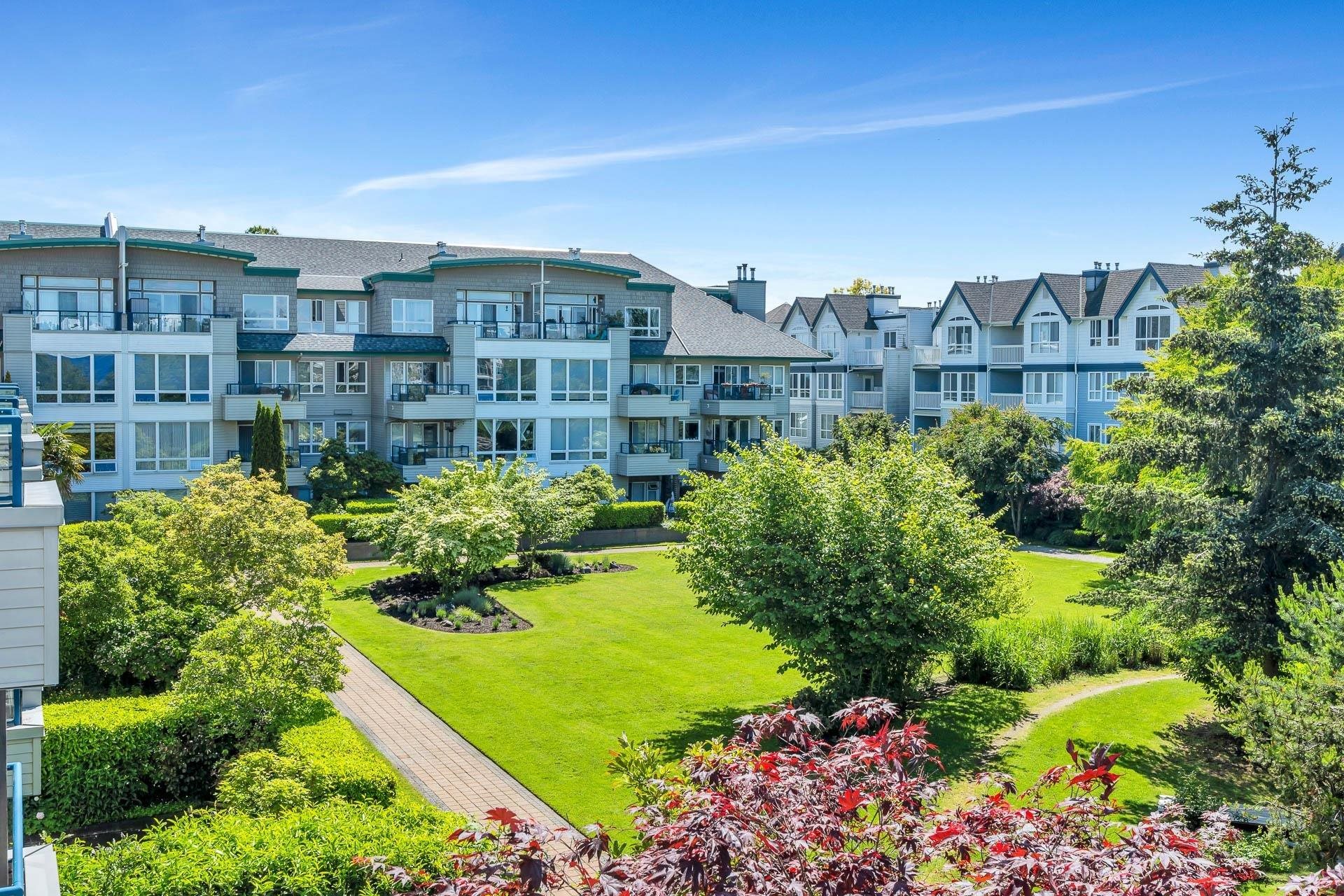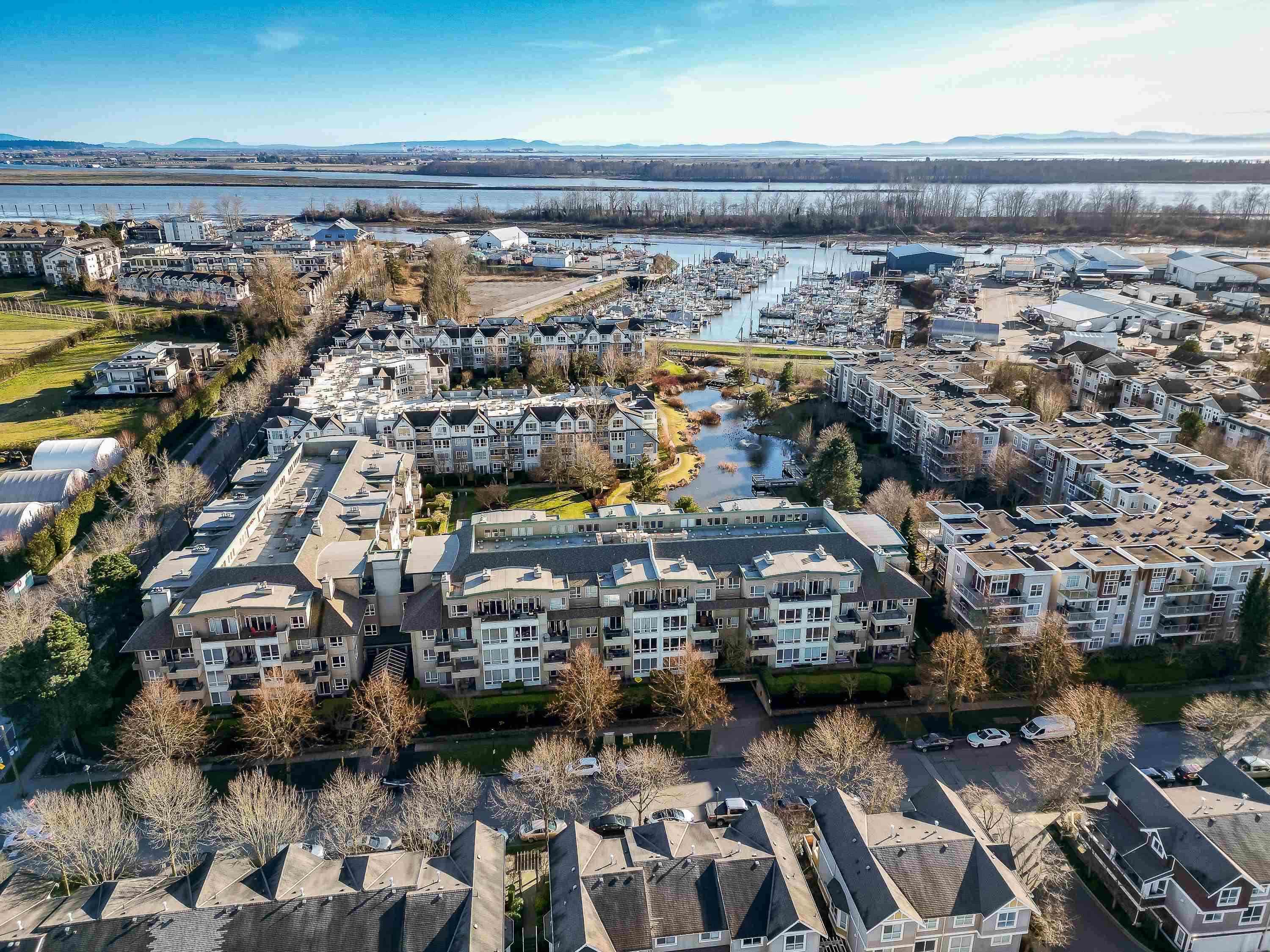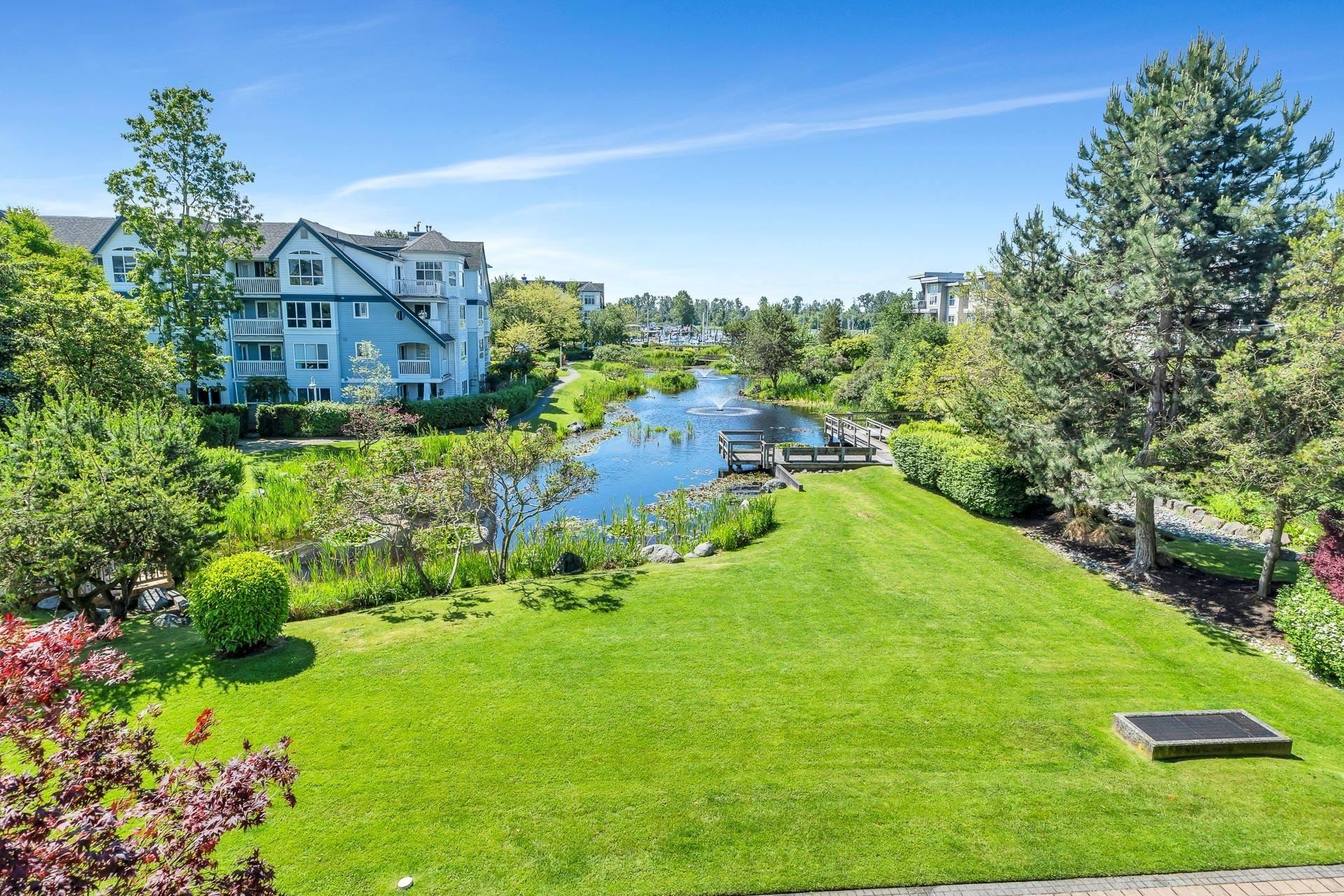 Spacious CORNER UNIT with the BEST VIEWS IN STEVESTON -- overlooking a serene pond, landscaped courtyard, and the Fraser River from EVERY WINDOW! With room for house-sized furniture, this unit is in pristine original condition, offering modernized lighting and a fresh coat of paint. Snuggle up next to the cozy gas fireplace, and enjoy the convenience of in-floor radiant heat -- both included in the strata fees. Unit offers easy elevator and stairwell access, in this well-managed, rainscreened building with...