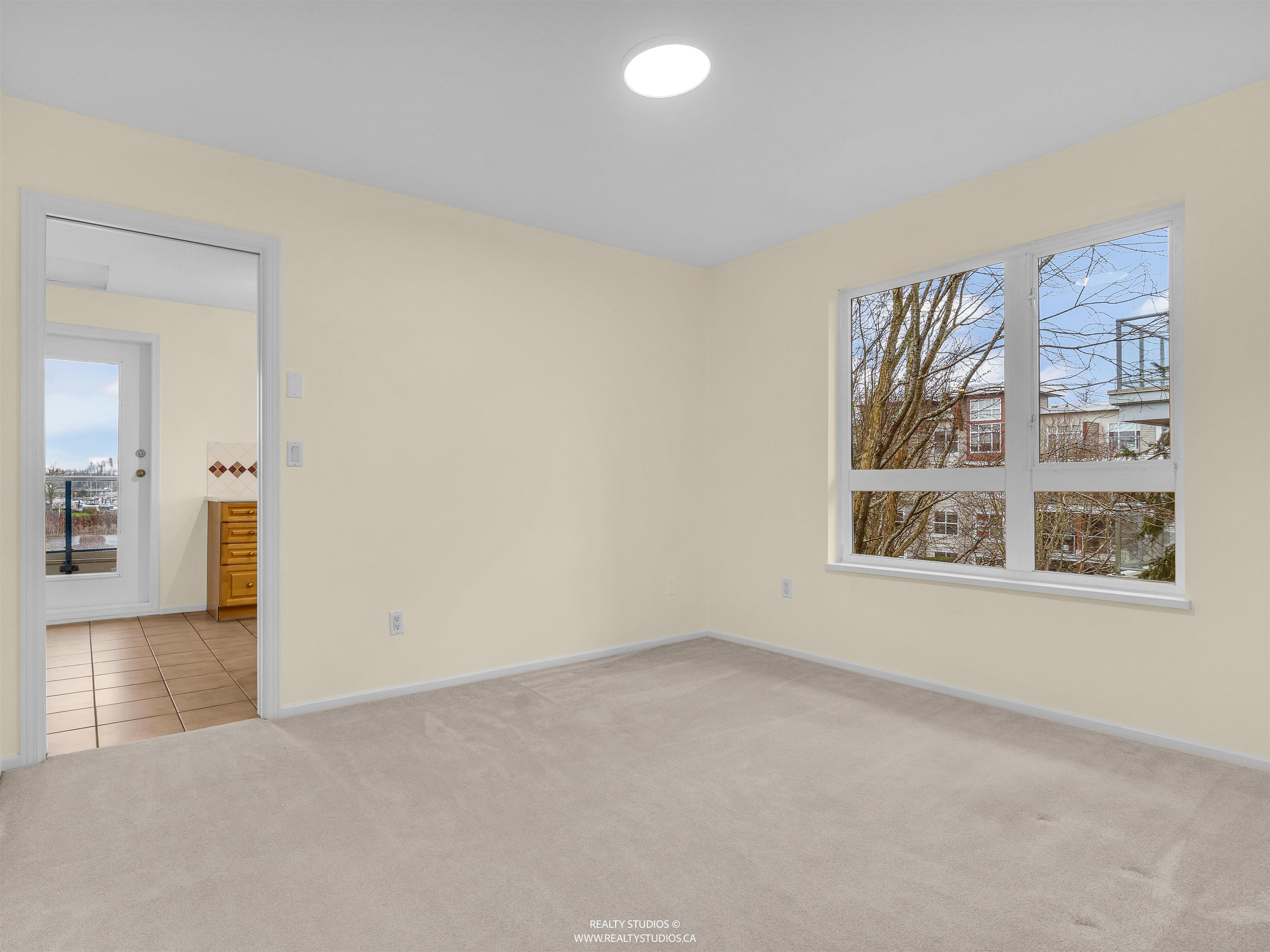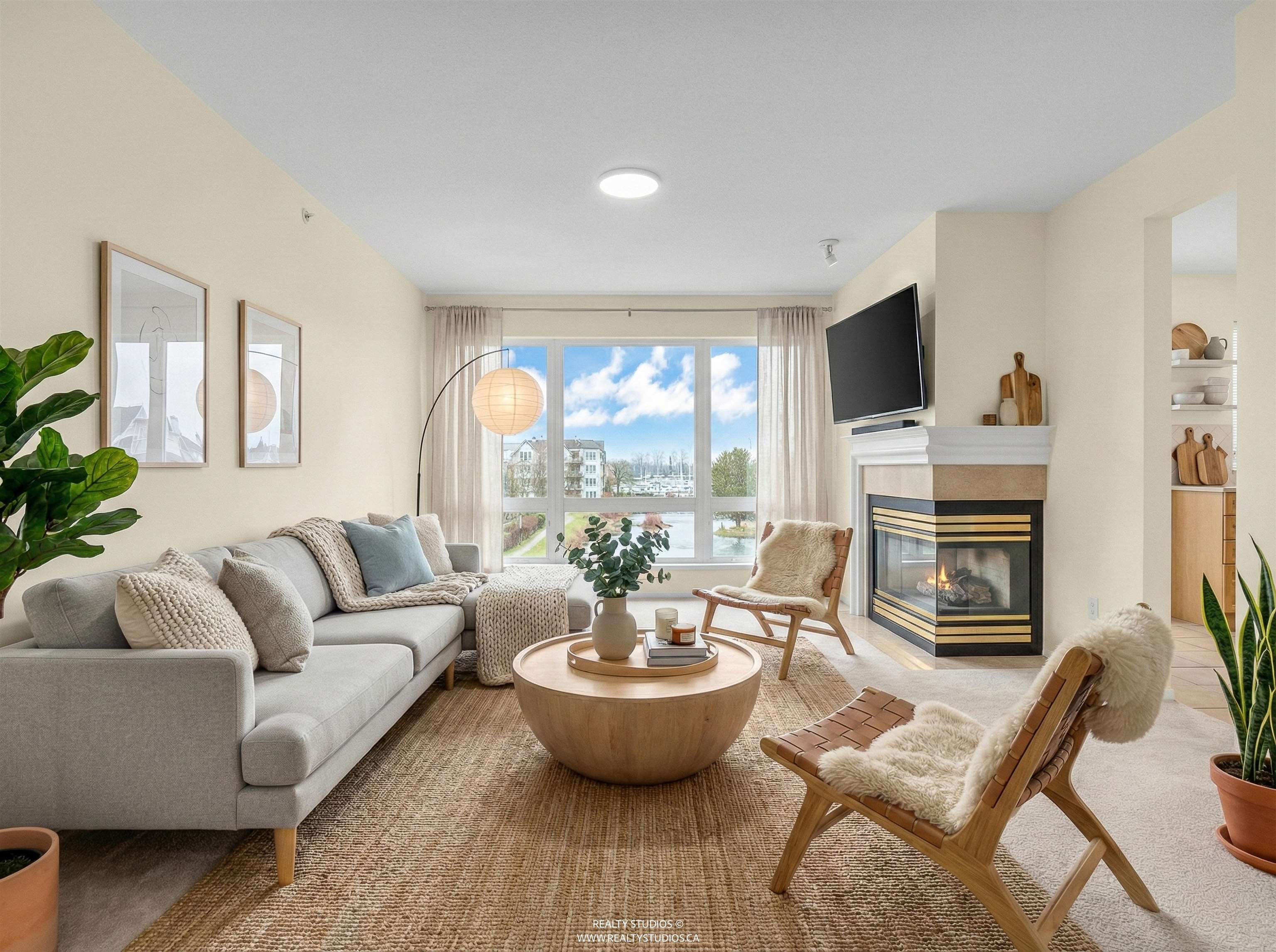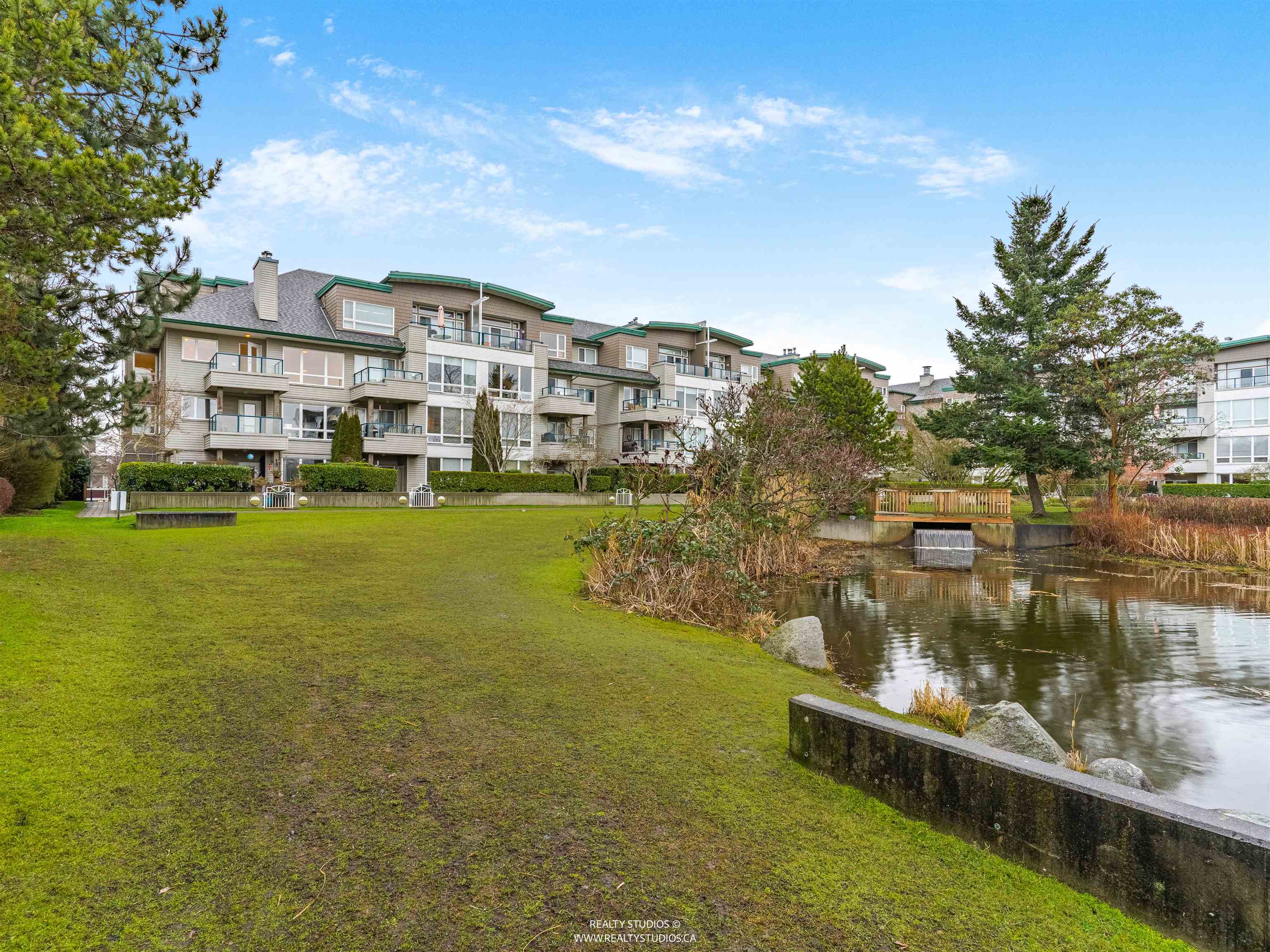 Spacious CORNER UNIT with the BEST VIEWS IN STEVESTON -- overlooking a serene pond, landscaped courtyard, and the Fraser River from EVERY WINDOW! With room for house-sized furniture, this unit is in pristine original condition, offering modernized lighting and a fresh coat of paint. Snuggle up next to the cozy gas fireplace, and enjoy the convenience of in-floor radiant heat -- both included in the strata fees. Unit offers easy elevator and stairwell access, in this well-managed, rainscreened building with...