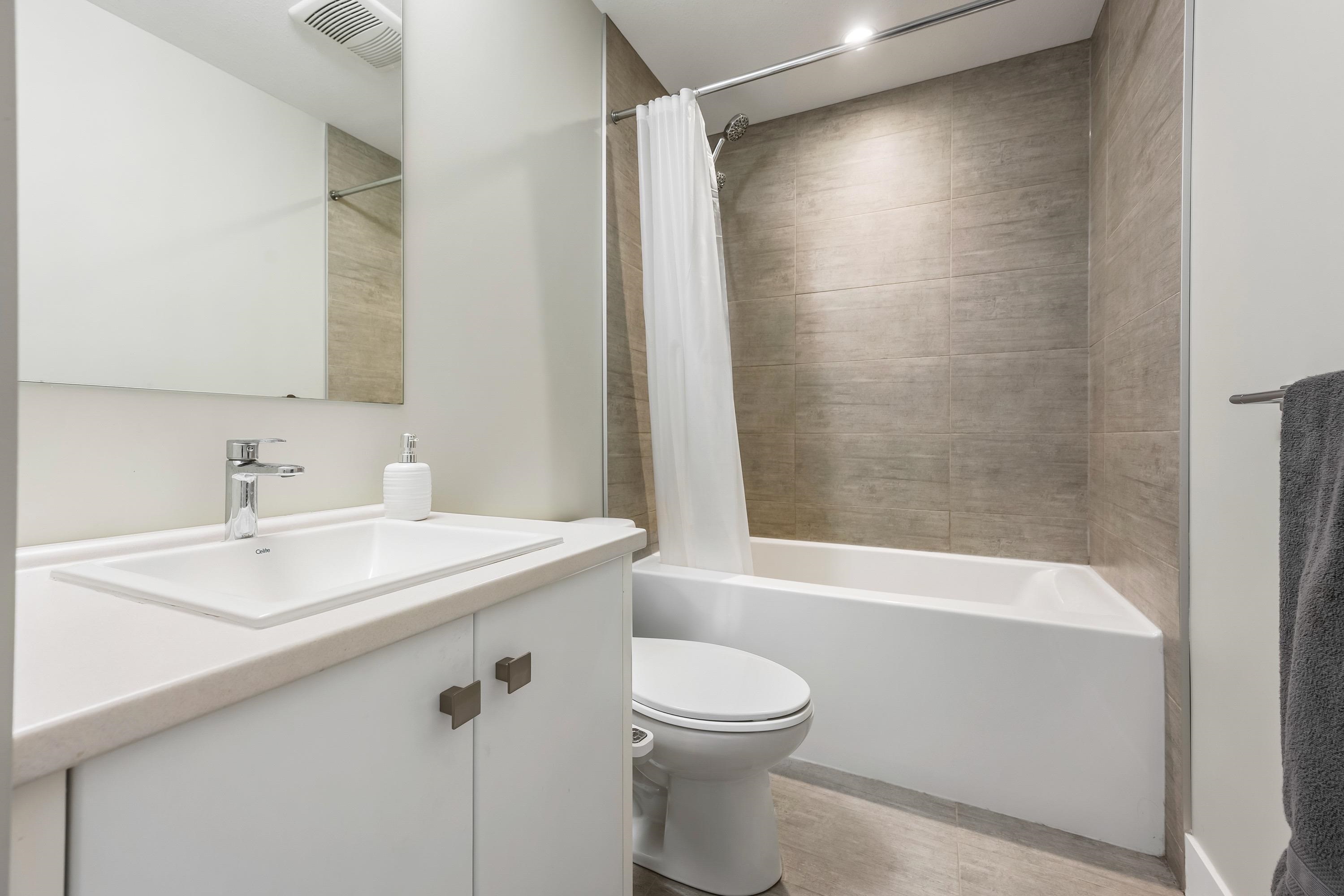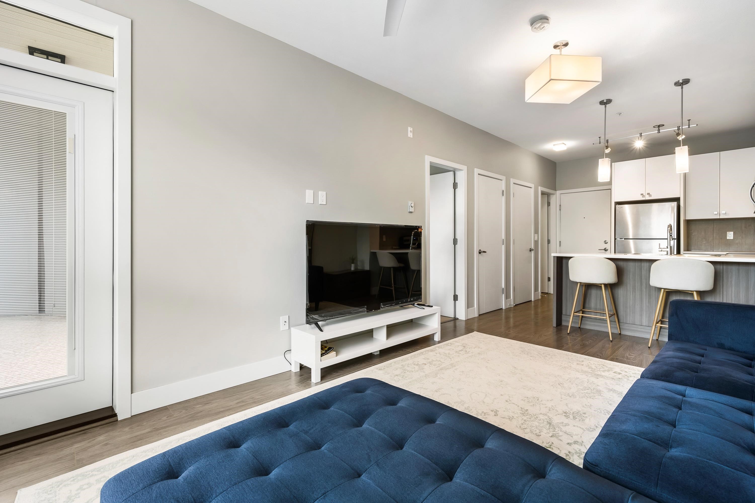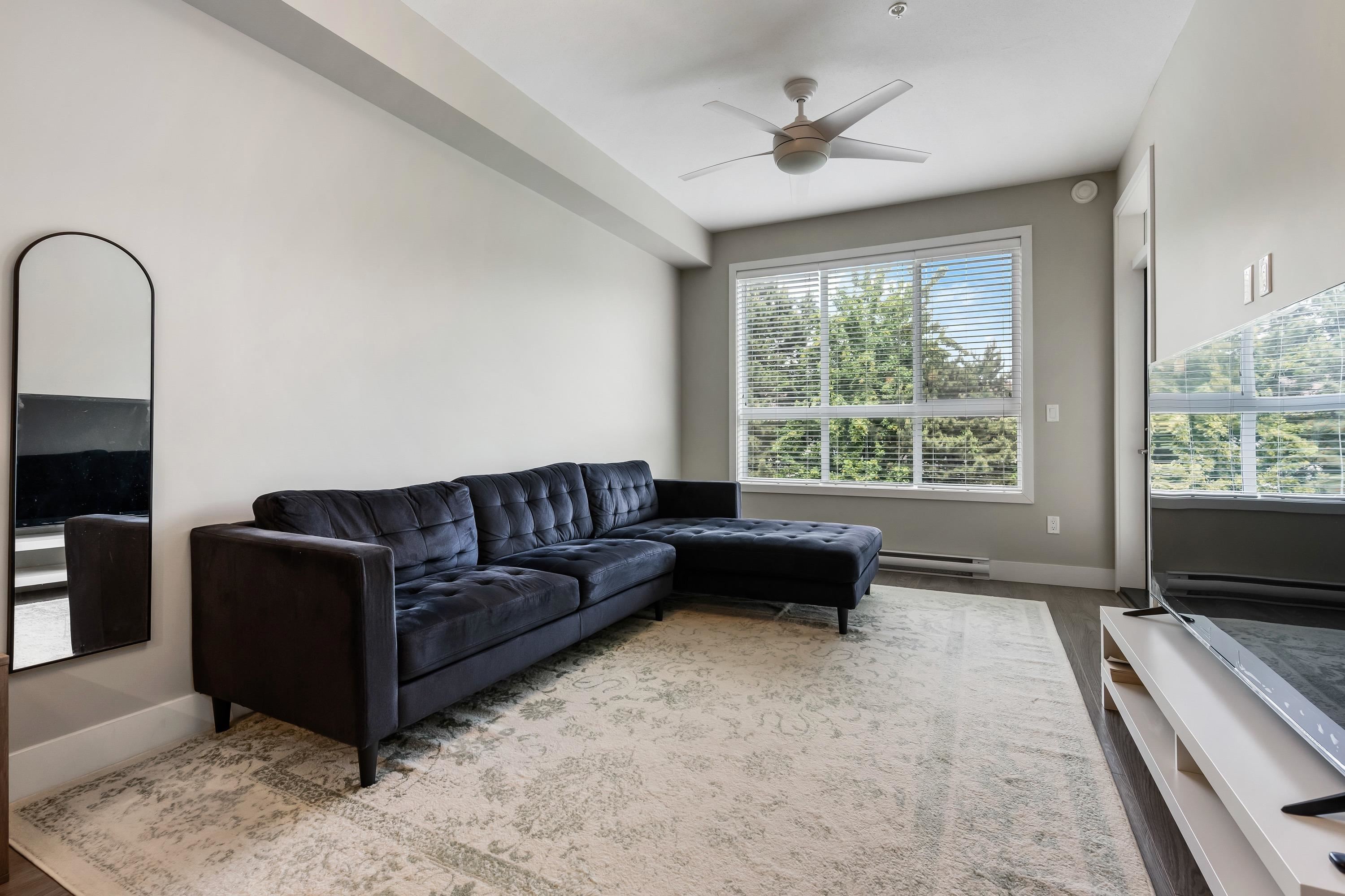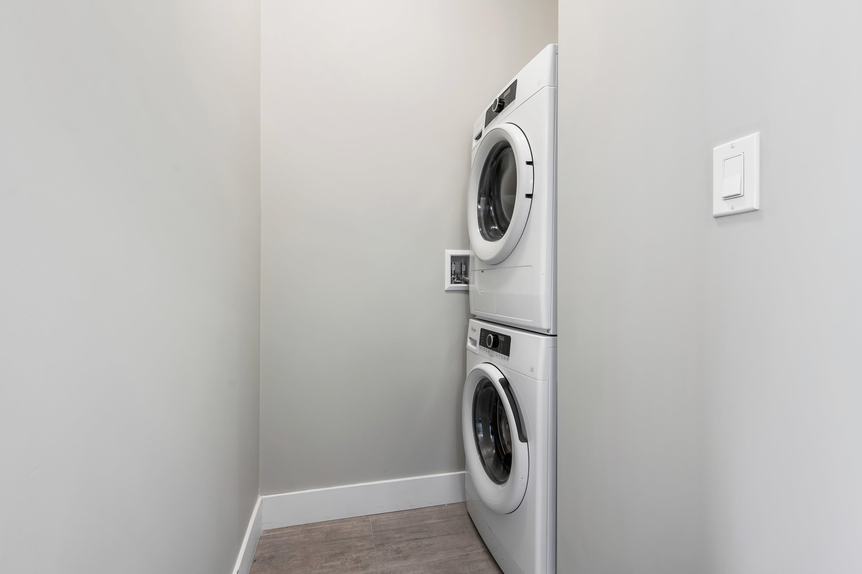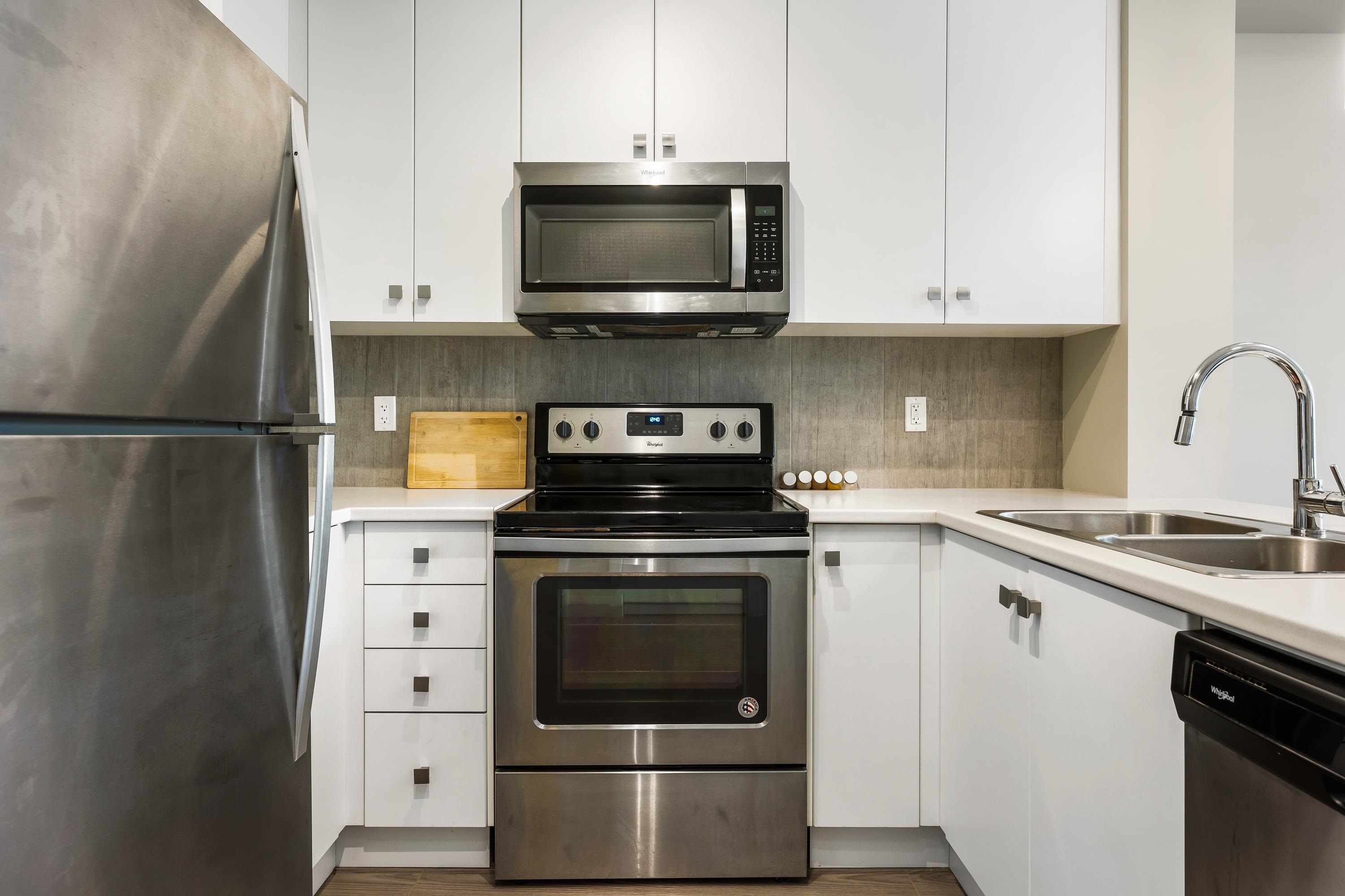 Welcome to this Immaculate 1 Bed 1 Bath unit in sought after Parallel Two in East Abbotsford! This condo is beautifully layout with stainless steel appliances, ample cupboard and counter space in kitchen looking onto spacious living room with huge window for natural light. In suite laundry and 4 piece bathroom. Large primary bedroom with walk-in closet. Enjoy a coffee on your private deck looking out to the quiet treed landscape. Includes 1 underground Parking Stall. This well run building has a quiet court...