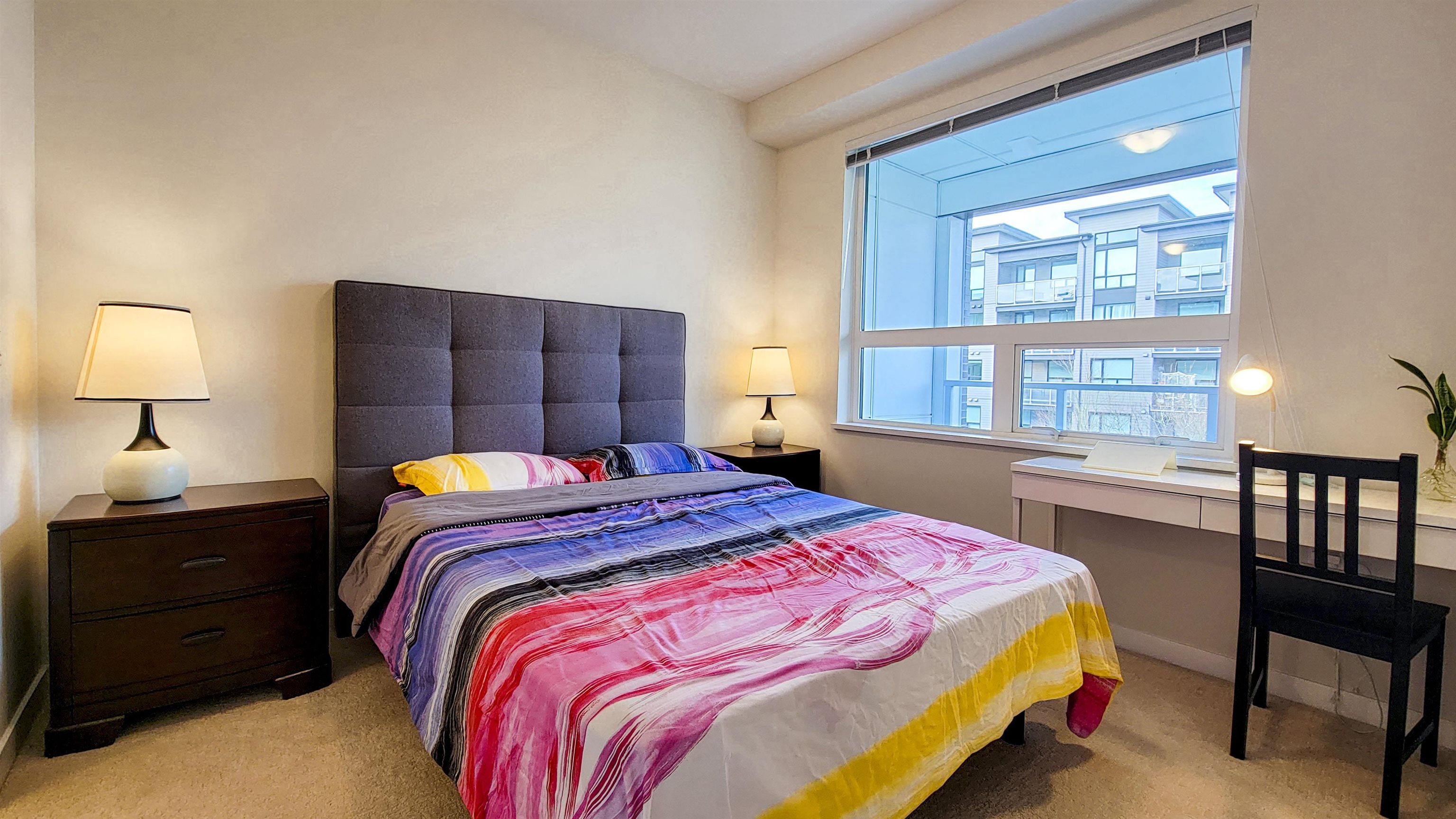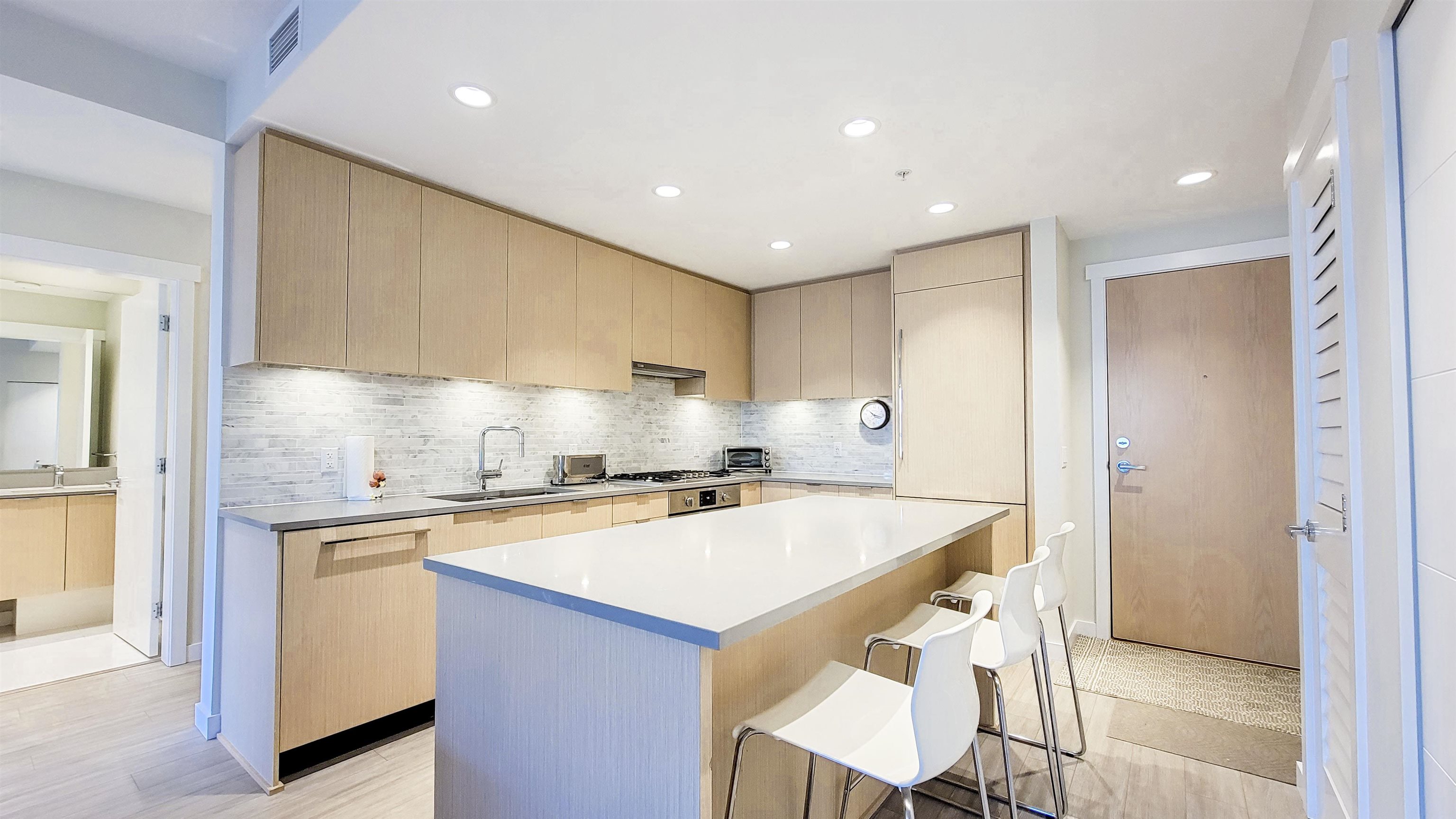 In the Polygon's Berkeley House is this quiet courtyard facing unit. This spacious, 948 sq.ft. unit has 2 bedrooms + den, 2 full baths, 9' ceiling, A/C system, open concept kitchen with stainless steel appliances, island in the middle, quartz counter top with lots of working space. Connecting to the kitchen is the dining room and living room with a big window with lots of natural light, make the unit warm and welcoming. This unit also comes with 1 EV ready parking and a storage locker. Residents have exclus...