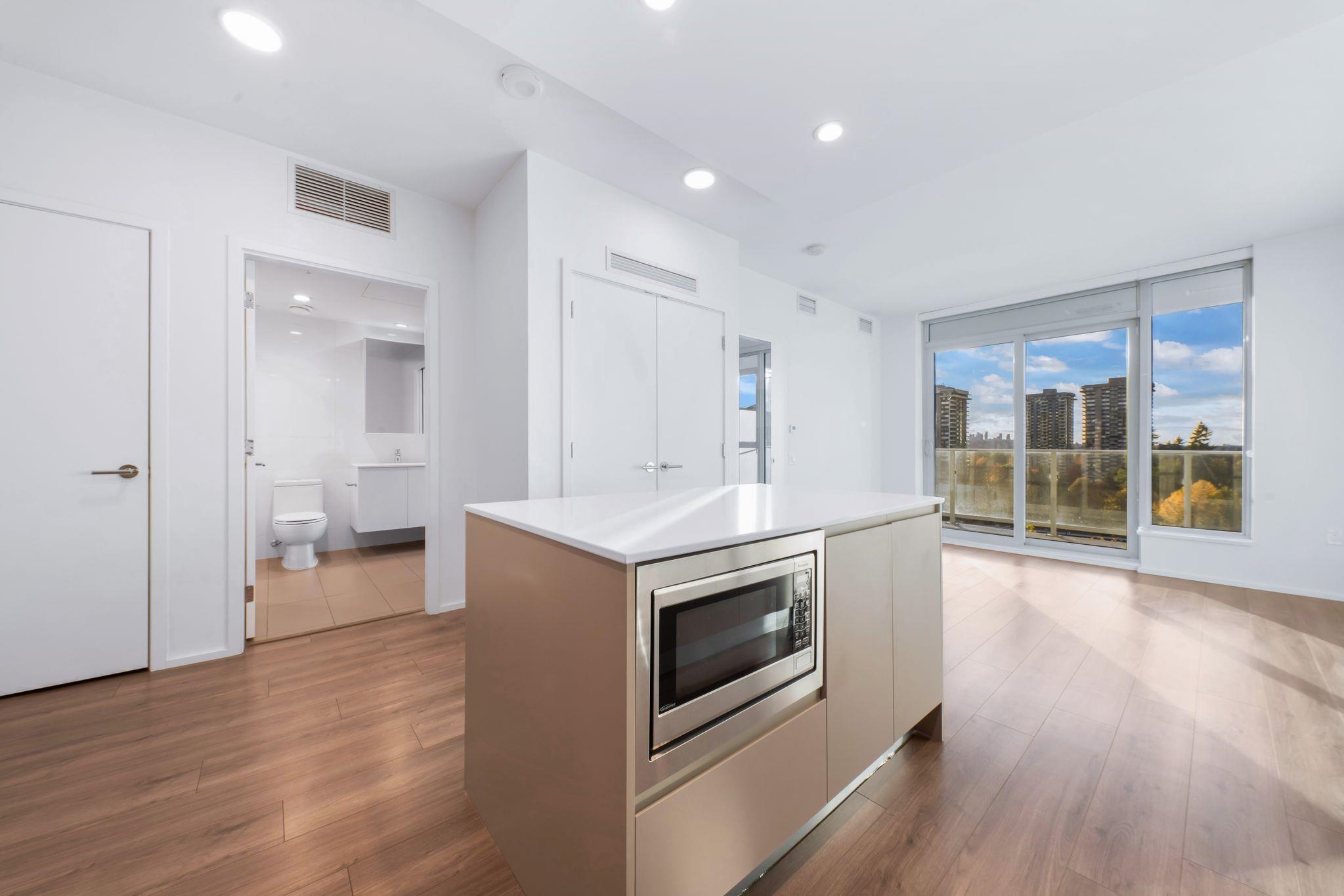 Welcome to The City of Lougheed – Tower 2, a premier high-rise community offering contemporary living in an unbeatable location. This 3rd-floor, 561 sq. ft. home boasts breathtaking 180-degree panoramic westward views, filling the space with natural light and stunning sunsets. Designed for comfort and style, this home features an open-concept layout, high ceilings, air-conditioning, sleek laminate flooring, quartz countertops, and premium stainless steel appliances. The walk-through closet leads to a spa-in...